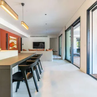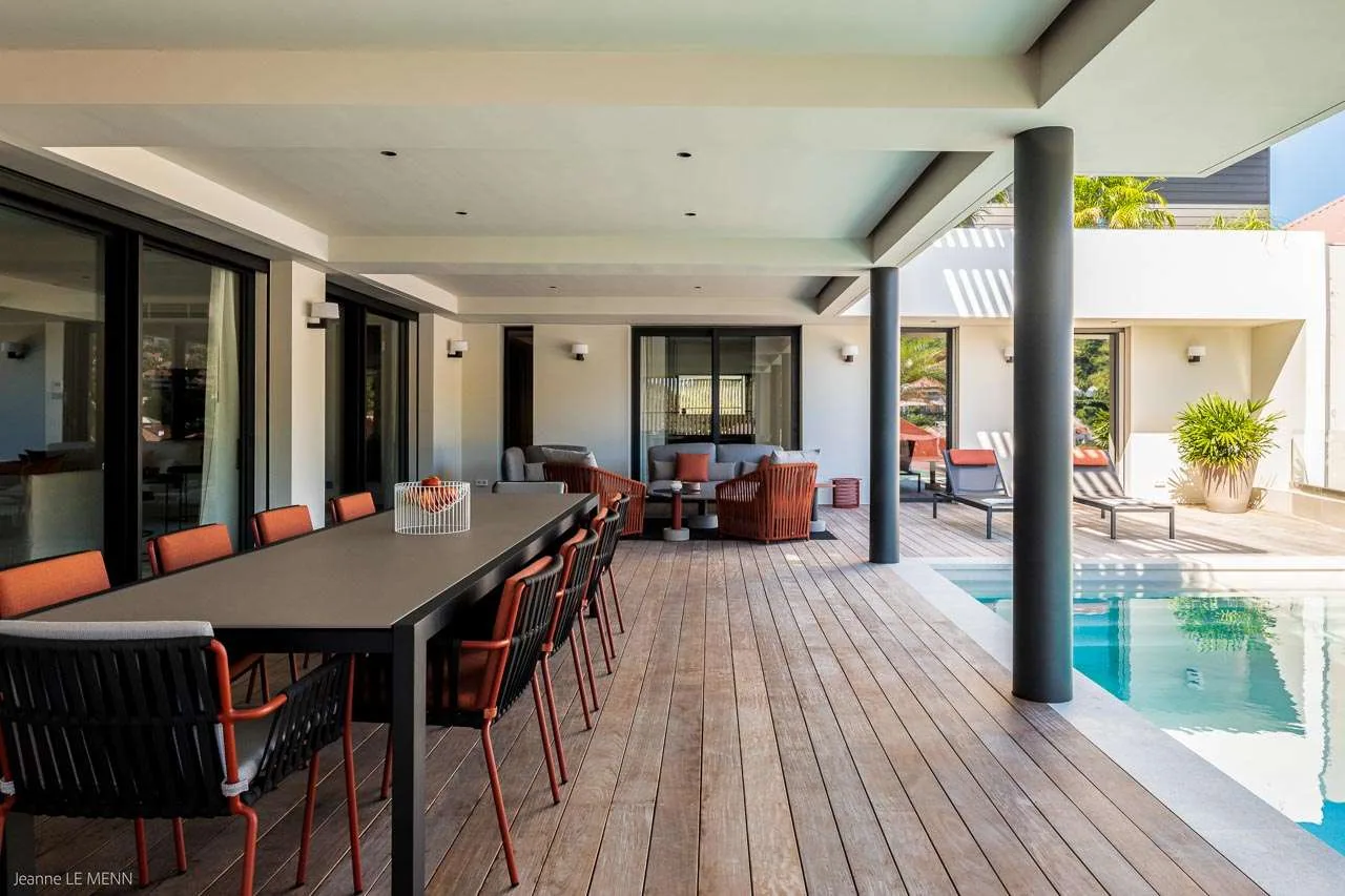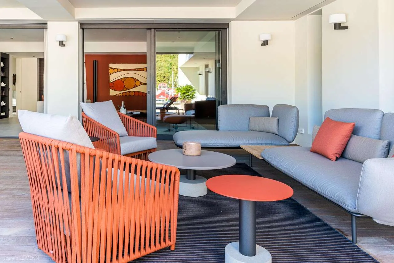 Privilege is situated in the new Mardix apartment complex on the southwest side of the Harbor. The building also has a large, private, and secured, underground garage with ample parking and an elevator. The large terrace of WV PVL comes with a pool and offers excellent and lively views over the harbor and streets of Gustavia.