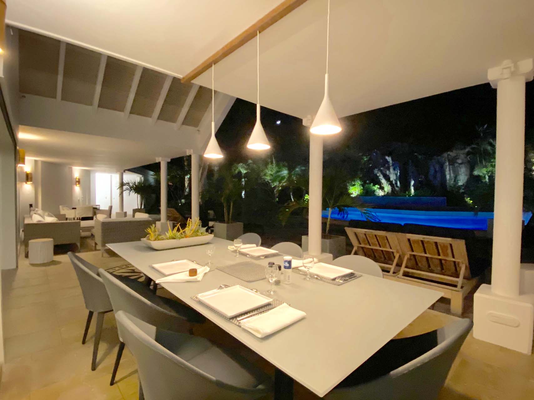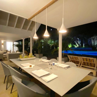 The breakfast bar itself is a great place to relax, enjoying a leisurely coffee in the morning or an evening aperitif. Outside, the covered dining area overlooks the swimming pool, offering an excellent location for meals.