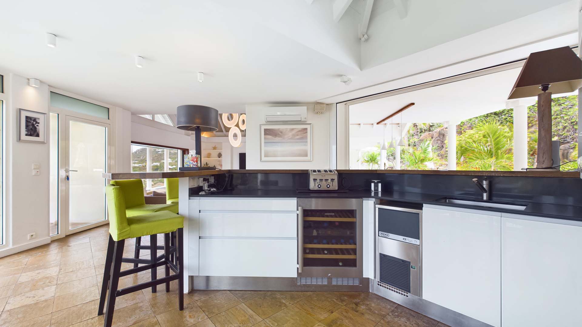Even the kitchen at Villa Arrow Marine features a wall of windows that capture those stunning views. Set in the heart of the property, it’s spacious and large with a comfortable breakfast bar. Our concierge can also lend a hand with a grocery delivery or by arranging a private chef for an evening.