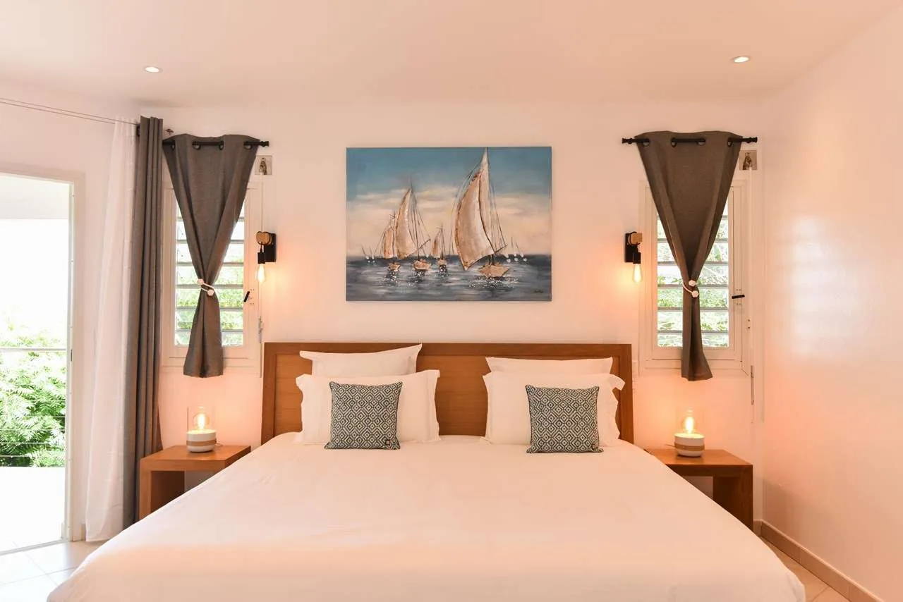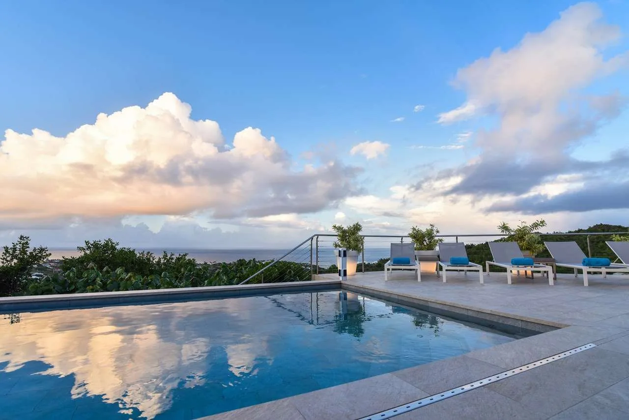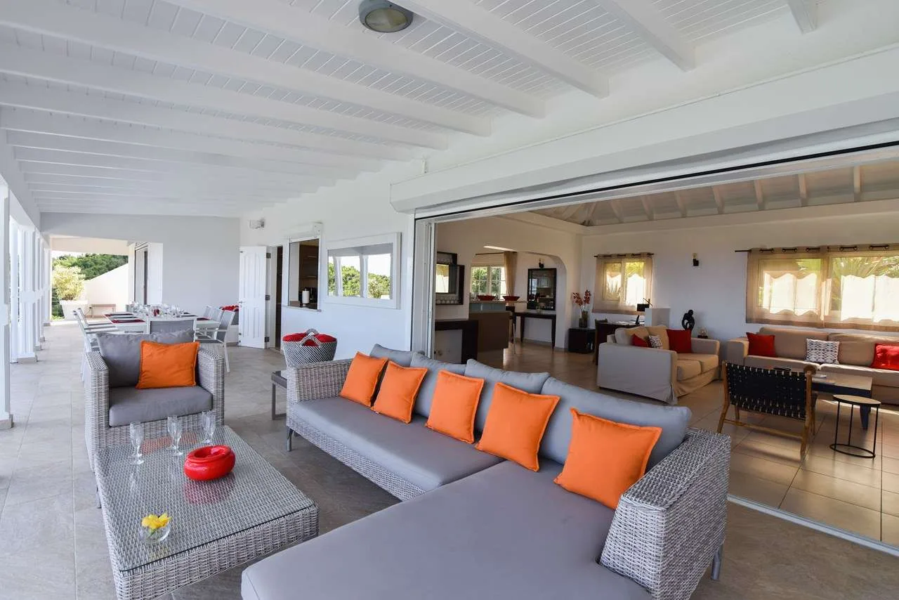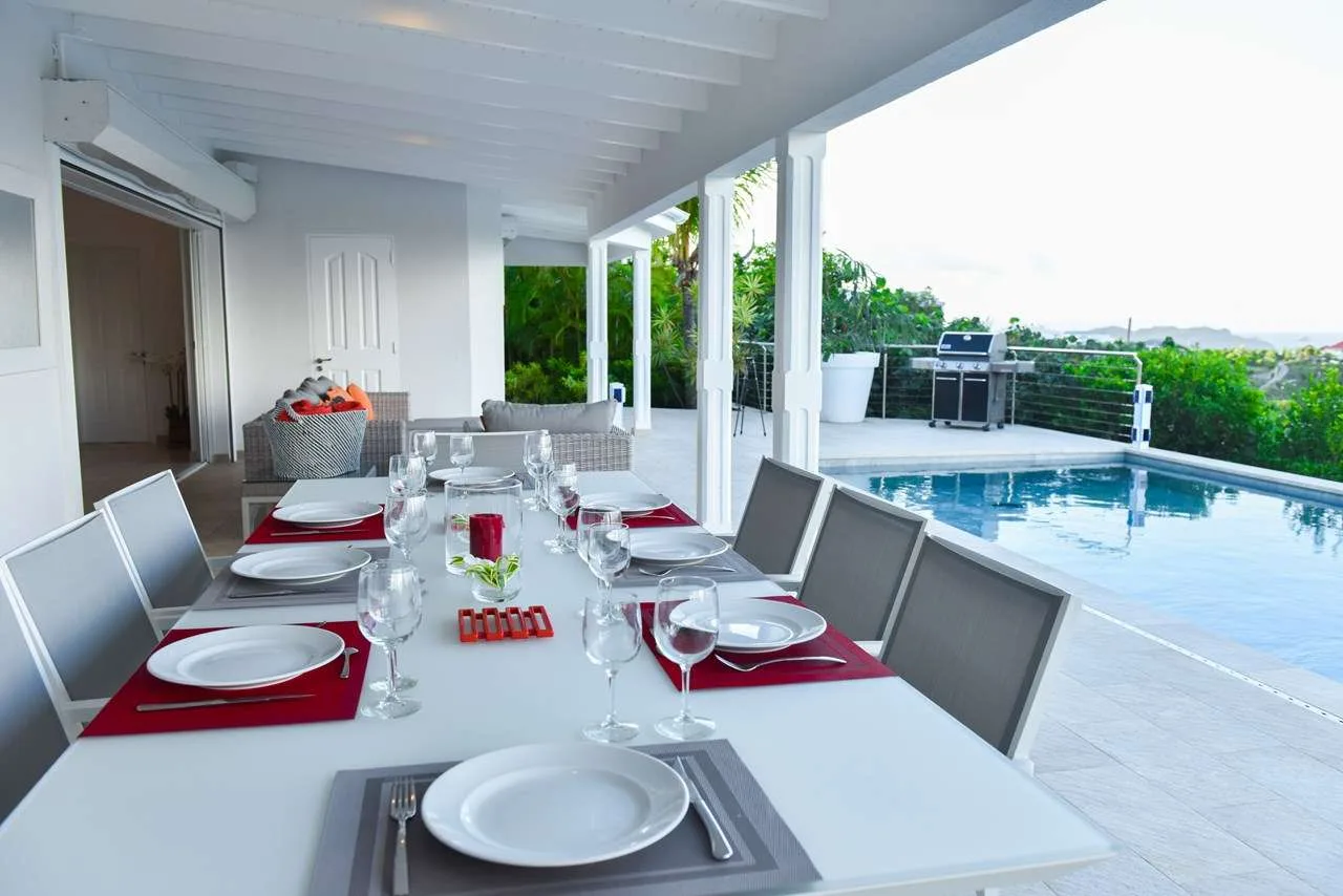 A second outdoor lounge nearby enjoys plenty of sun during the day, a comfortable spot to entertain guests with evening drinks. And when the Caribbean Sea calls, both Lorient and St. Jean are a 5-minute drive away, both pristine sweeps of golden sand and shimmering