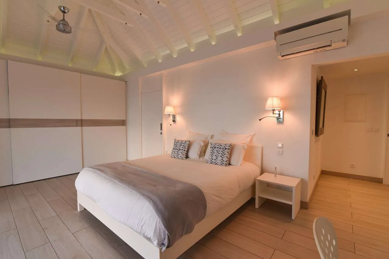 Villa Au Coeur du Rocher is all about the good life in St. Barts. The interiors are stylish and modern, embodying the island spirit. The minimalist décor keeps things nice and relaxing, with warm touches of wood and vaulted ceilings creating a breezy and idyllic atmosphere throughout.