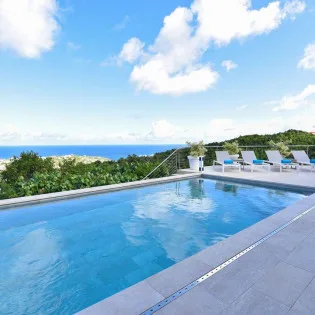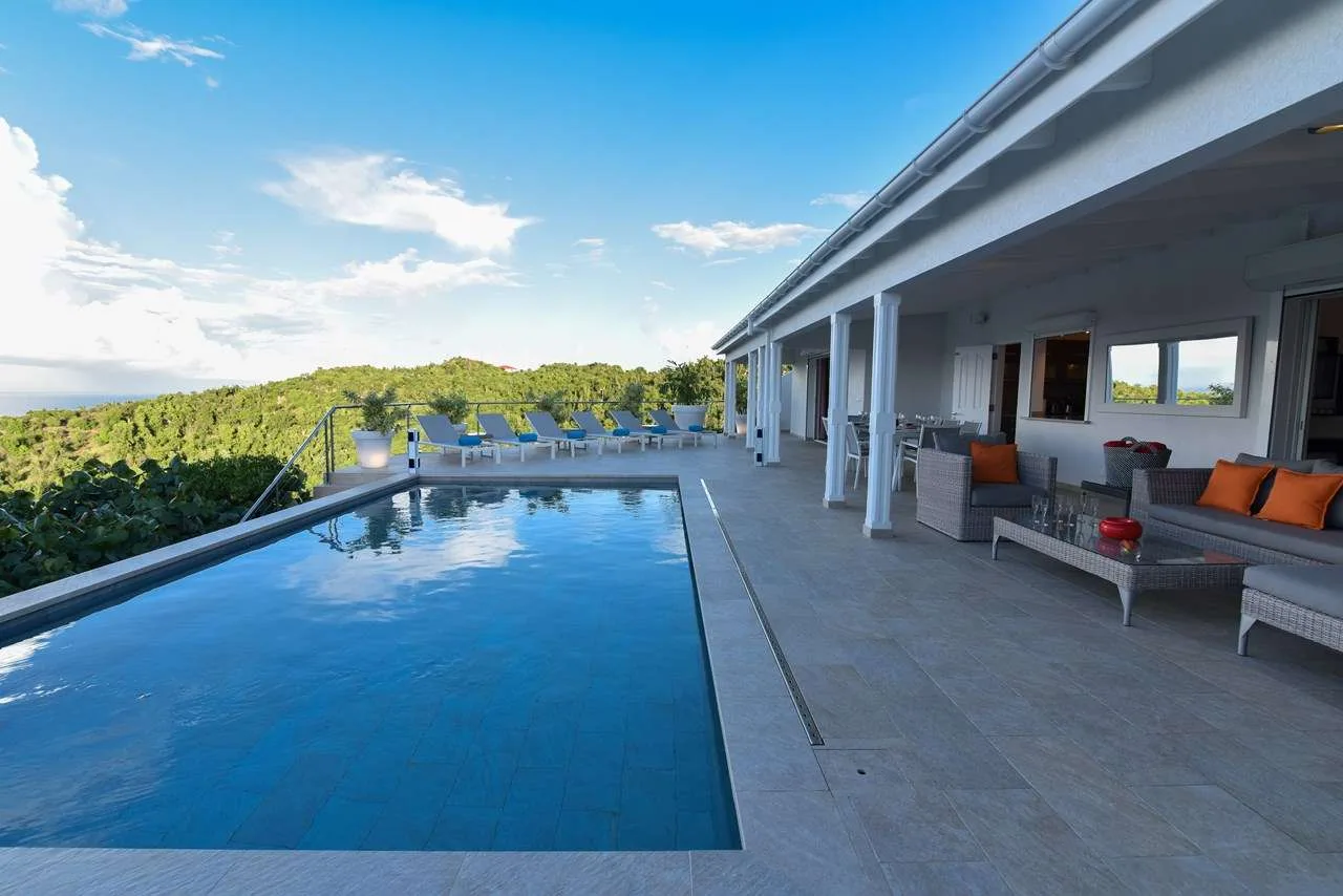 Welcome to Villa Au Coeur du Rocher (villa code: WV ACR), a contemporary 3-bedroom villa located in Vitet, St. Barts. This villa enjoys nearly all-day sun from its lofty vantage point, with outstanding views over the verdant green hills as they melt into the Caribbean.