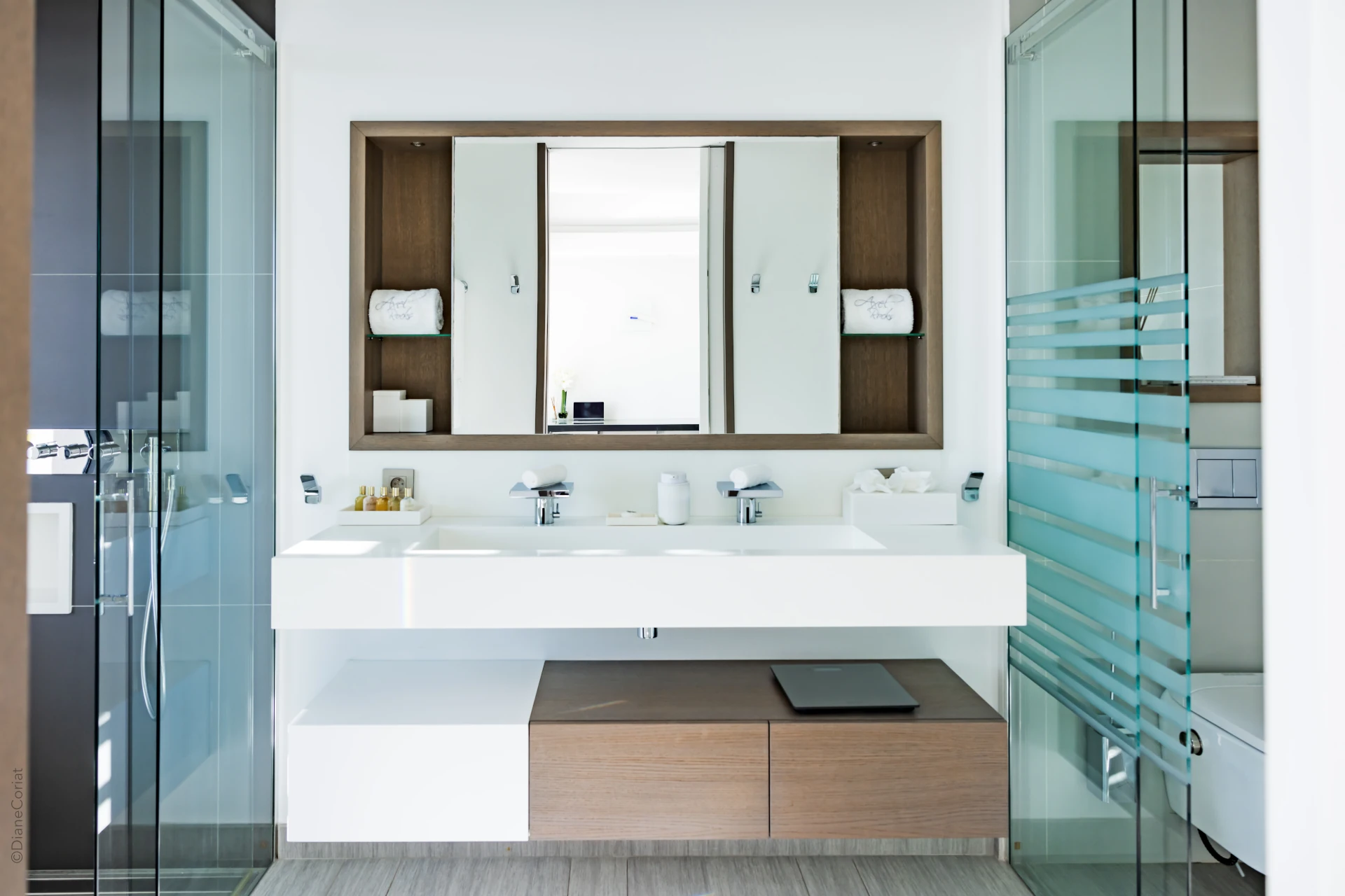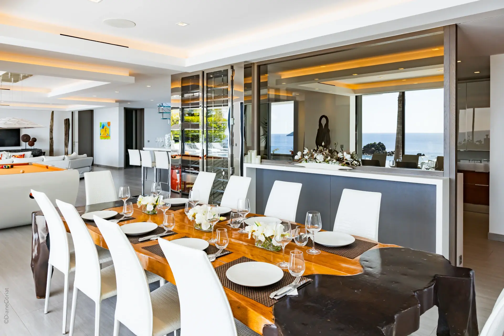 Foodies will love creating gourmet meals in the modern and spacious kitchen. Featuring the latest appliances, cooking here is a breeze. There are even two floor-to-ceiling wine coolers with ample room for storing the fine French wine found on St. Barts.