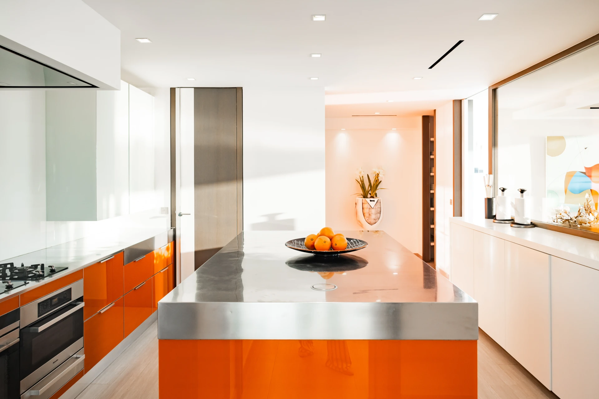 Our concierge can organize grocery pre-stocking or delivery, catered meals, or arrange private chef service for a special occasion. For those evenings when a private chef is doing the cooking, two glass doors can close the space off from the rest of the house. Optional tinting on the doors puts the entire space out of sight and out of mind.