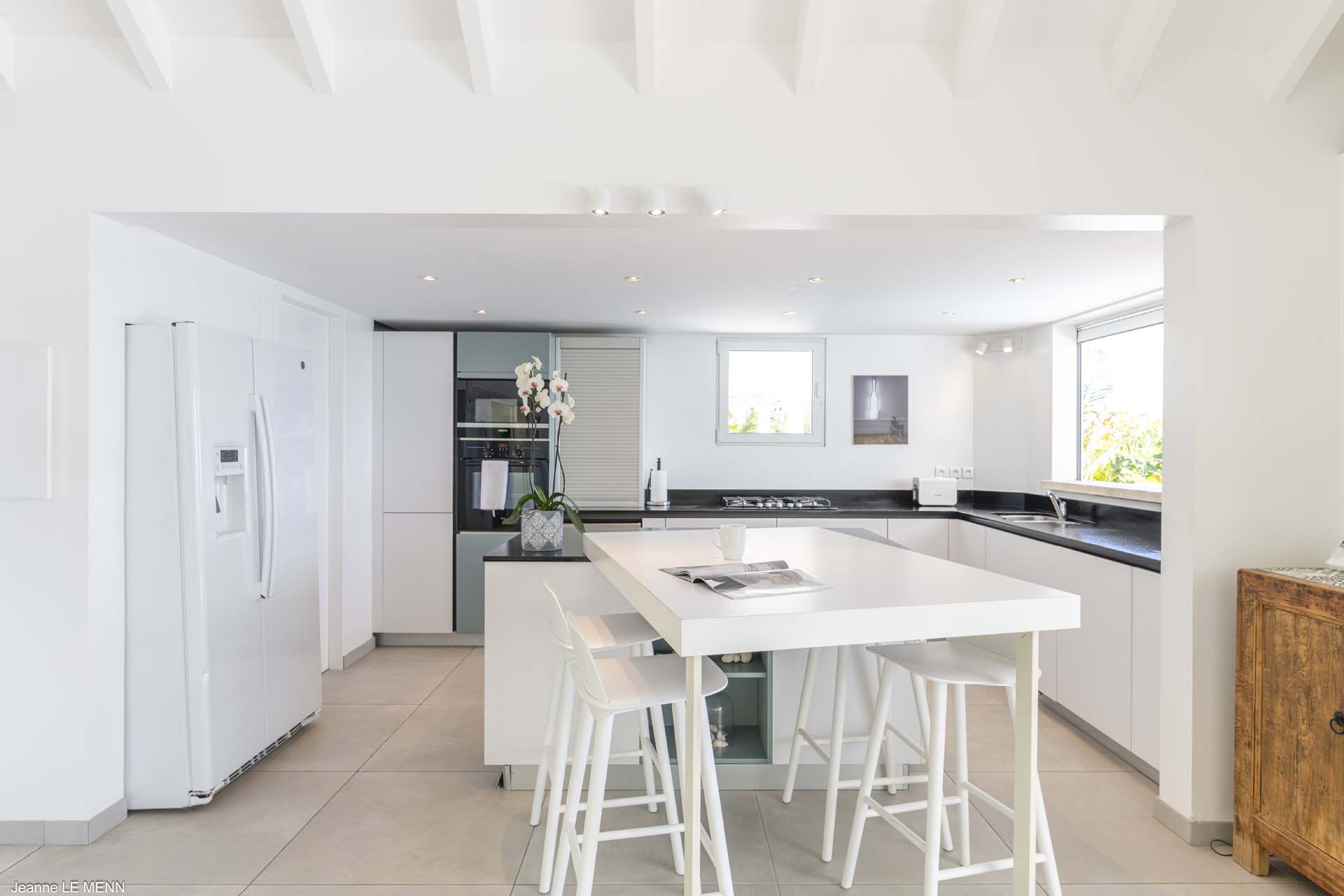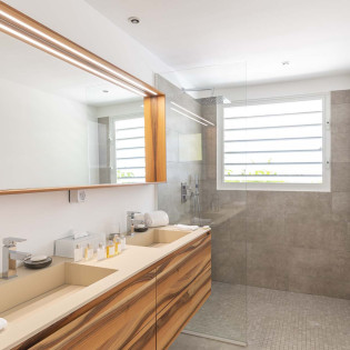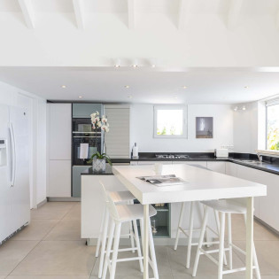 A modern and sleek kitchen at Villa Bel Ombre has everything you’ll need to create gourmet meals during your stay. Our concierge can even organize grocery pre-stocking or delivery, catered meals, or arrange private chef service for a special occasion.