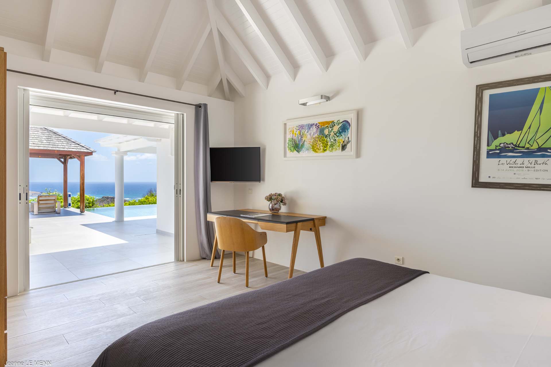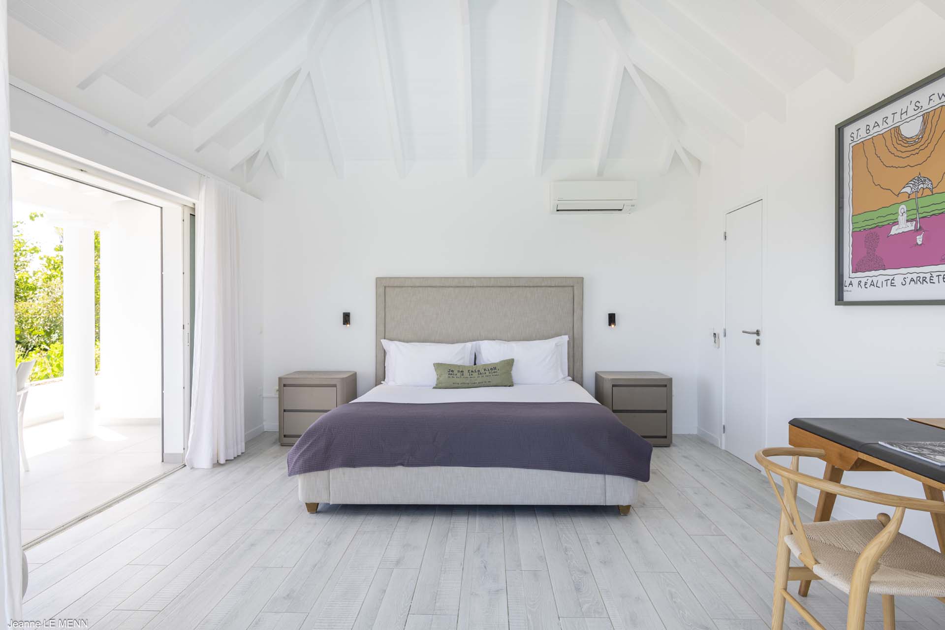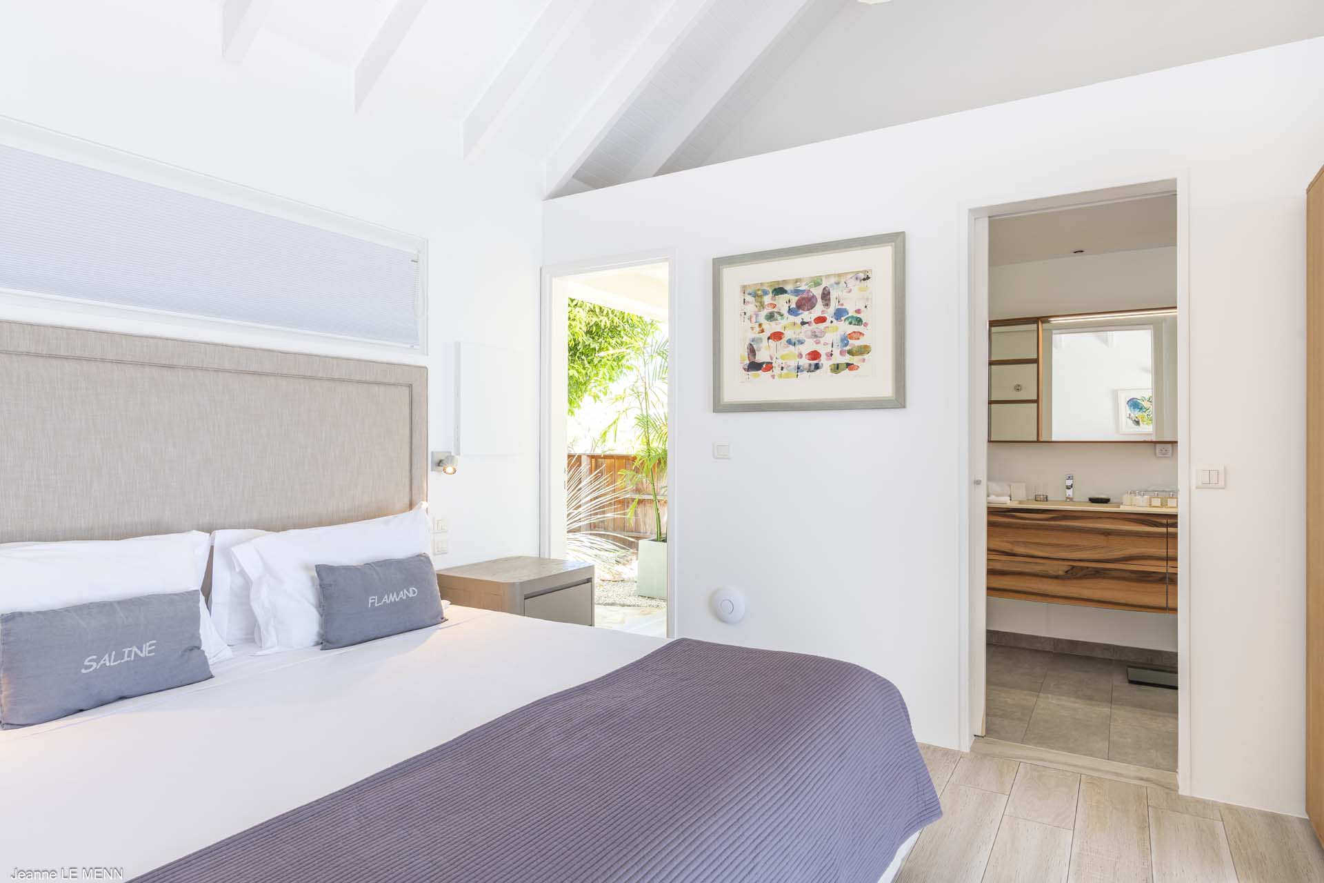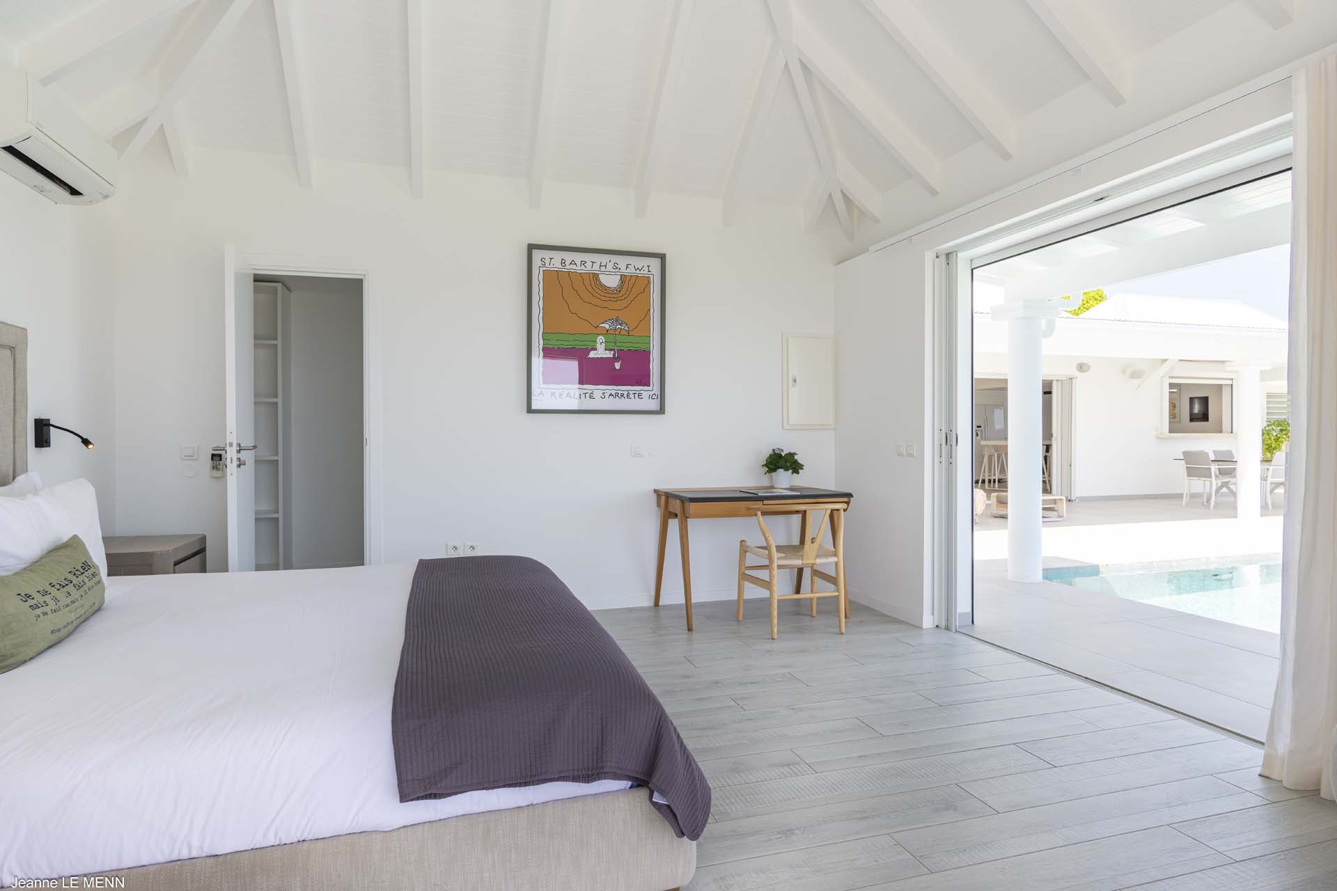 The other two bedrooms are on the other side of the pool terrace. The furnishings are modern and comfortable, offering a peaceful night’s sleep each evening.