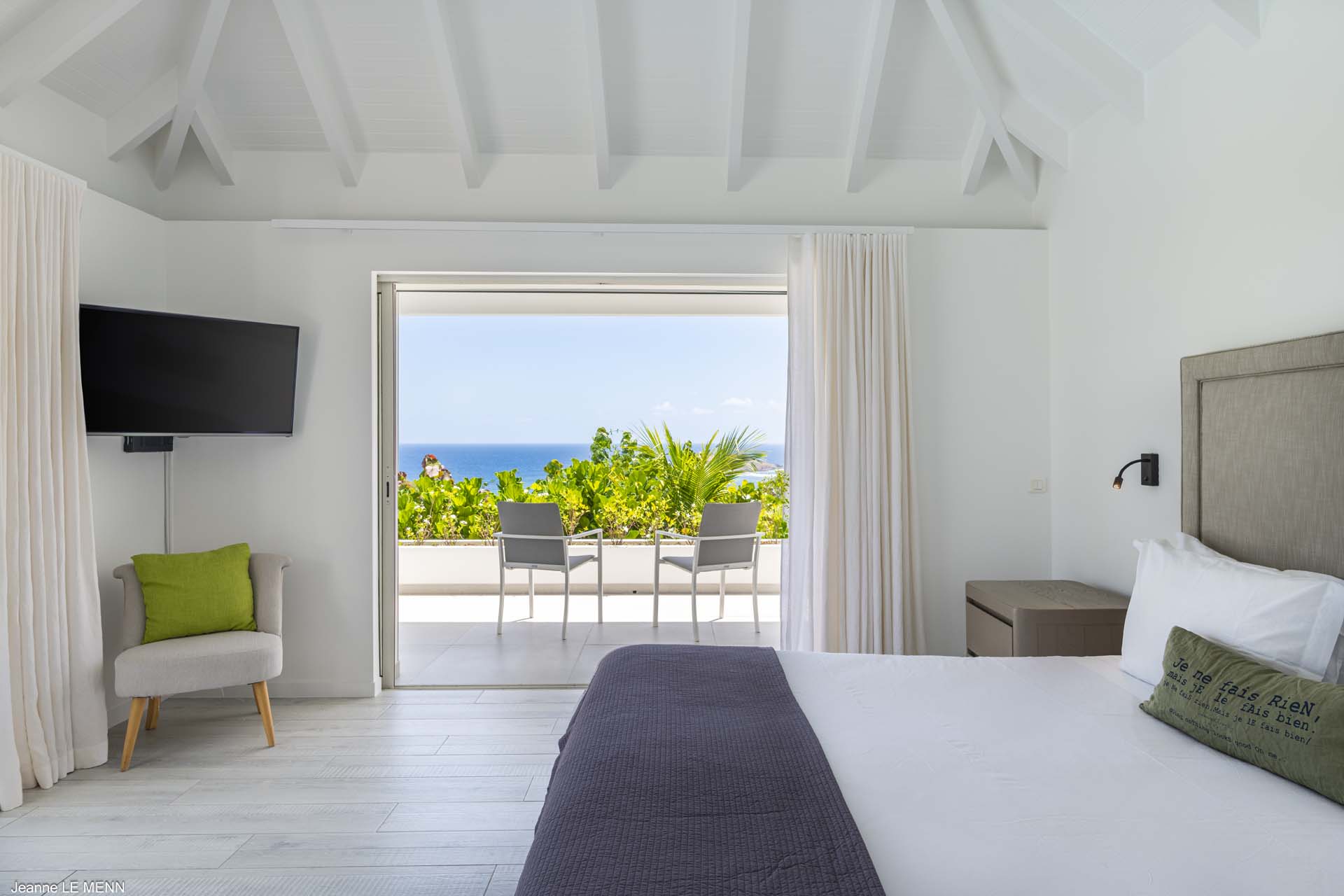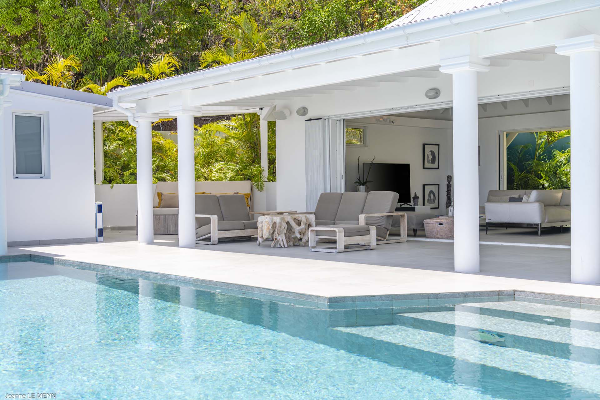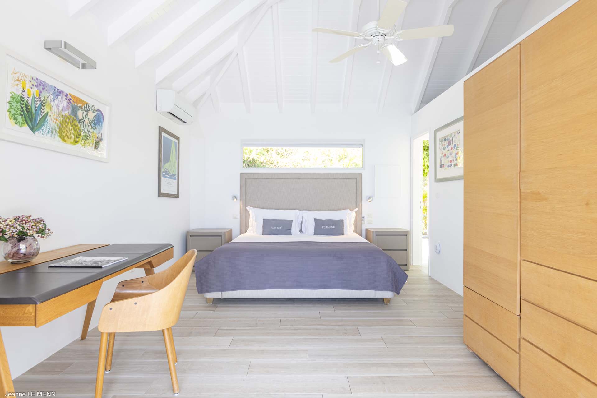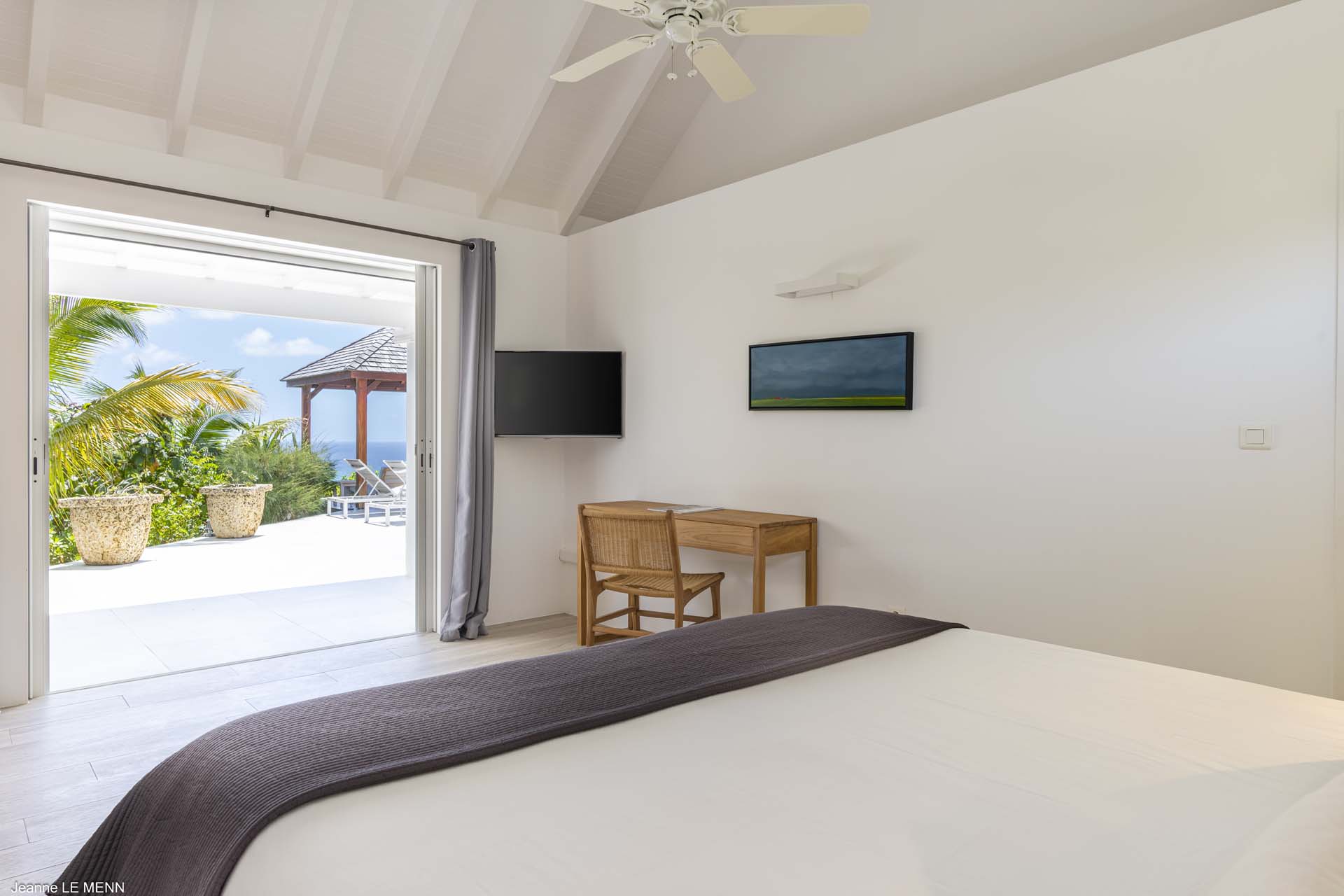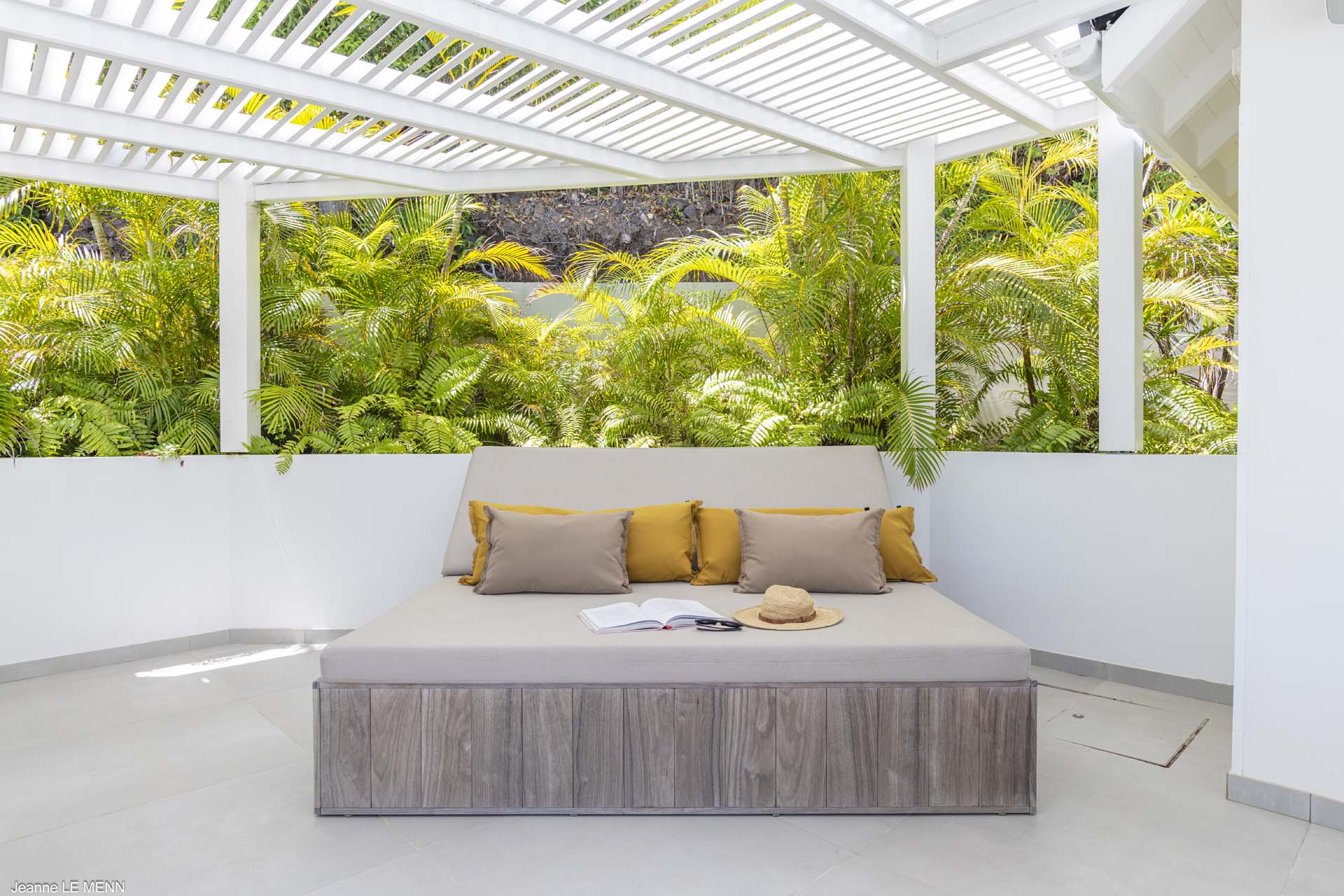 The other two bedrooms are on the other side of the pool terrace. The furnishings are modern and comfortable, offering a peaceful night’s sleep each evening.