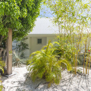 Before you even step inside Bel Ombre Villa, the entryway sets the tone for your stay. Serene bamboo plants adorn the stairway leading to the front door, which opens to reveal the minimalist and relaxing great room.