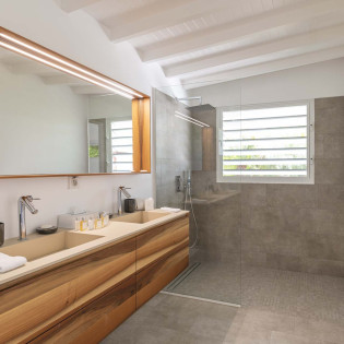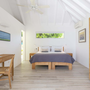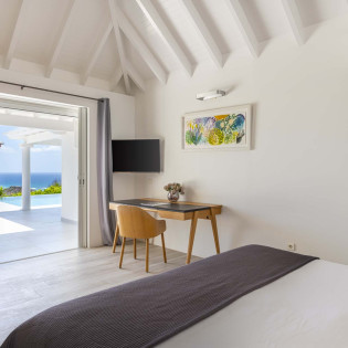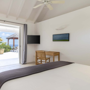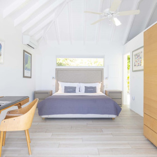 All 3 bedrooms at Villa Bel Ombre open onto the pool terrace and feature stunning views over Marigot Bay. Each has a plush king-sized bed, air-conditioning screened windows for natural breezes, and an ensuite.