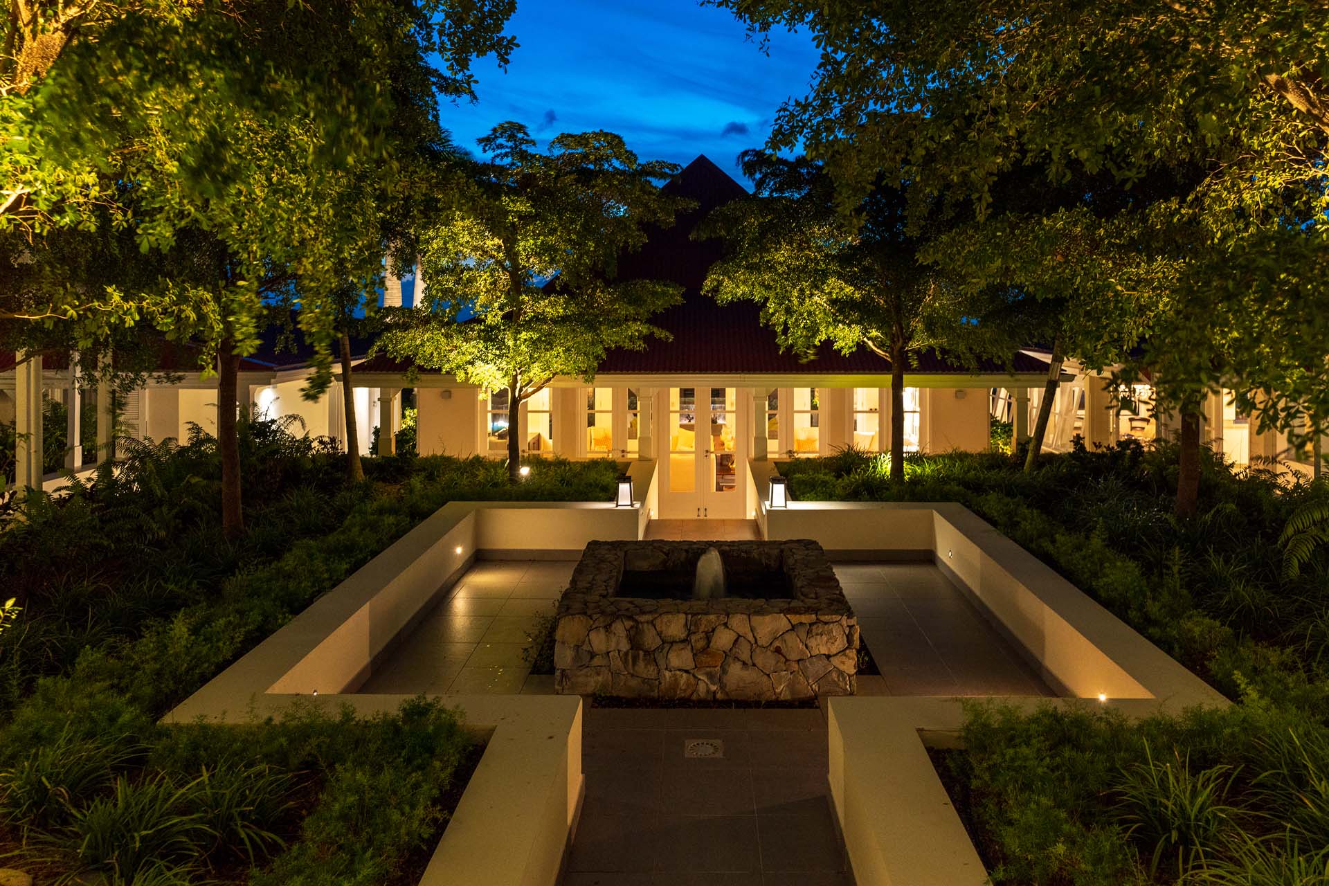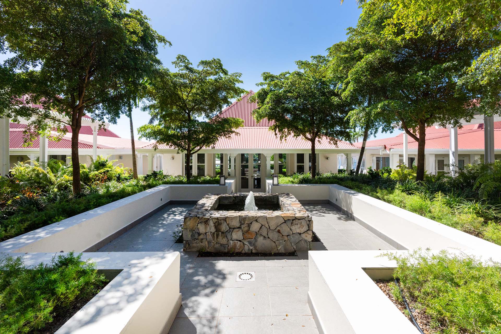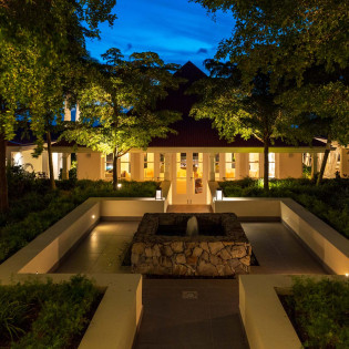 Spread over a series of pavilions, Villa Belle Bague is brought together by a series of covered outdoor walkways revolving around a central cloister. With a beautiful garden and stone fountain, this entrance sets the tone for the rest of the relaxing living spaces.