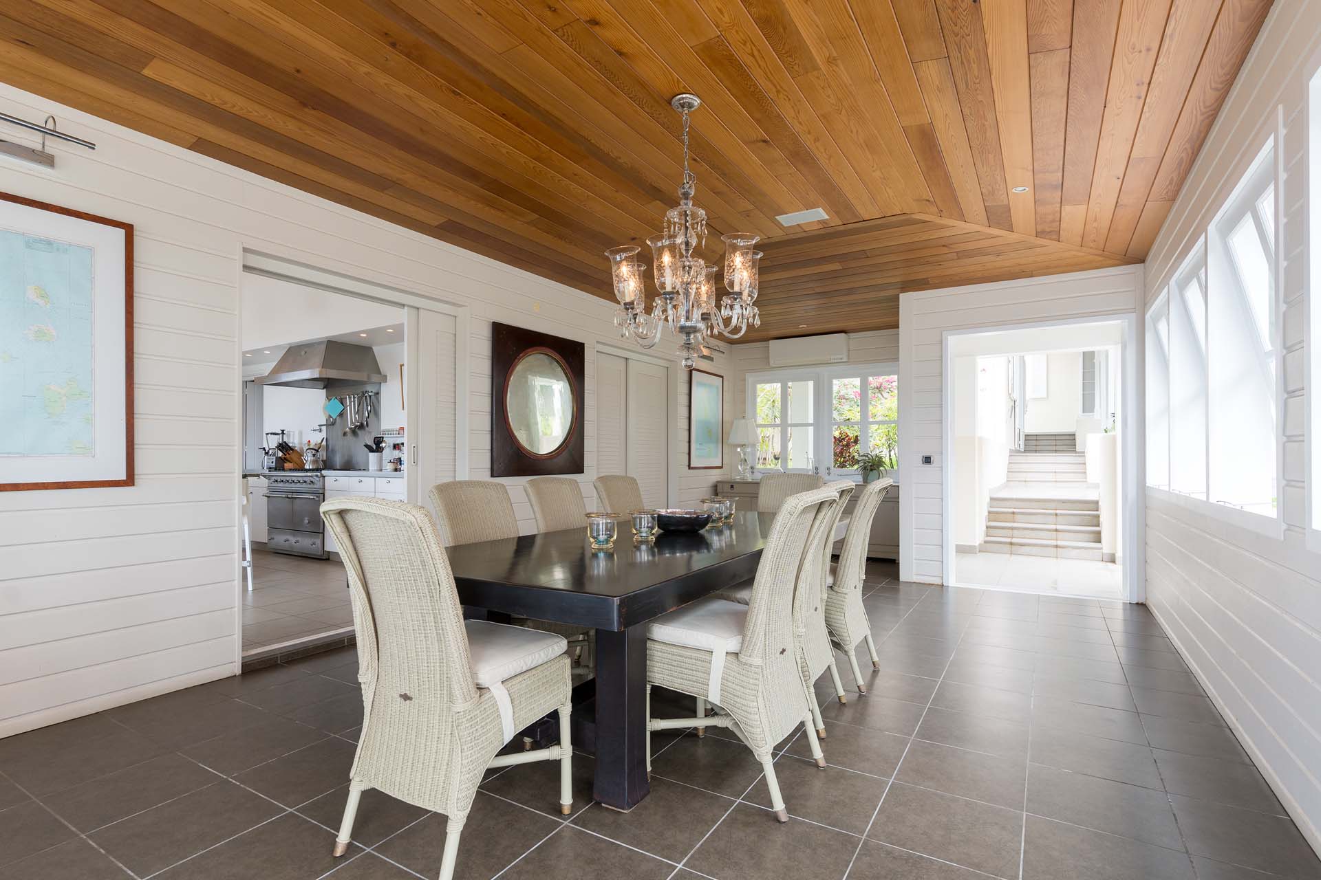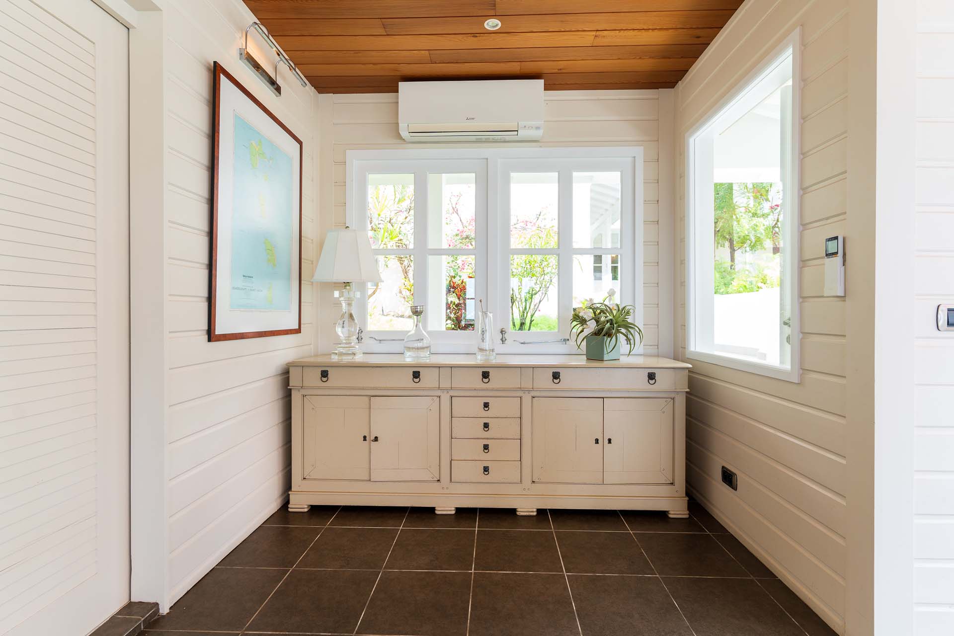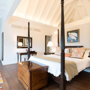 The stylish interiors of Villa Belle Bague feature island antiques vaulted wooden ceilings, and elegant colonial furnishings. Blending with the outdoor spaces, the entire property is clad in a tropical, island atmosphere.