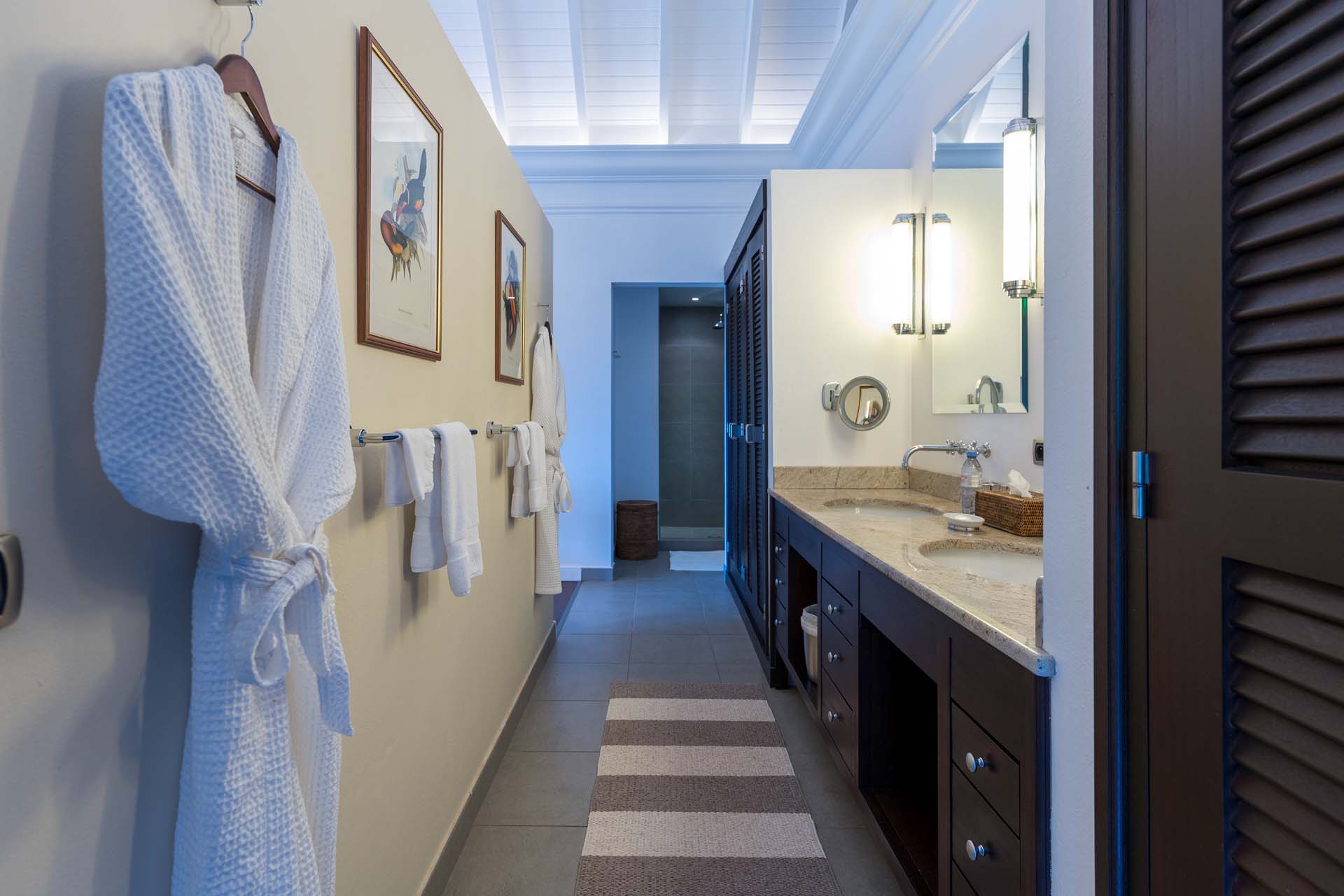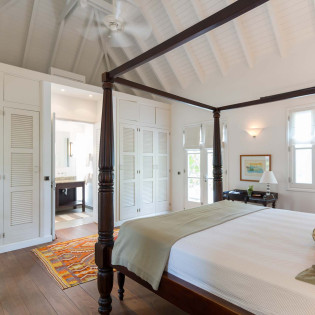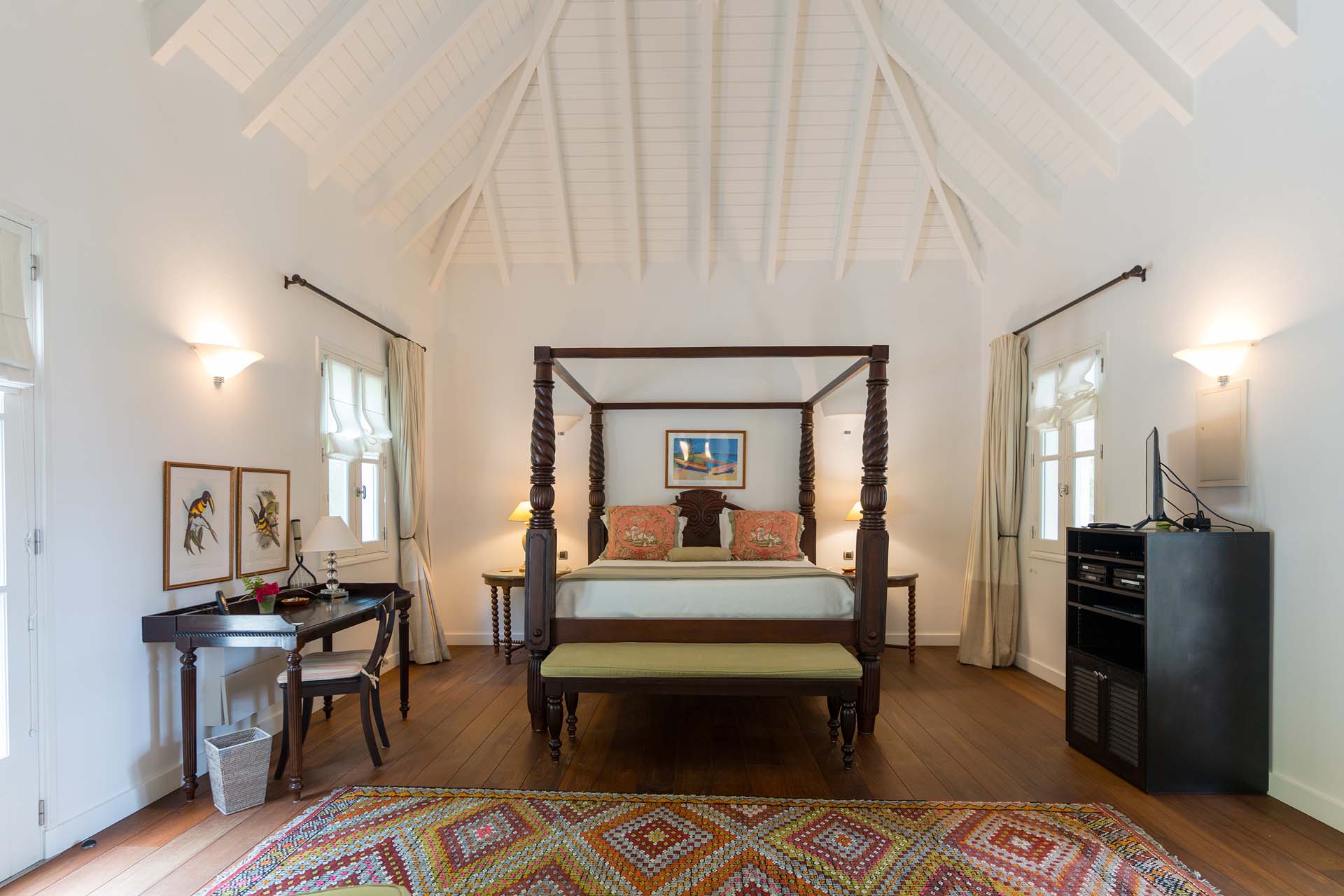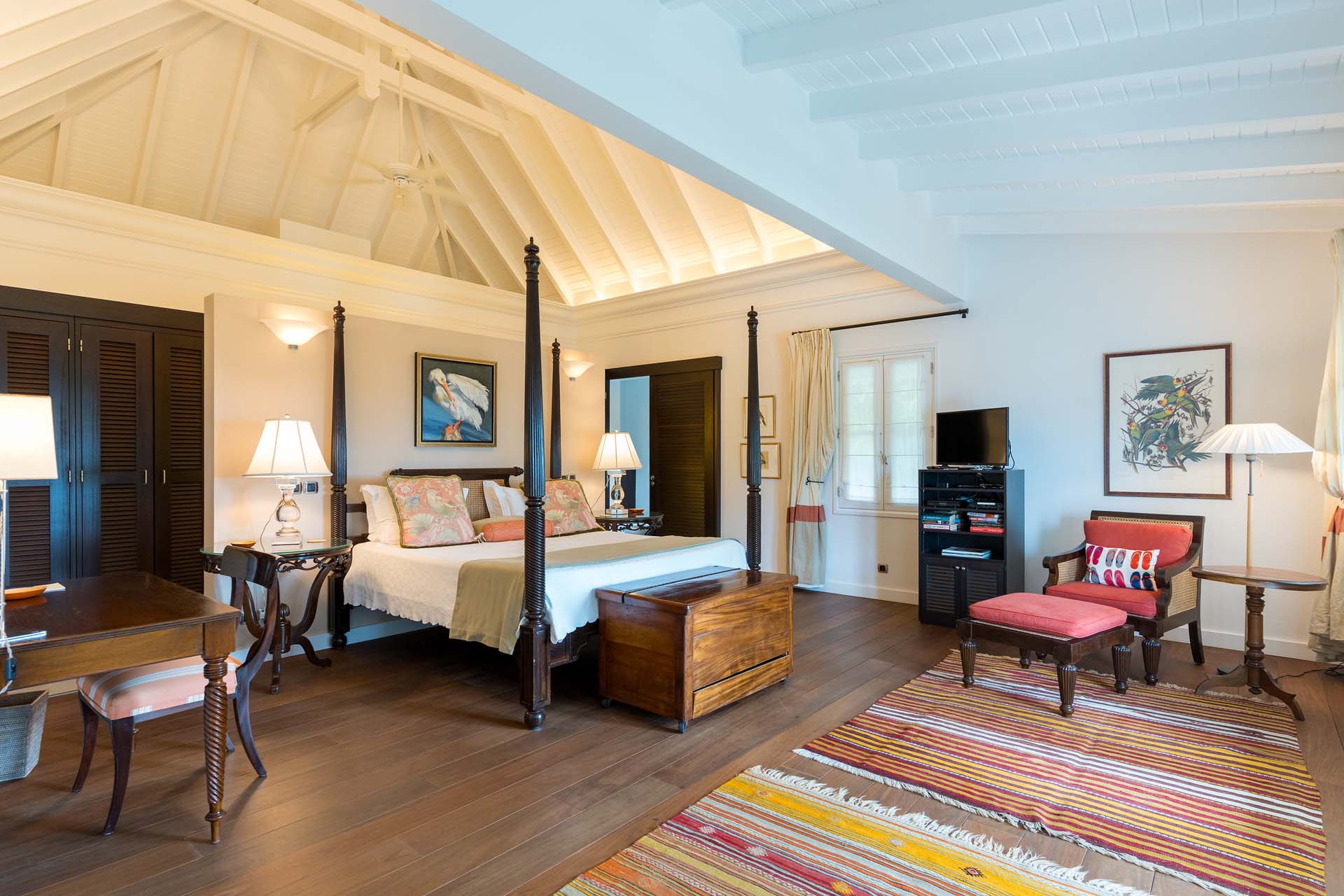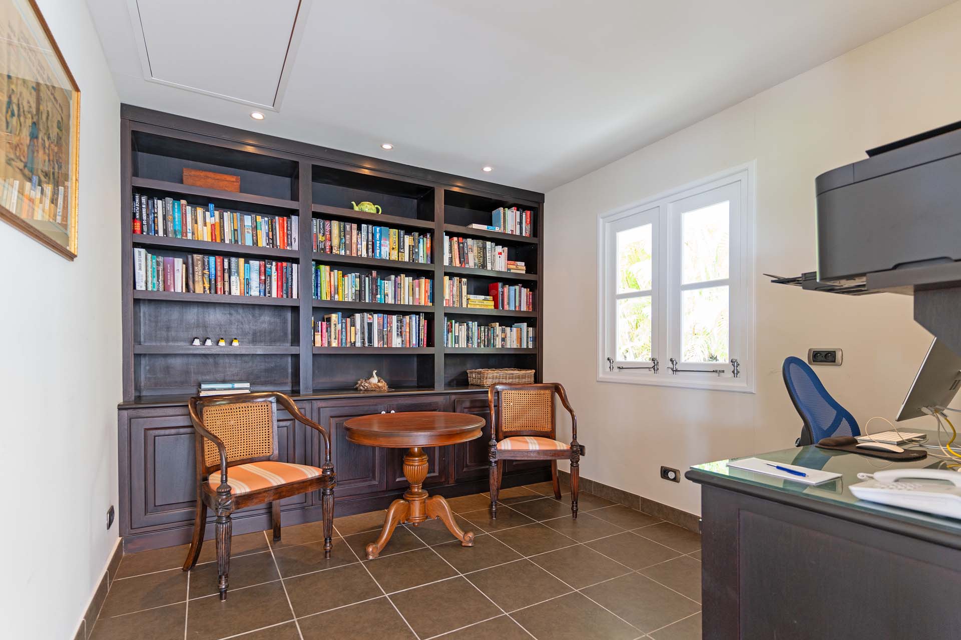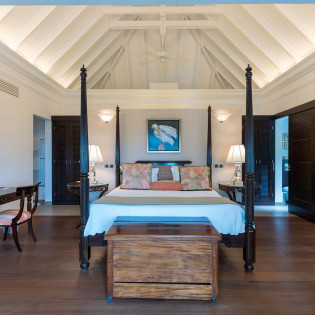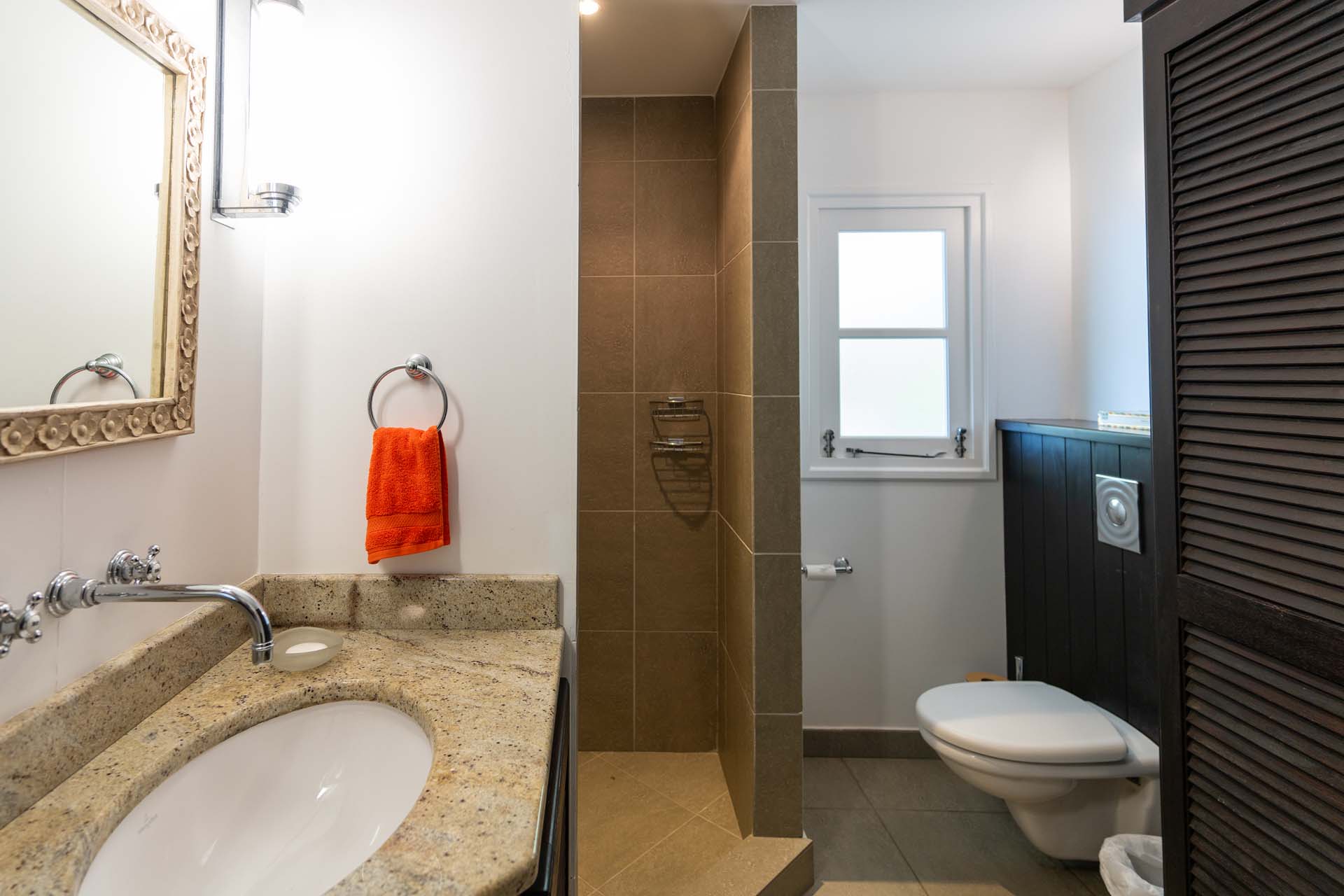 Three of the four bedrooms are in separate cottages, located around the central cloister. Each bedroom has colonial-style furnishings and a queen-sized bed, offering a fantastic night’s sleep. The rooms also come with an ensuite bathroom with granite-topped vanities and a private terrace ideal for sunbathing. The fourth bedroom is similarly furnished and opens towards the pool terrace.