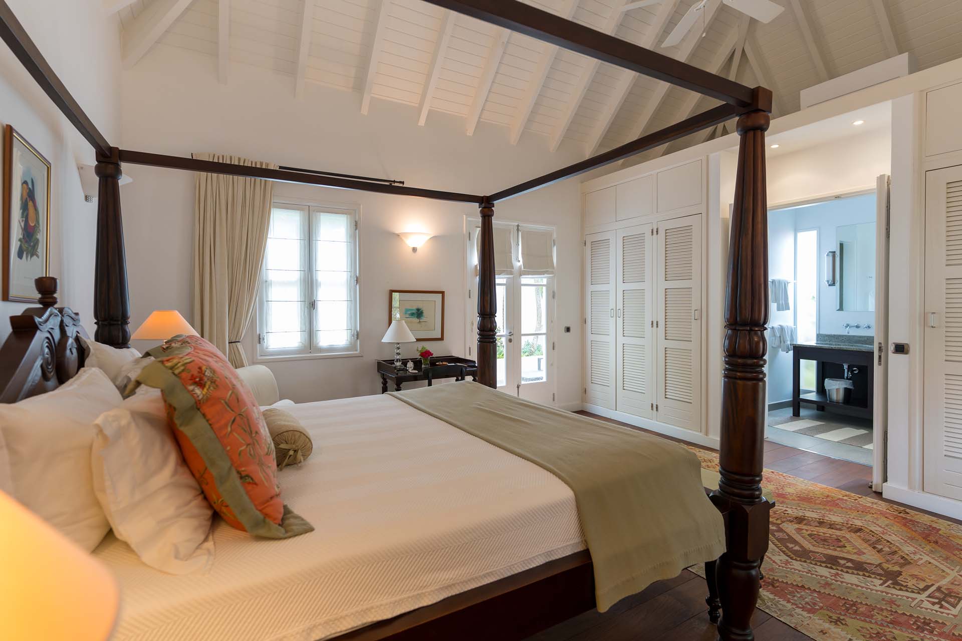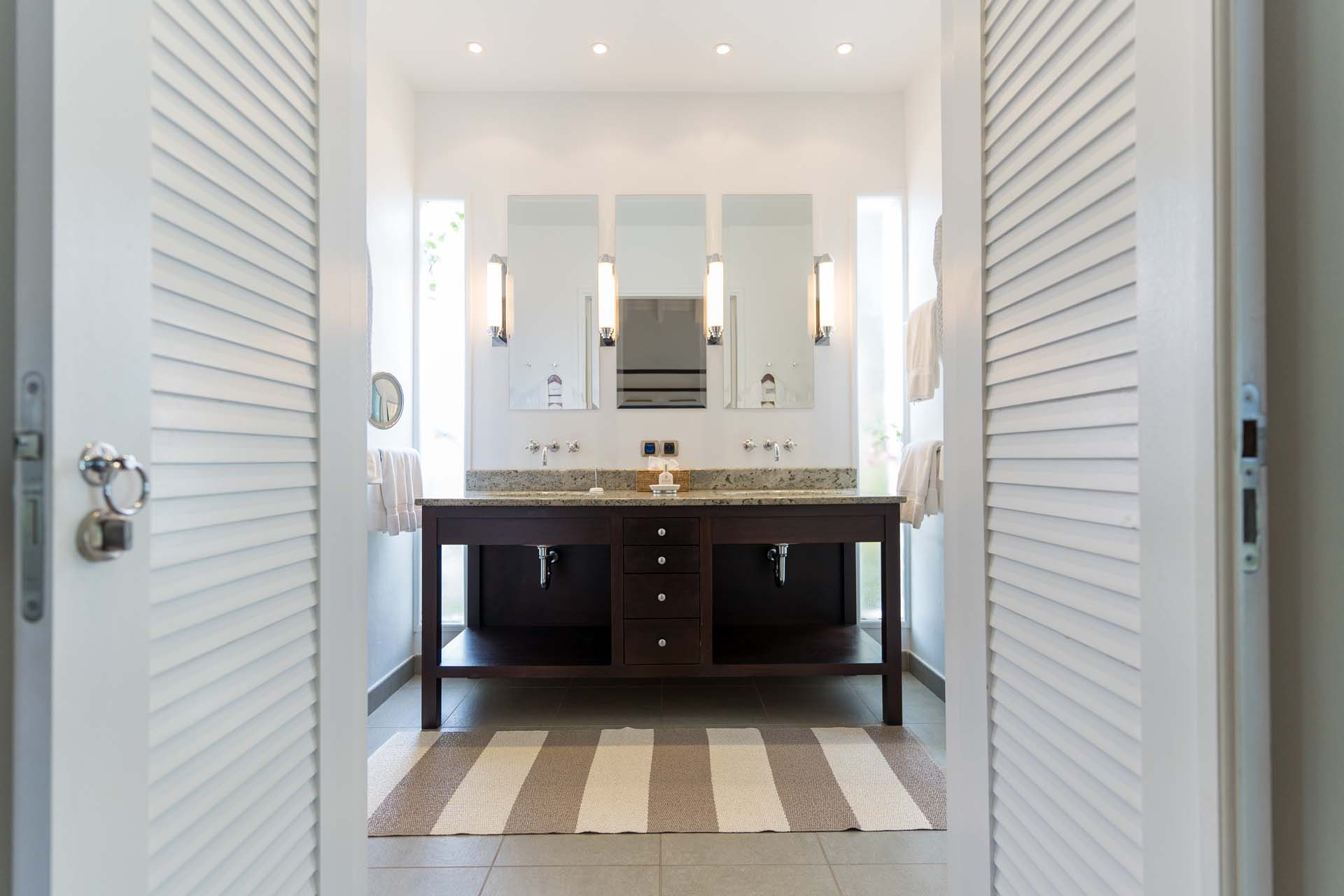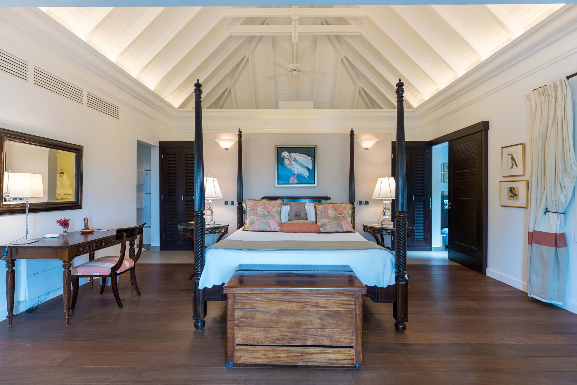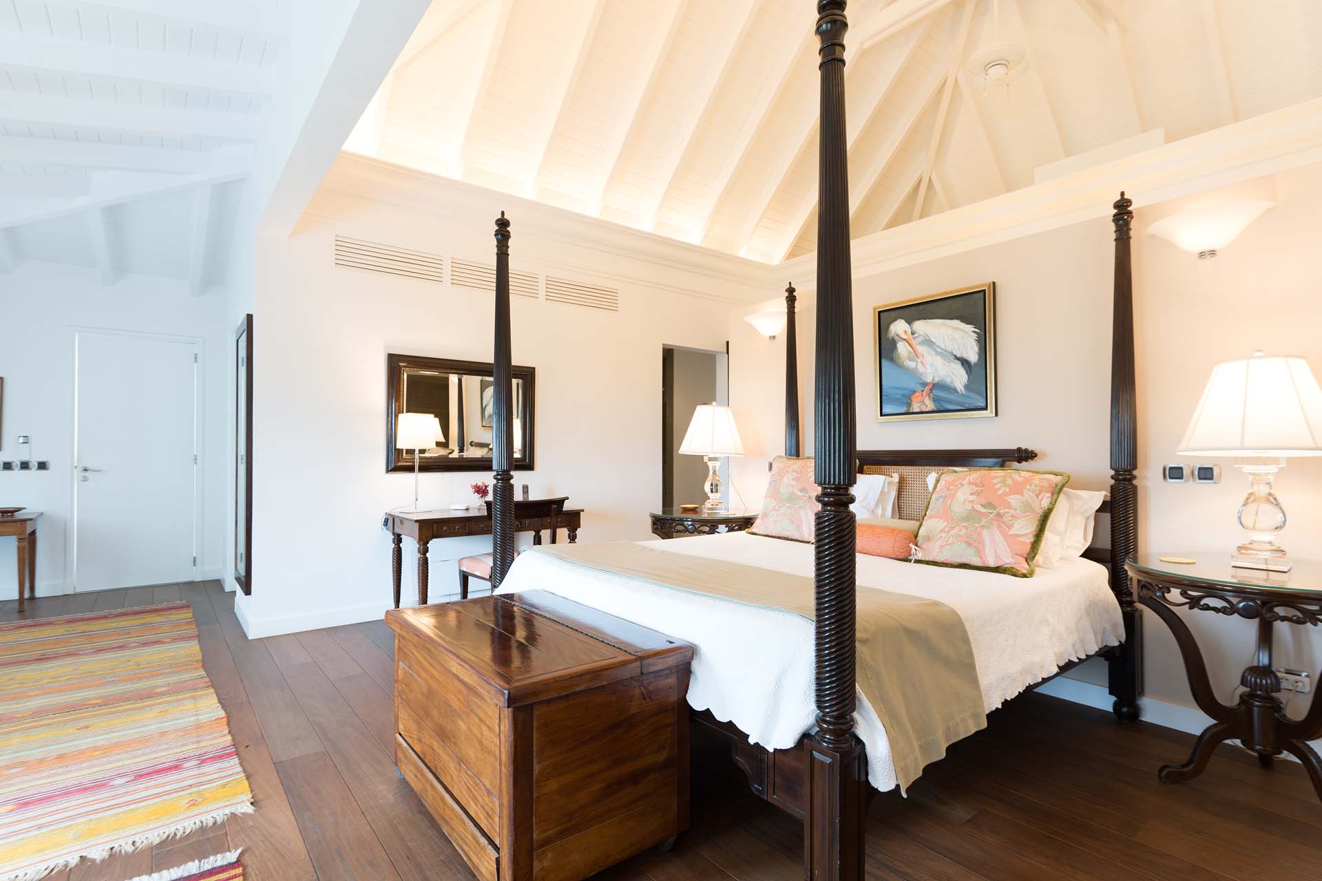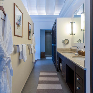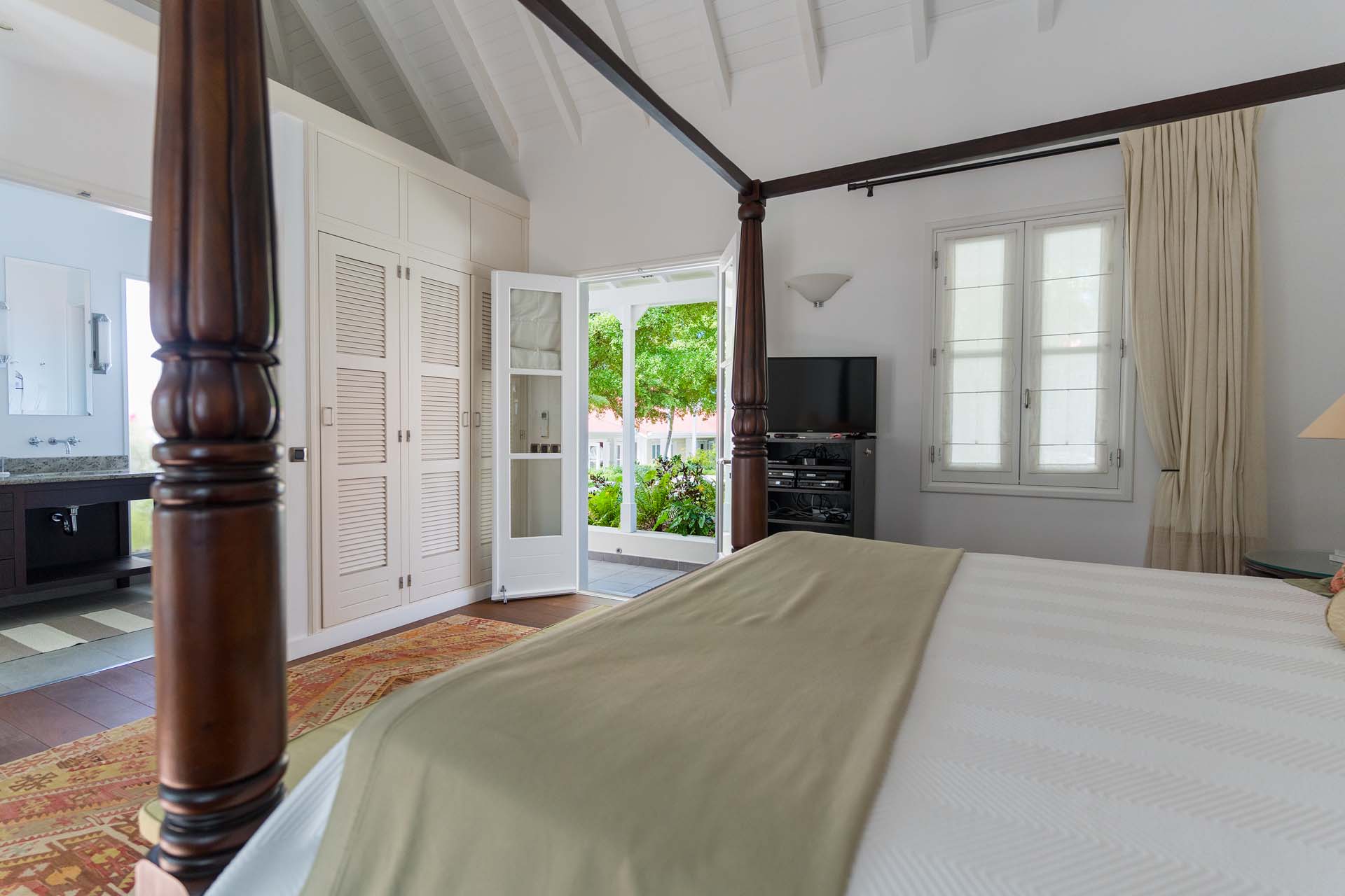 Three of the four bedrooms are in separate cottages, located around the central cloister. Each bedroom has colonial-style furnishings and a queen-sized bed, offering a fantastic night’s sleep. The rooms also come with an ensuite bathroom with granite-topped vanities and a private terrace ideal for sunbathing. The fourth bedroom is similarly furnished and opens towards the pool terrace.