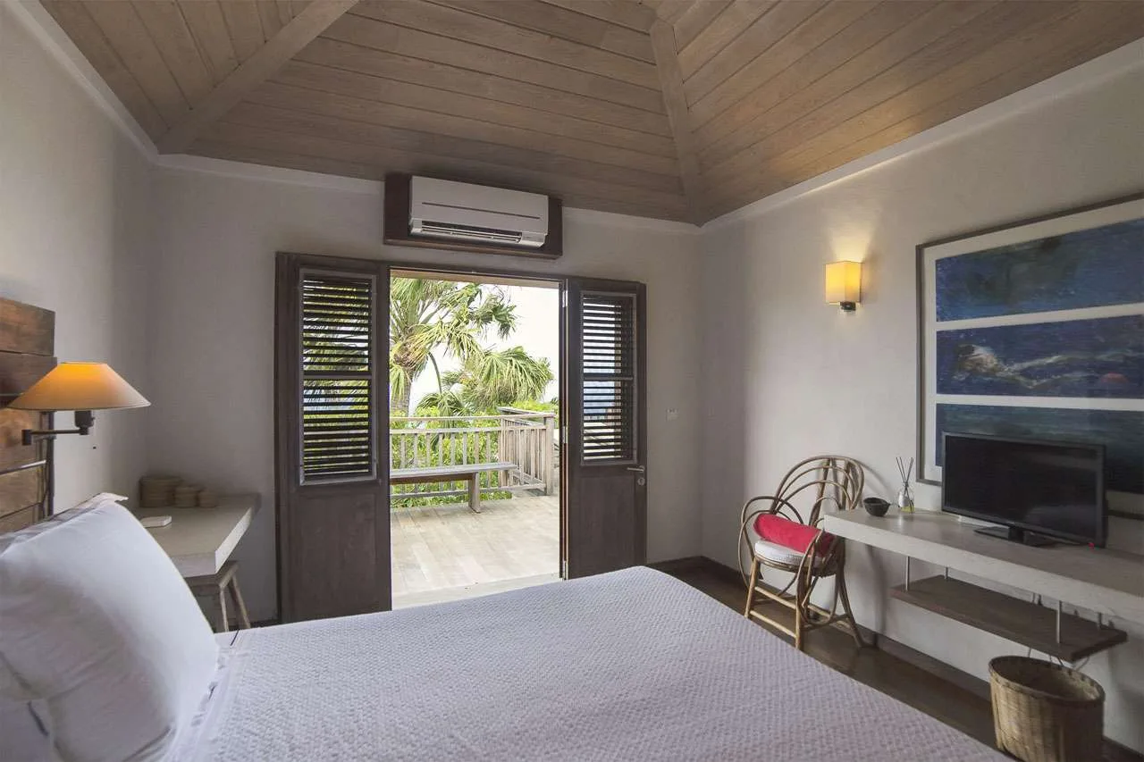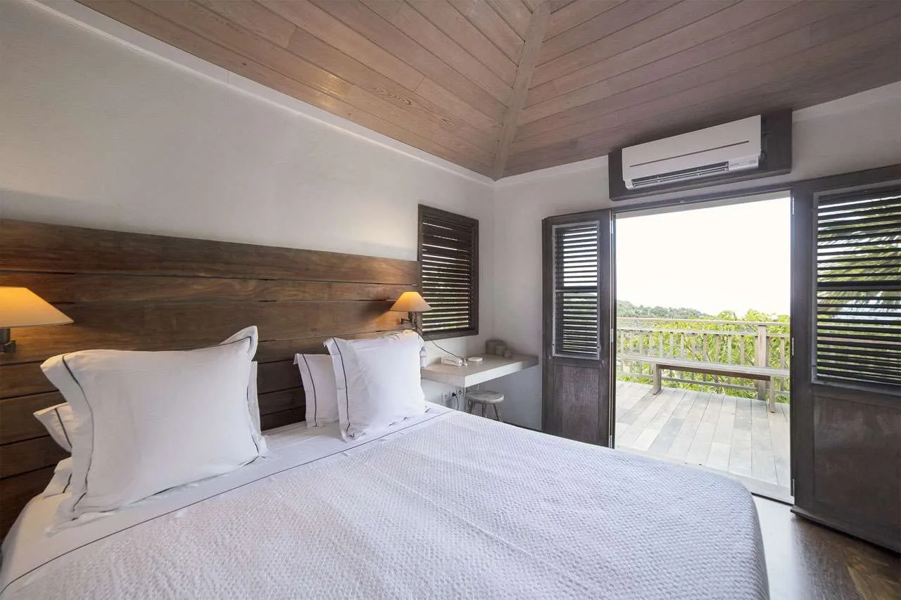 Inside, Villa Bibi offers plenty of peace, privacy, and luxury for your island getaway. Natural materials like Brazilian wood and white cotton canvas give the entire property a feeling of high-end elegance.