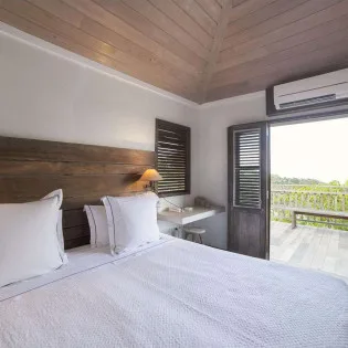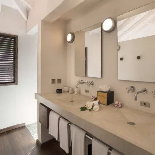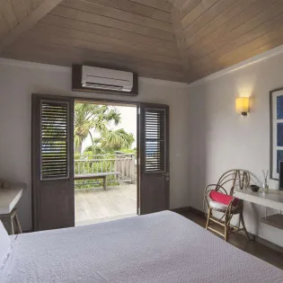 Each of the bedrooms at Villa Bibi are quiet, peaceful, and comfortable. Two larger bedrooms each have a plush king-sized bed. One of the rooms is accessed from the pool deck, while the other is accessed from the back terrace. Both have spacious ensuites.