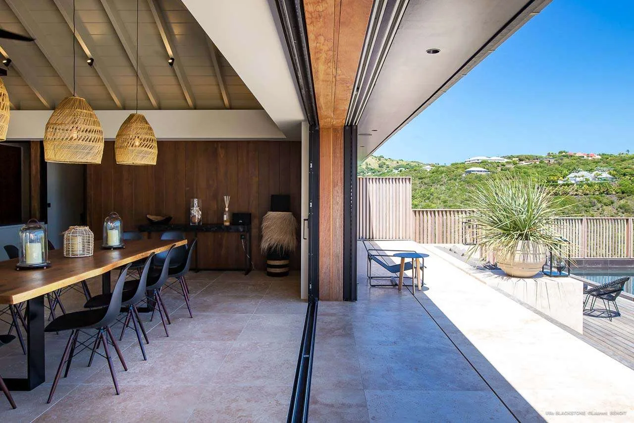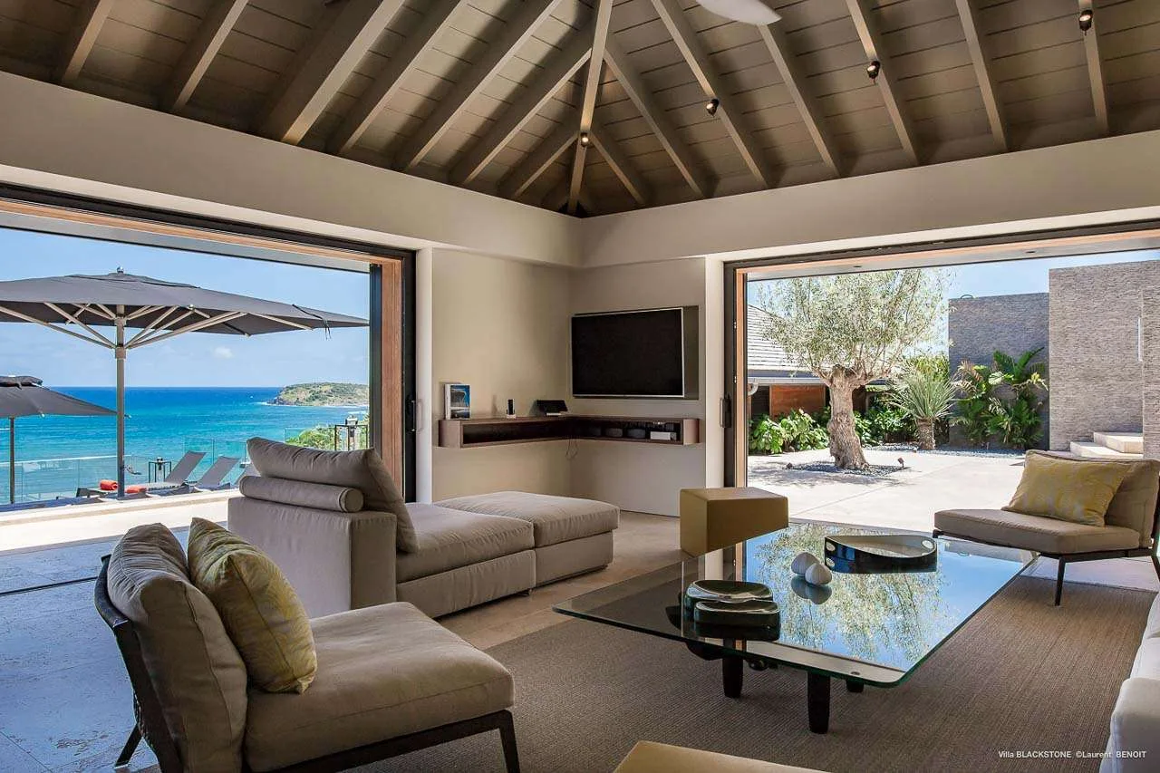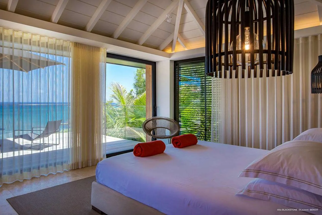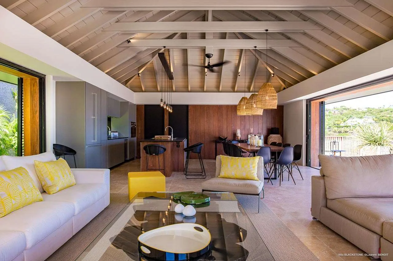 Low-key luxury is what Villa Blackstone is all about, a sophisticated and elegant choice for your St. Barts getaway. The interiors are cozy and warm, with natural woods bathed in light washing in through the large floor-to-ceiling glass doors. Tropical-chic décor, vaulted ceilings, and gorgeous cross breezes complete the home.