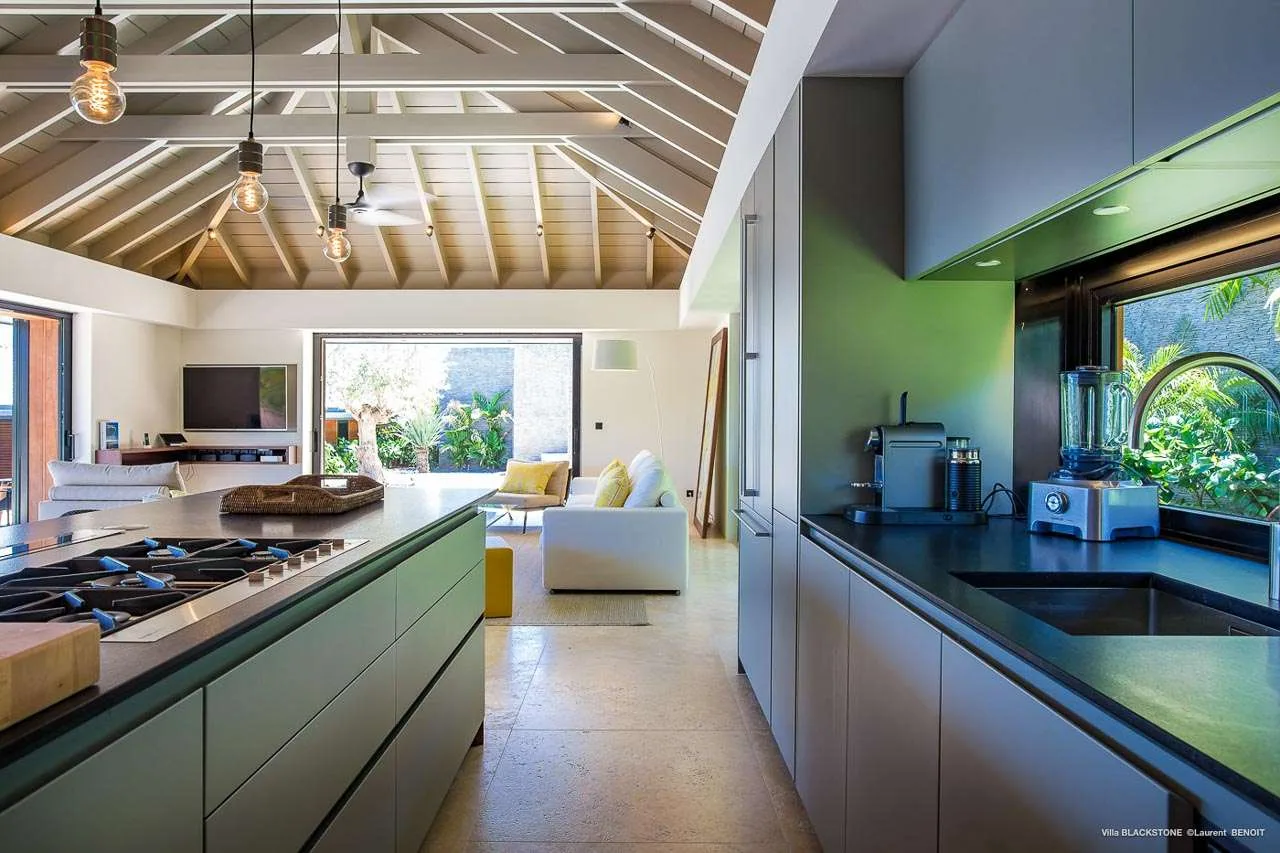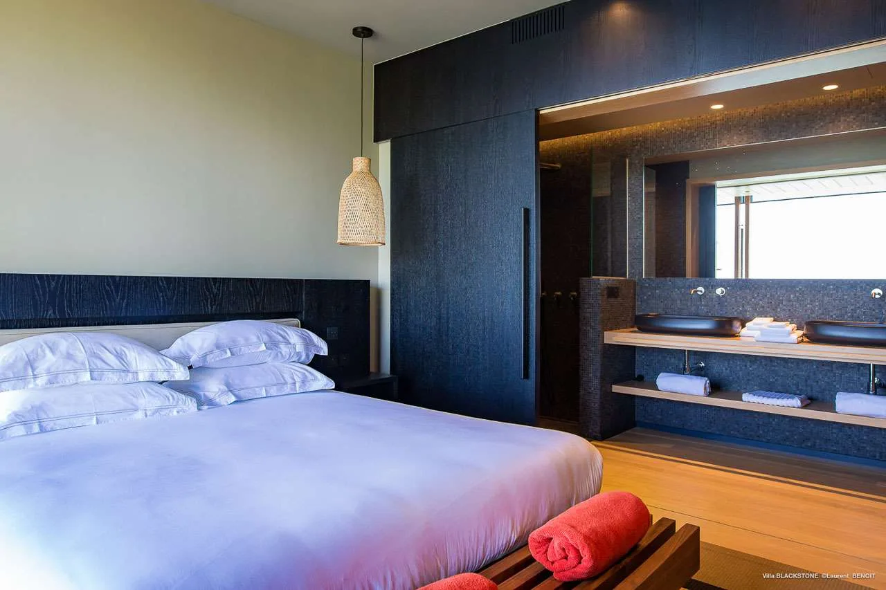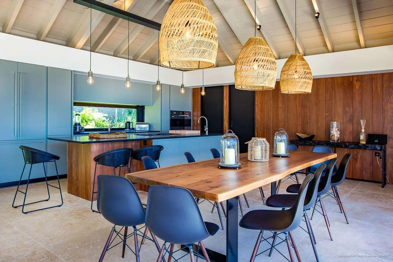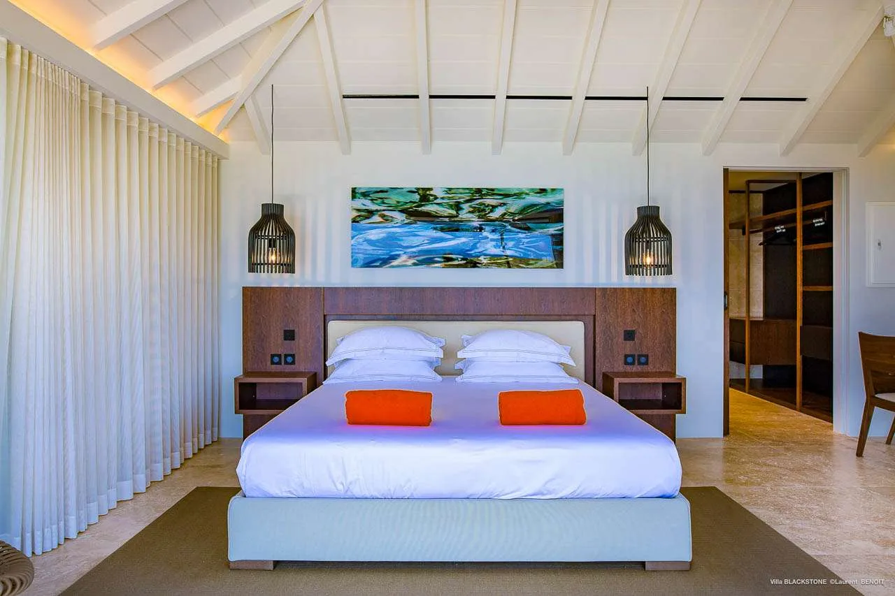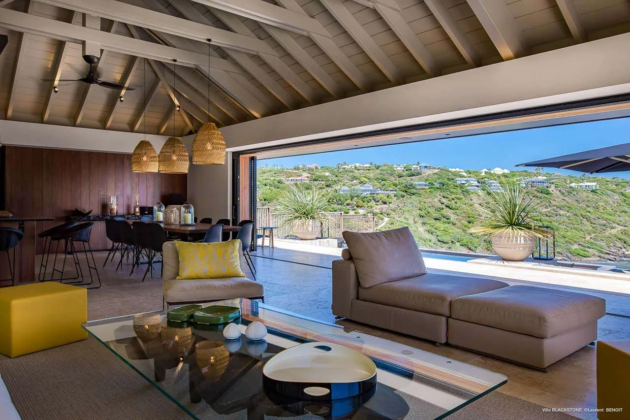 Low-key luxury is what Villa Blackstone is all about, a sophisticated and elegant choice for your St. Barts getaway. The interiors are cozy and warm, with natural woods bathed in light washing in through the large floor-to-ceiling glass doors. Tropical-chic décor, vaulted ceilings, and gorgeous cross breezes complete the home.