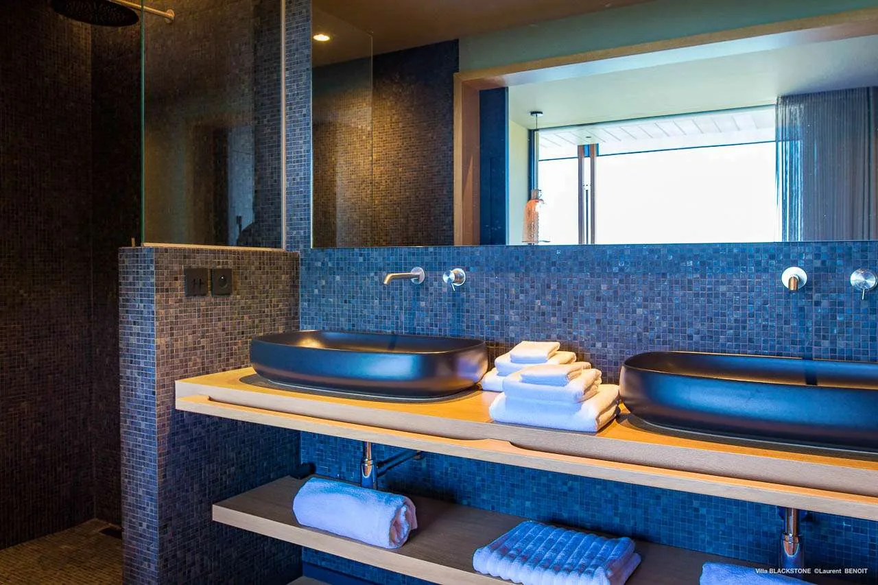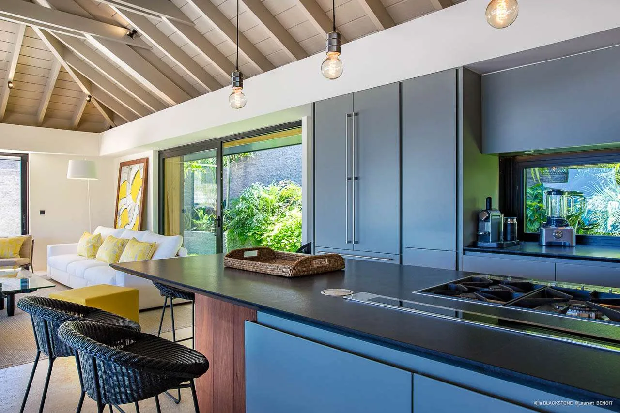 The modern kitchen at Villa Blackstone has a breakfast bar, high-end appliances, and a large counter so the whole group can get involved in preparing meals. Our concierge is also on hand to organize a grocery delivery, or for a special occasion, a private chef.