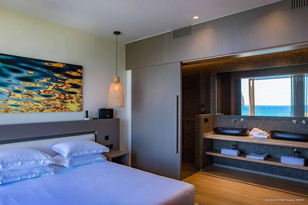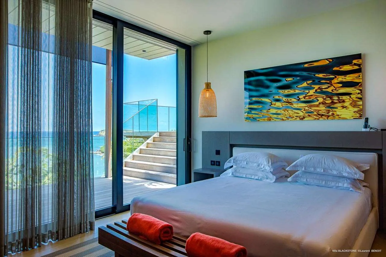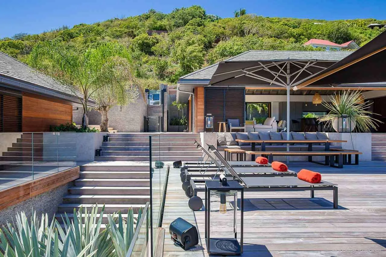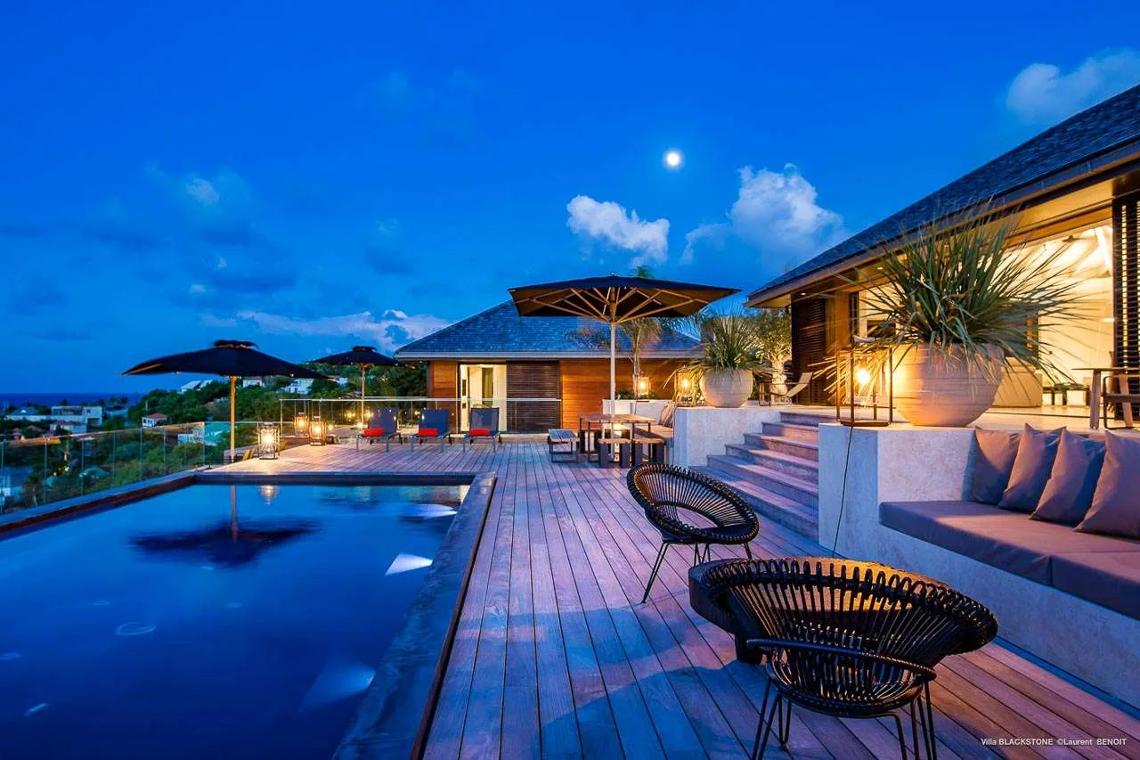 Welcome to Villa Blackstone (villa code: WV BLK), an alluring 5 +1-bedroom villa in Marigot, St. Barts. Situated on the hillside overlooking the bay, this villa enjoys astonishing ocean views within a 5-minute drive from the beach.