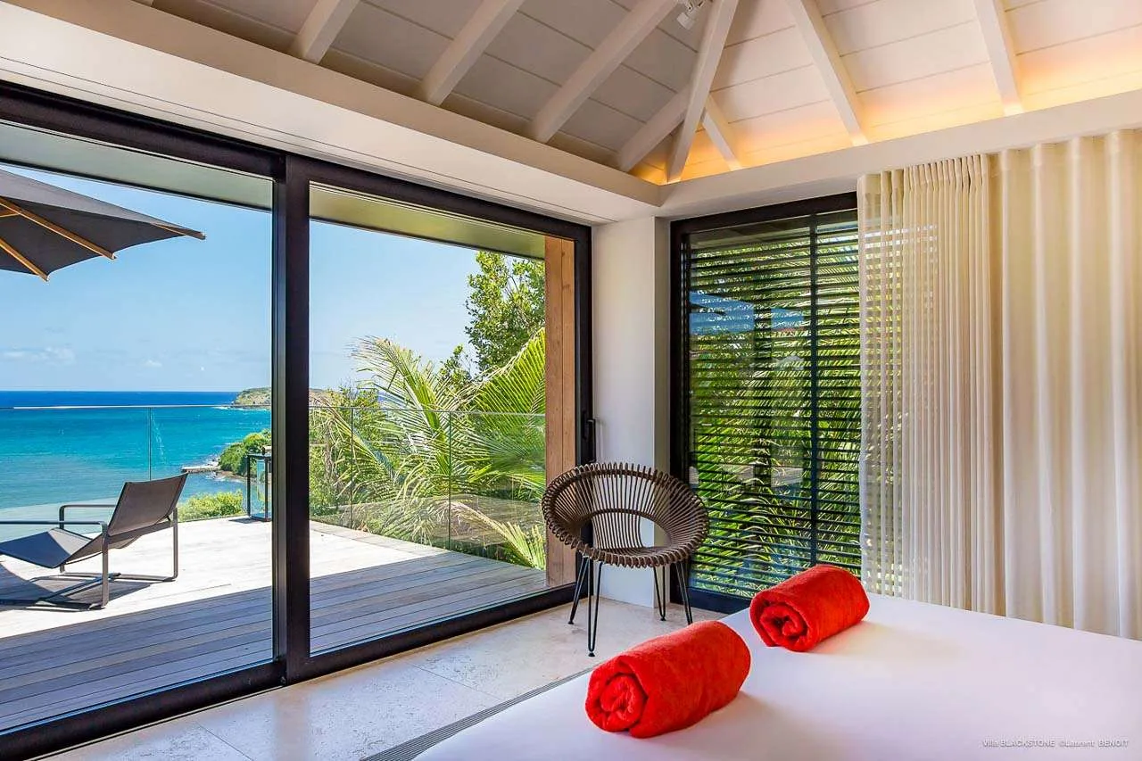 Nestled on the hills above Marigot Bay on the north coast of St. Barts, this is a fantastic location for a high-end island vacation. The beach is a short drive down the hill, and St. Jean is a 10-minute drive to the west, with dazzling restaurants and bars to enjoy. Gustavia, the capital, is 15 minutes by car.