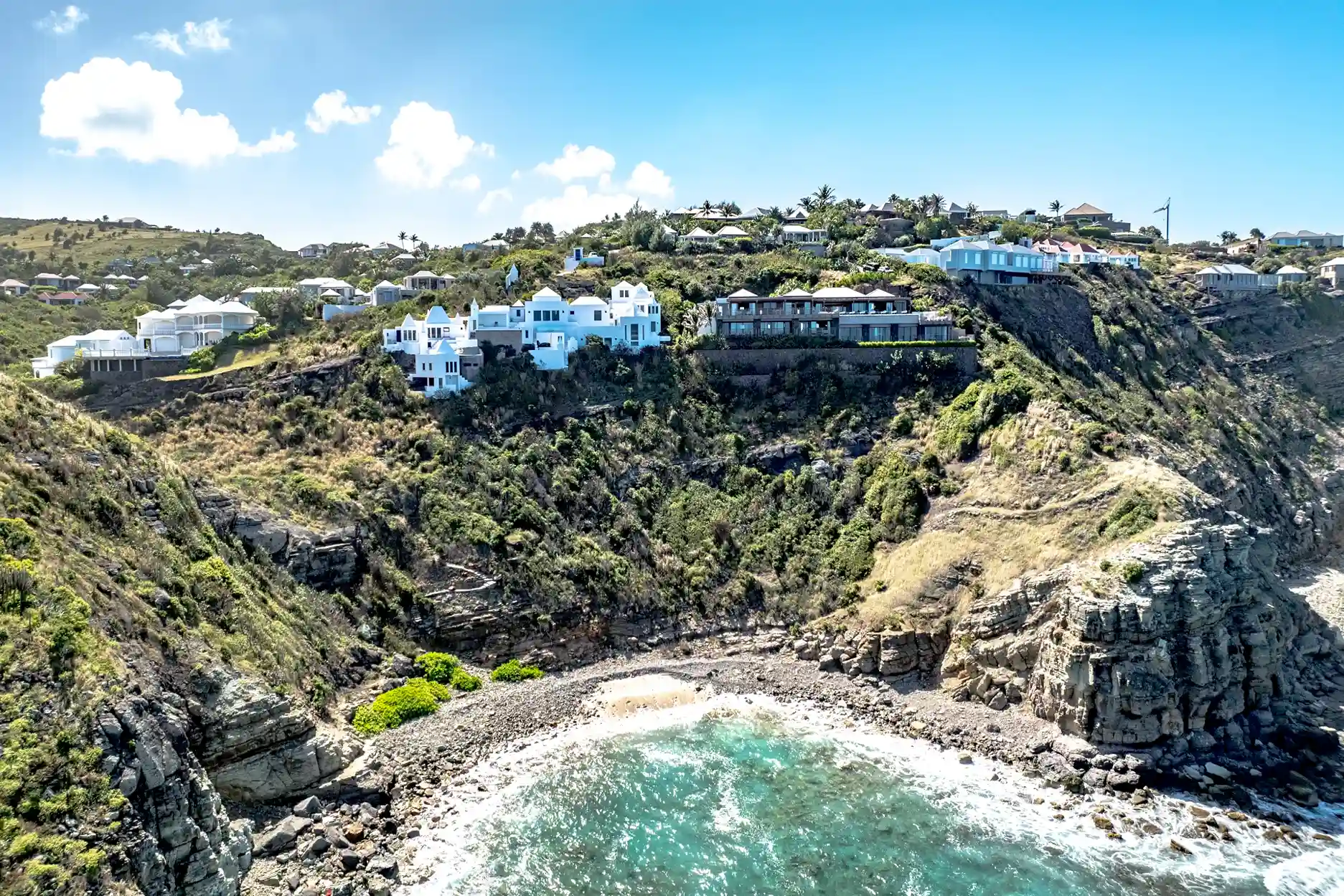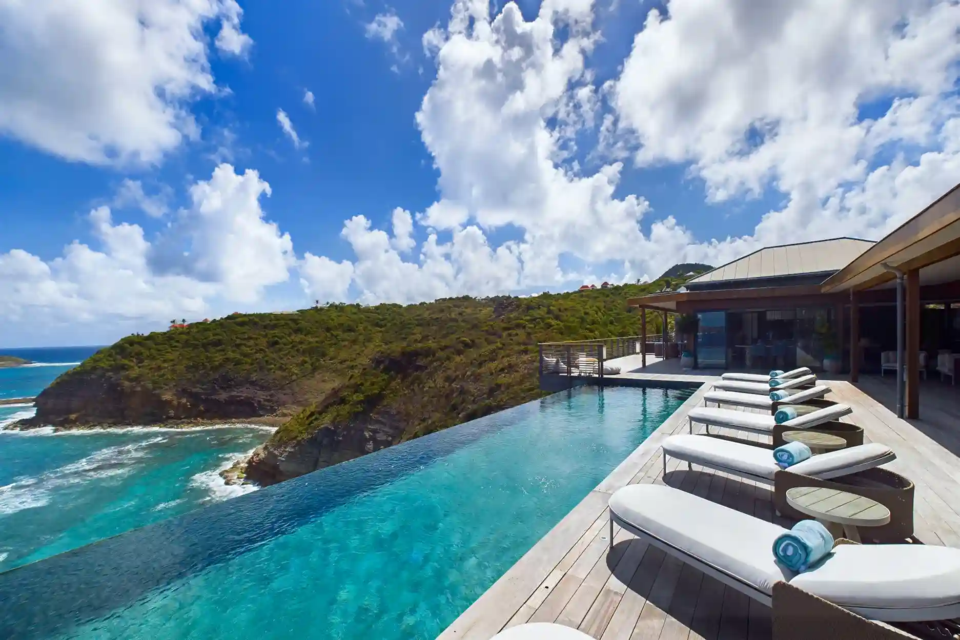 Villa Brahama (villa code: WV BHA), is a 7 + 1-bedroom villa perched on the cliffs of Pointe Milou. Situated on the northeast side facing Mont Jean, this villa offers uninterrupted panoramas over the sweeping coastline and the dramatic sounds of the rolling surf.