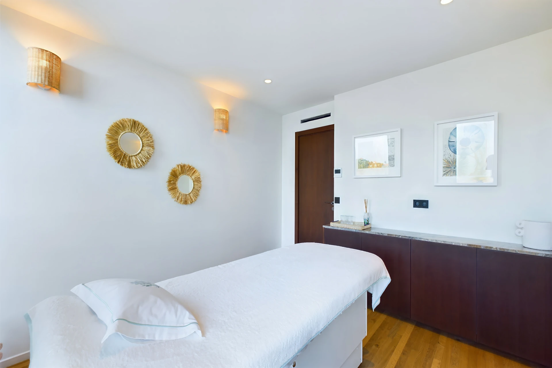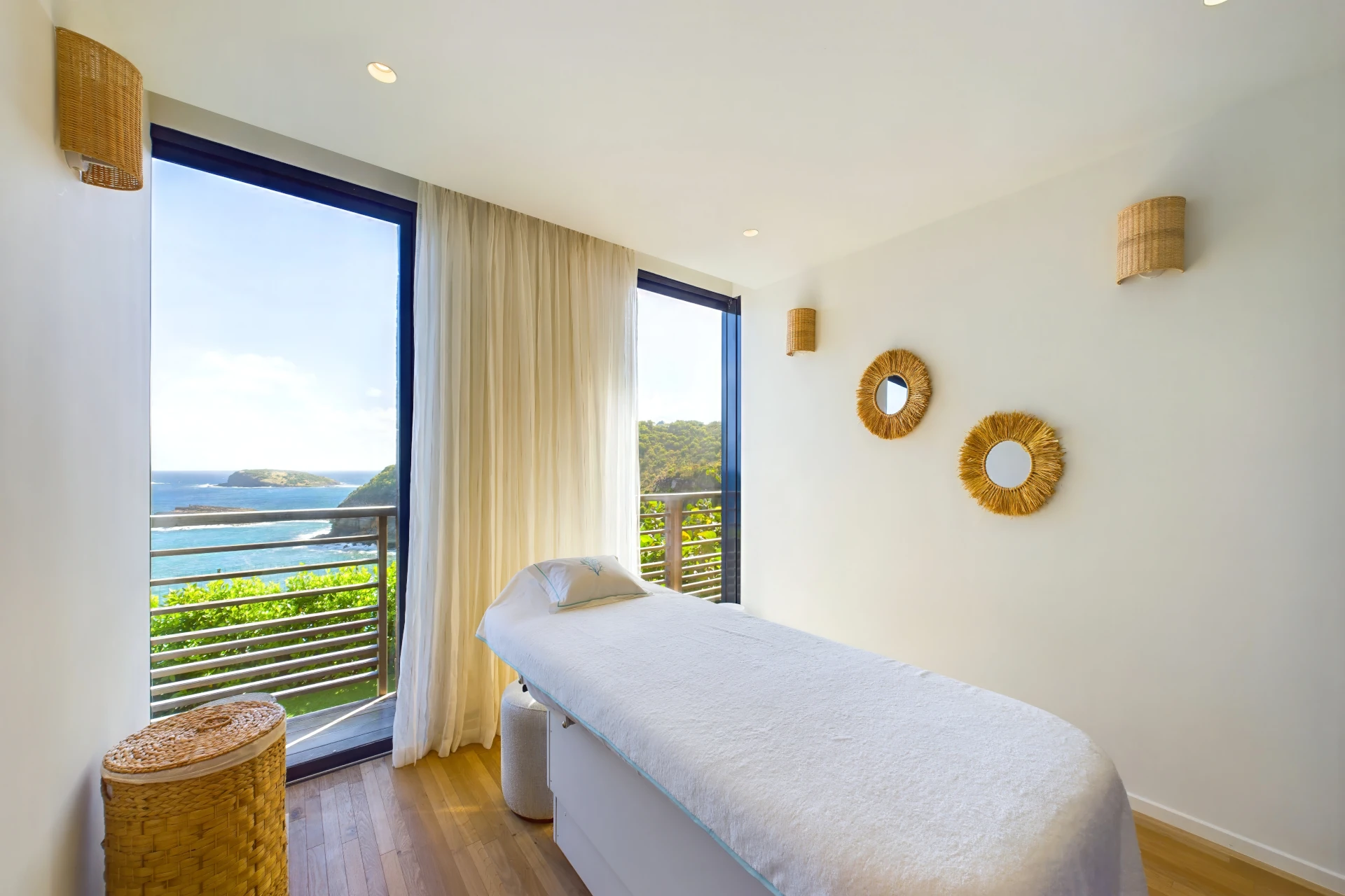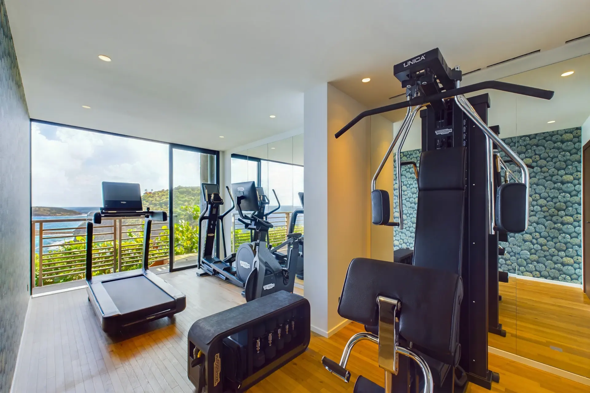 Just beyond the bedrooms, a fully-equipped fitness room and an adjoining massage room elevate the experience, offering a private wellness escape without ever leaving the property.