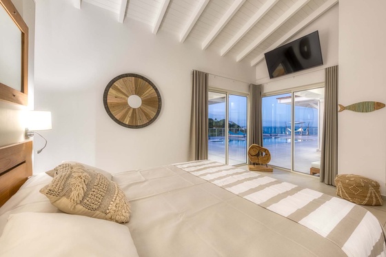 Inside this property, old-world Caribbean charm meets the latest in French sophistication. The flowing, open-plan design makes the most of the stunning location, with views over Tortue Island and the shimmering ocean. West Indies wicker and luxury mahogany furnishings help evoke an exotic, tropical atmosphere.