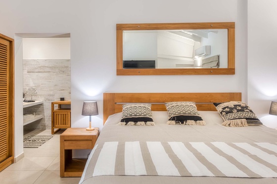 There are 2 bedrooms in Villa Caramba, each with an ensuite bathroom and air-conditioning. Bright, spacious, and featuring soft and luxurious linens, you’ll love collapsing on the beds each night. The master bedroom has a colonial 4-poster queen-sized bed and access to the side and back terrace. The second bedroom has twin beds (can be configured as a king) and a window with a picturesque view.