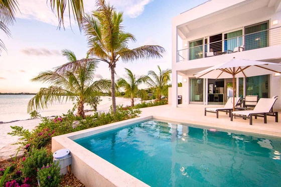 The extra-large, heated pool stretches all the way to a sunken open living area with wide benches and daybeds, which is a fabulous spot to sunbathe or take a nap during the day. As the sun starts to set, it’s also the ideal space to enjoy a cocktail with your entire party before dinner.