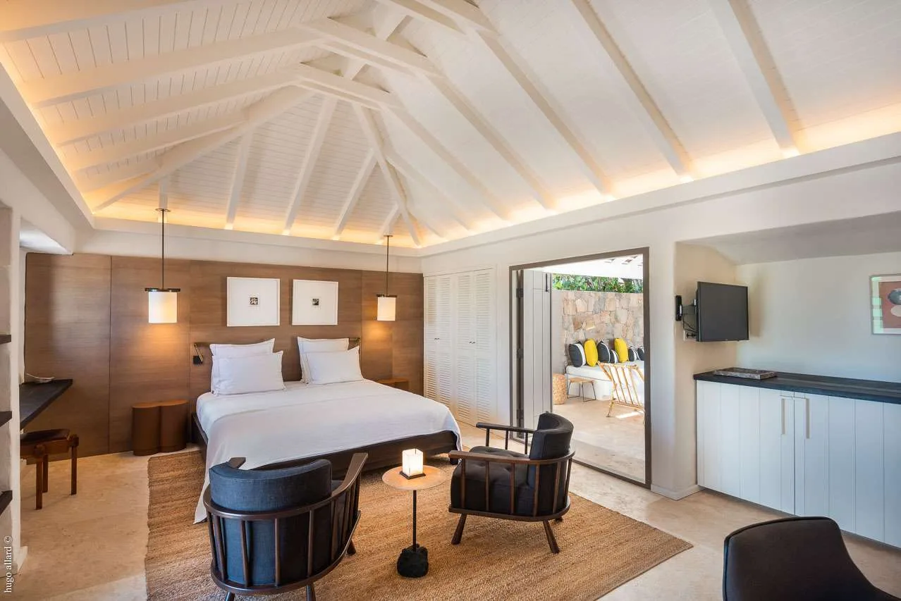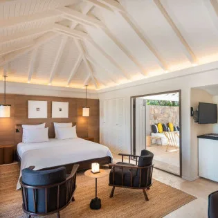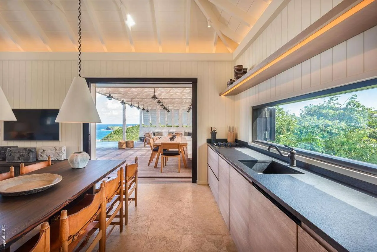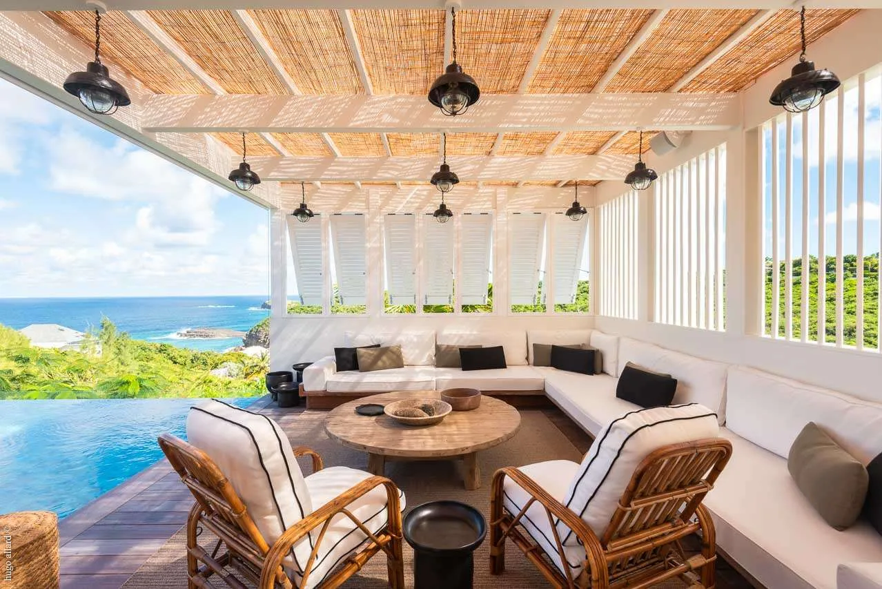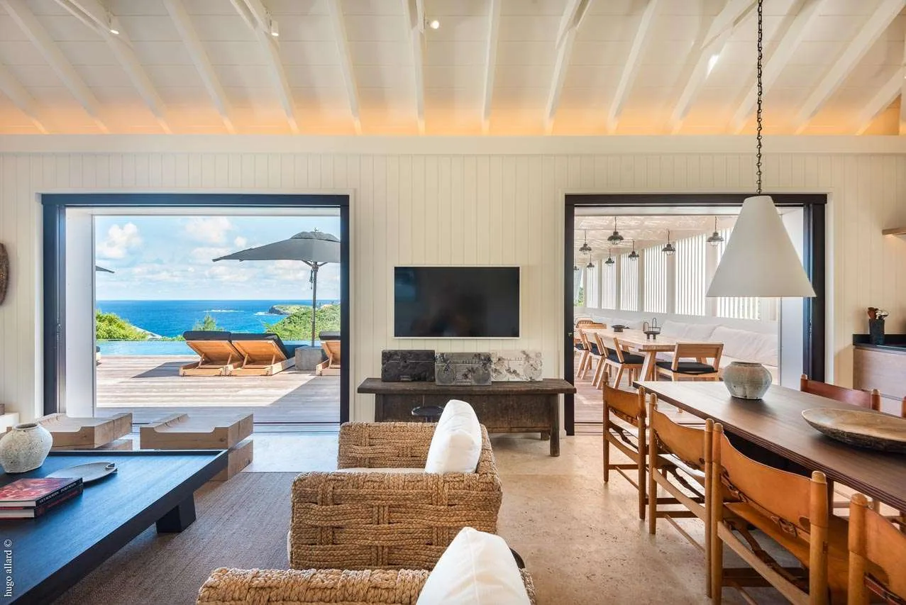 Completely redesigned and renovated, Villa Casa Minotto was one of the original St. Barts “cases”, now a contemporary and stylish refuge on the cliffs of Pointe Milou. The interiors are earthy and warm, with wooden accents and rattan textures tempered with cool, Scandinavian-style furnishings.