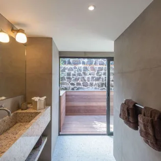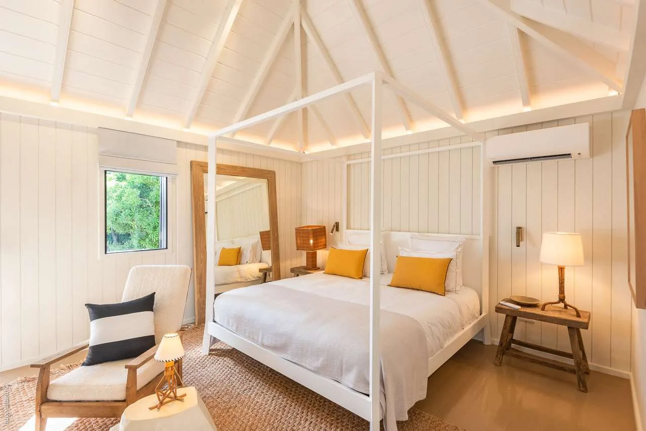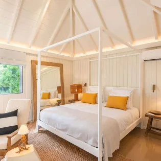 The third bungalow is next to the second master, a smaller room that’s ideal for teenagers or staff. It is important to know that this bedroom has a very low bathroom ceiling, with a showerhead around 5’10" high. The fourth bungalow is closer to the main house, with a private outdoor garden with seating to enjoy.