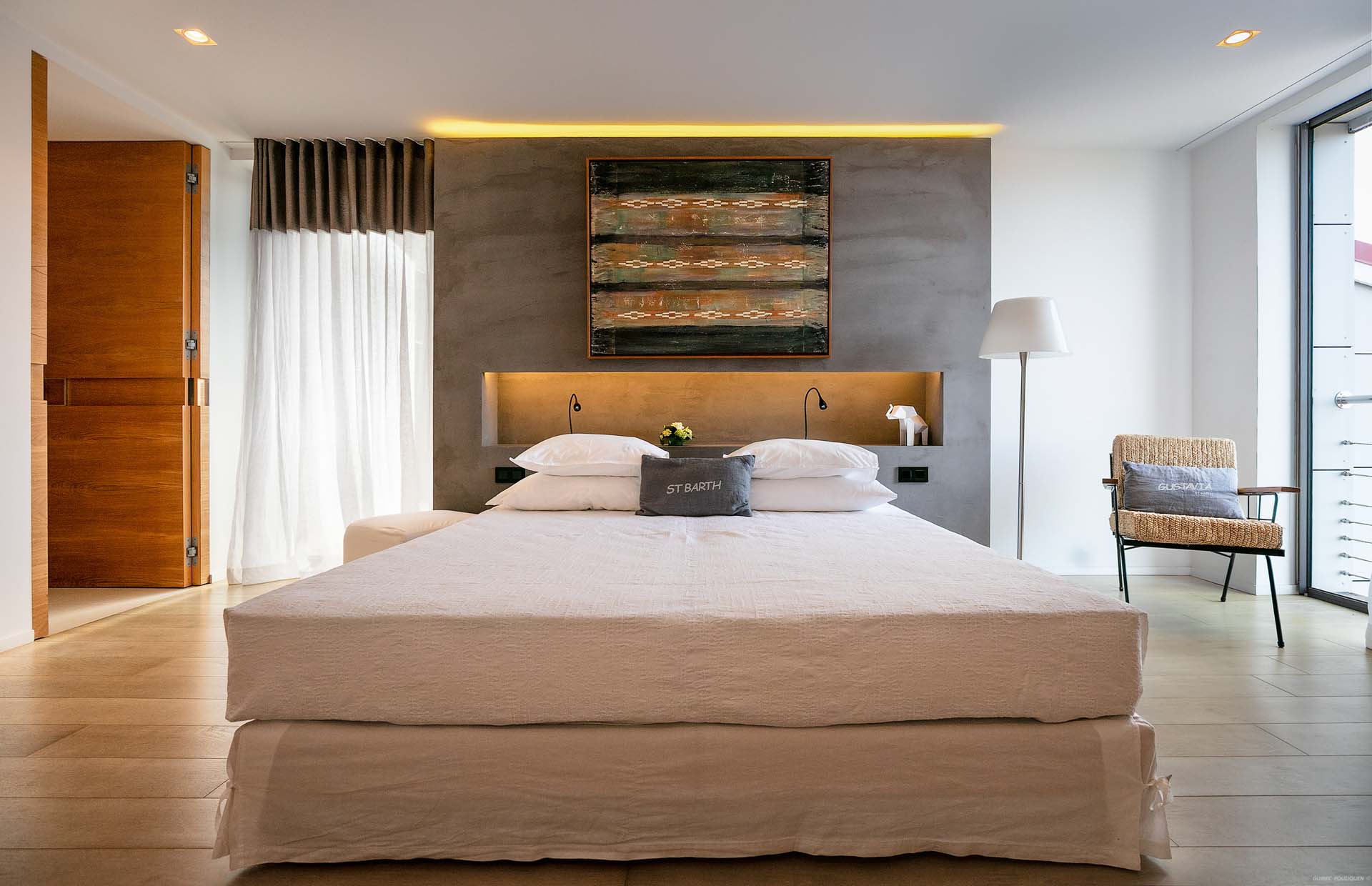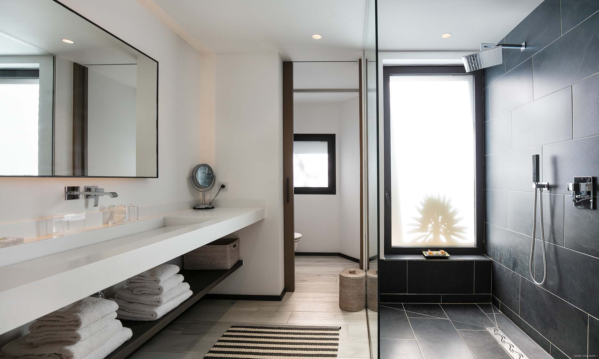 The spacious living areas inside Villa Casa Roc are luxurious and modern. Bespoke furnishings provide every comfort, while large sliding doors and windows frame those picture-perfect views of the town.