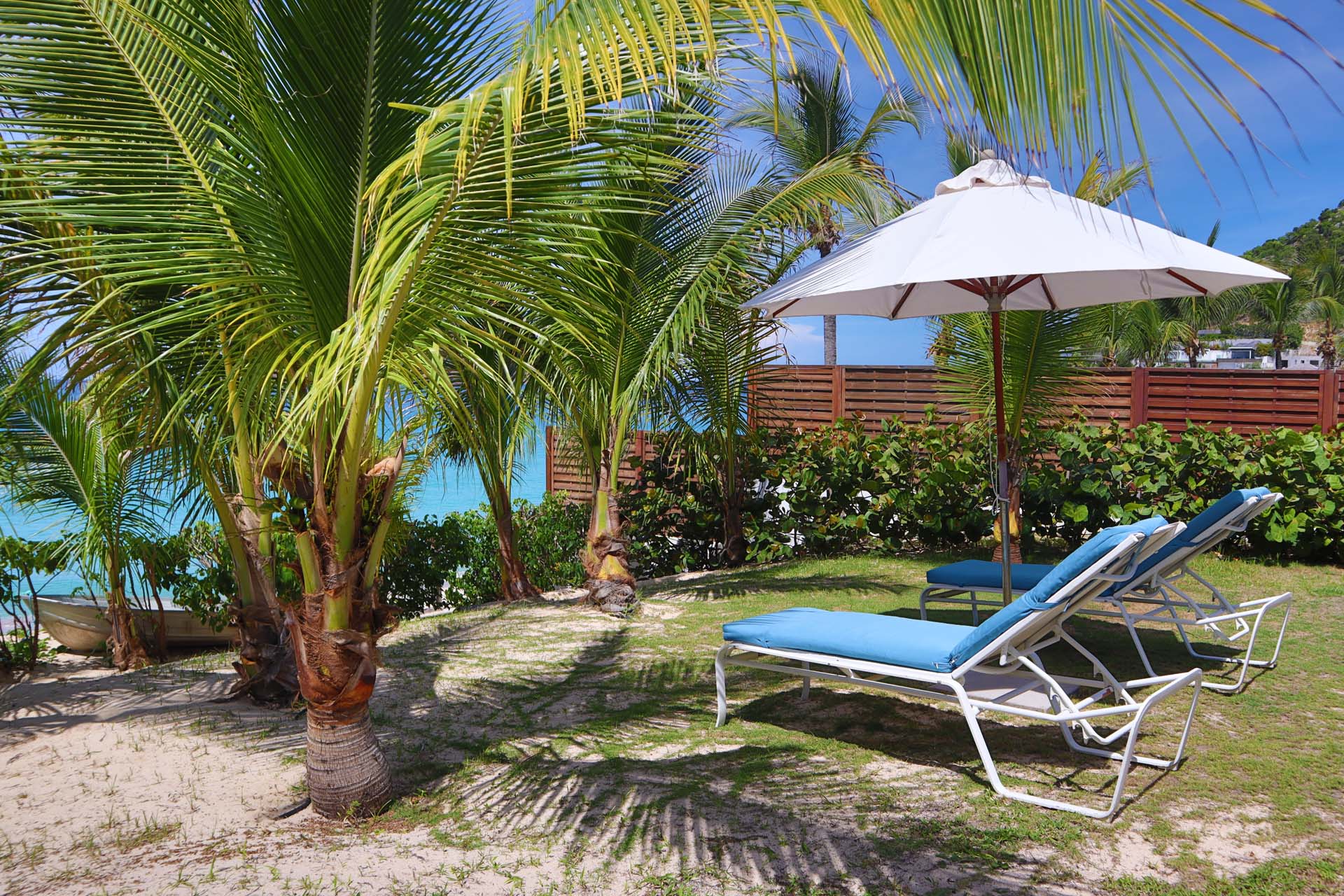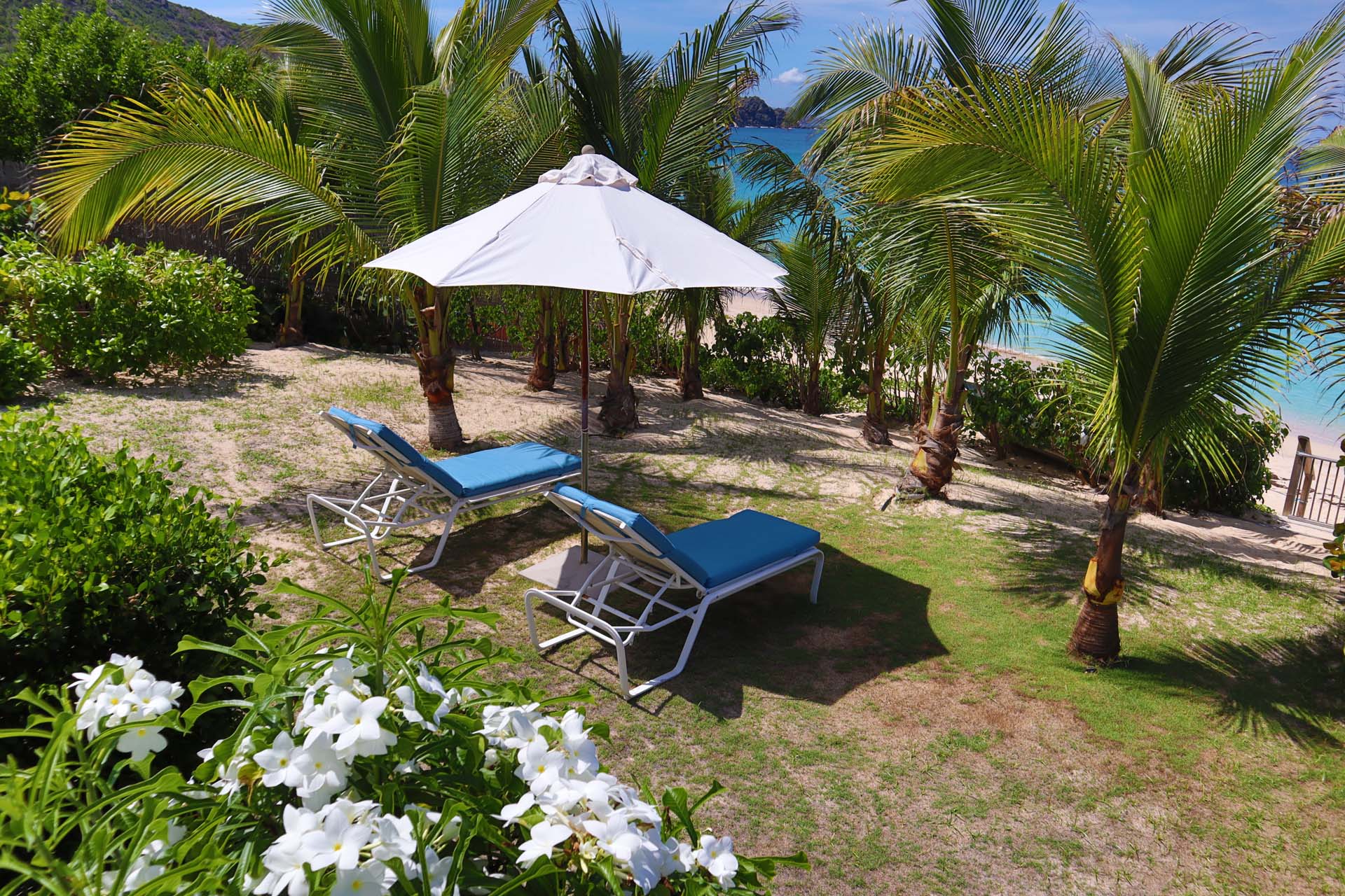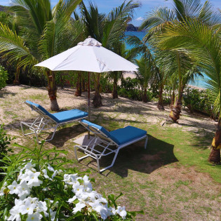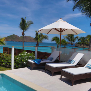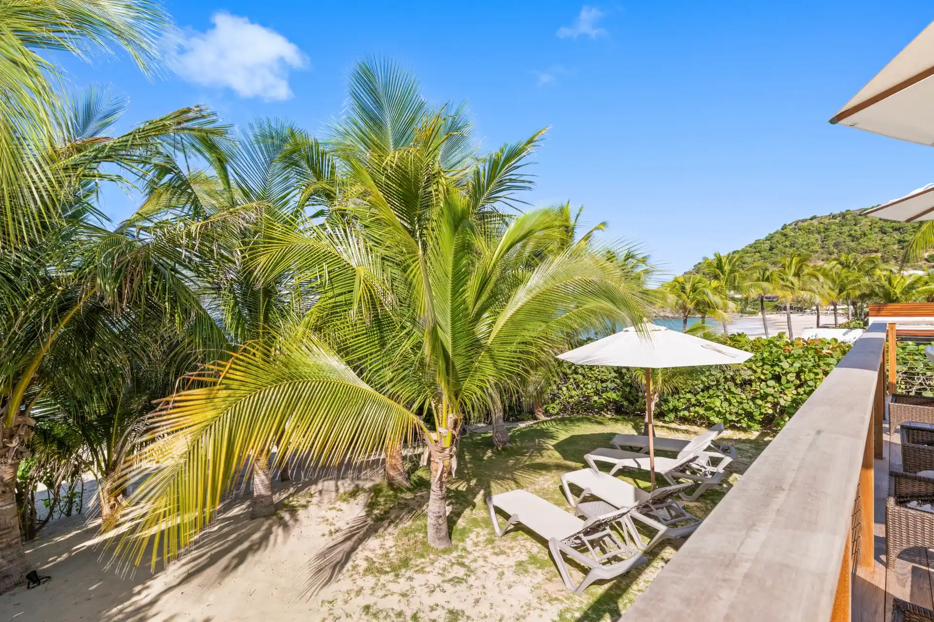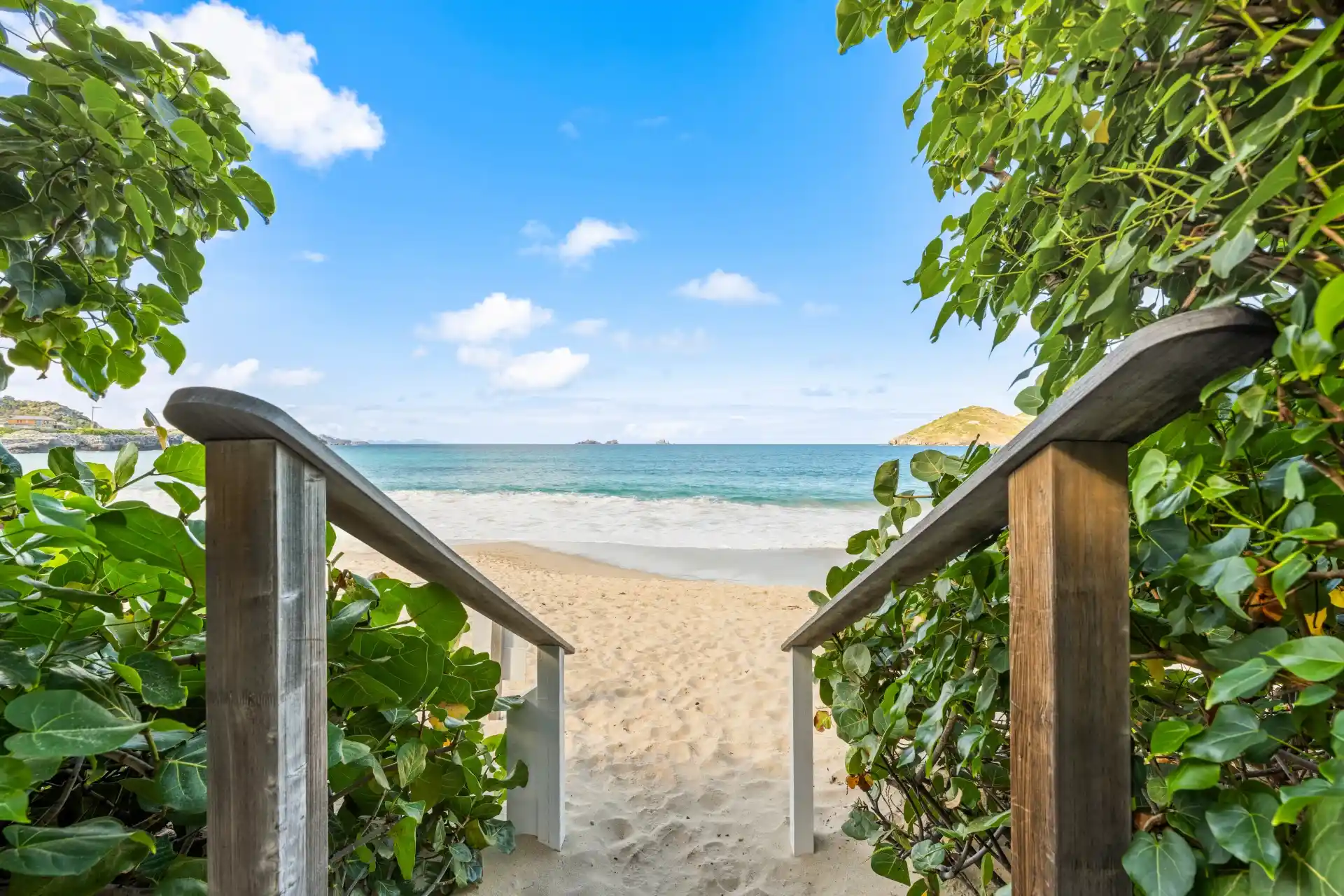 Following a sandy path from the villa delivers you directly onto Flamands Beach in seconds. A private seating area here lets you lounge about all day, enjoying the sound of the gentle tide and rustling palm trees above. As an added bonus, restaurants at Cheval Blanc and Baie des Anges are within walking distance.
