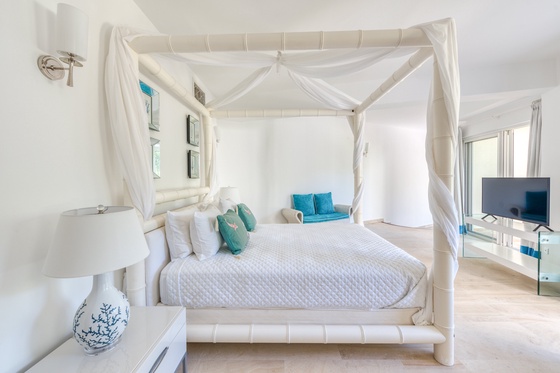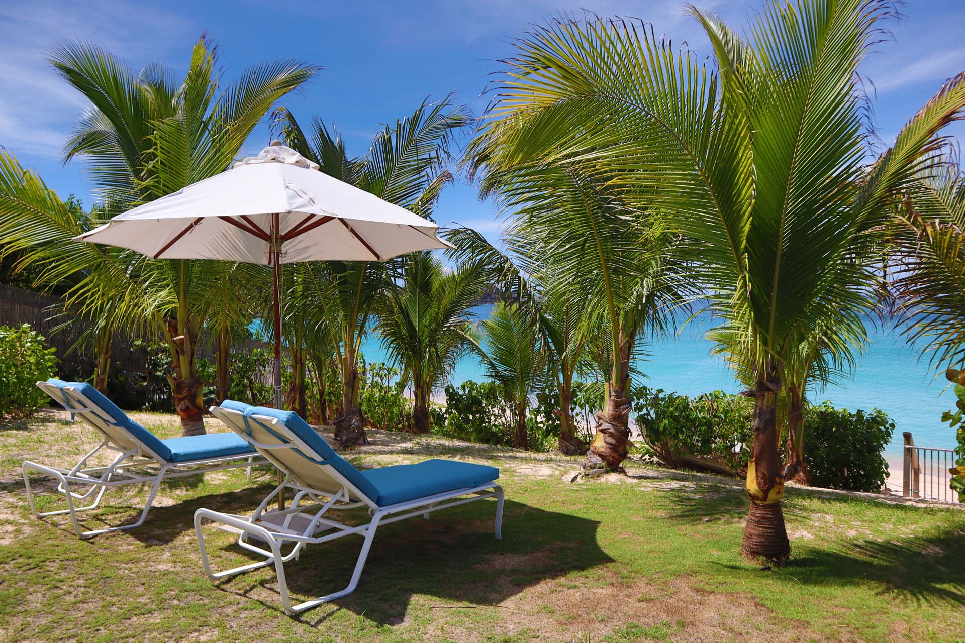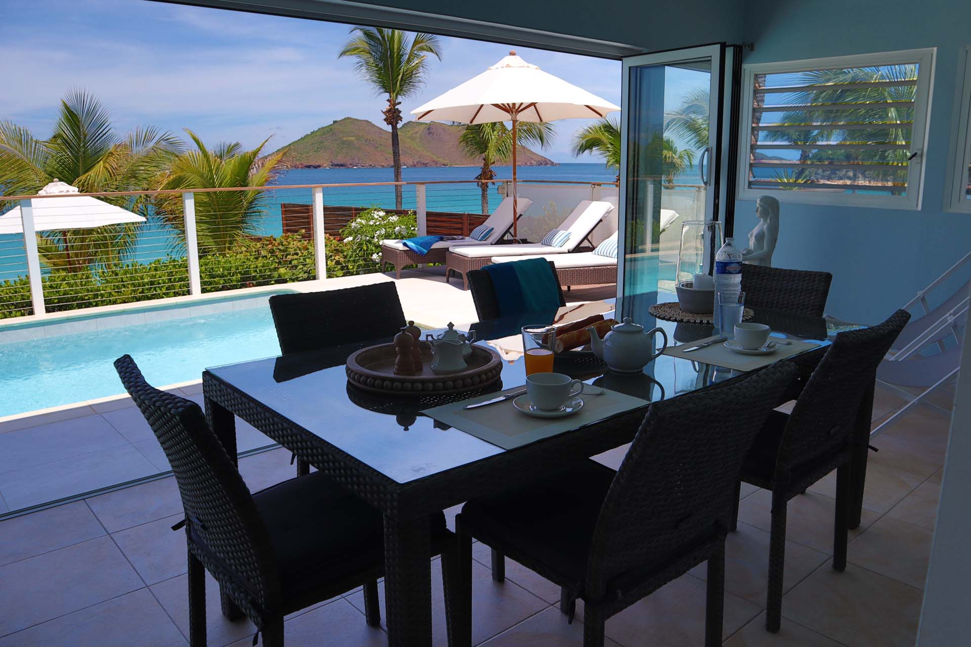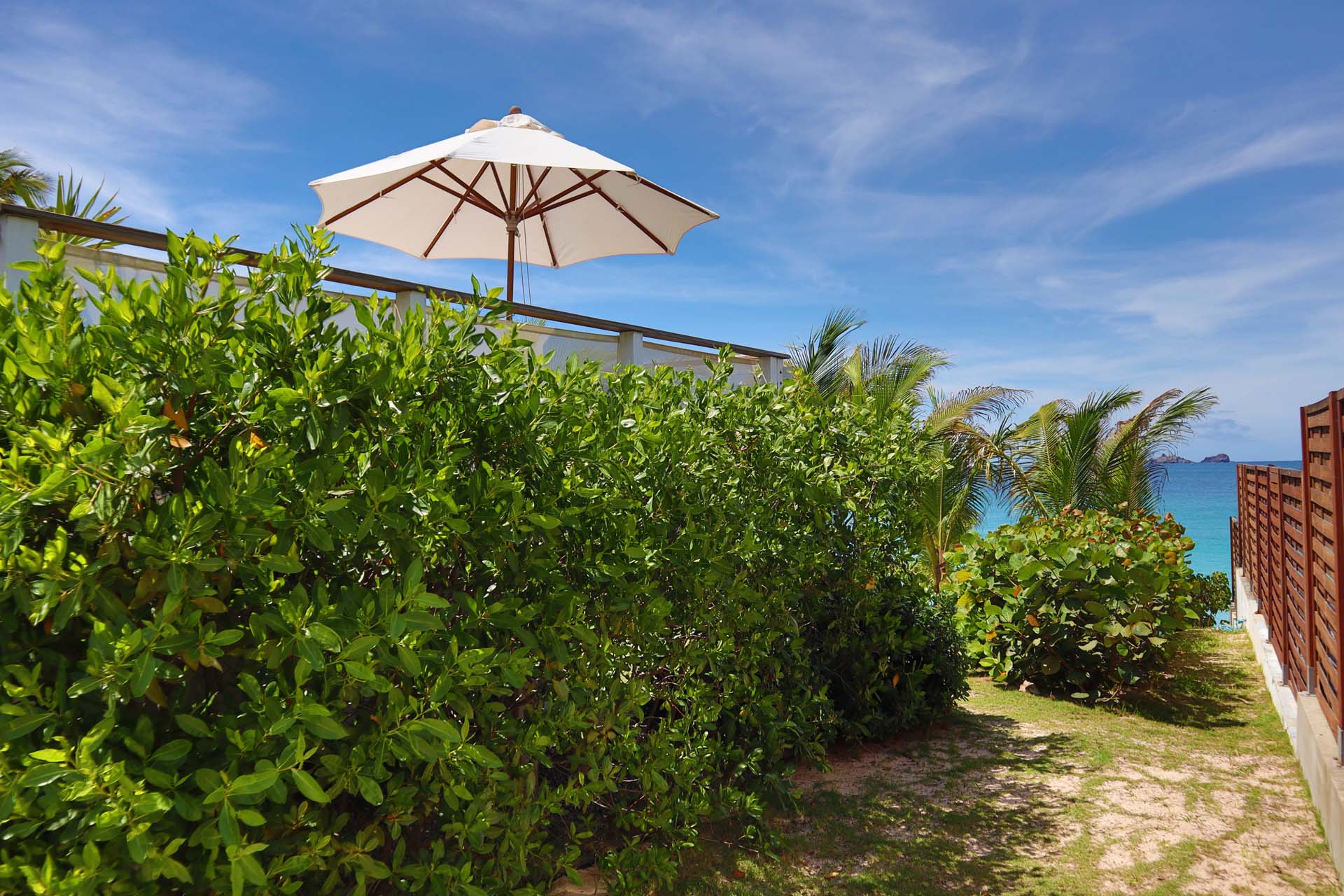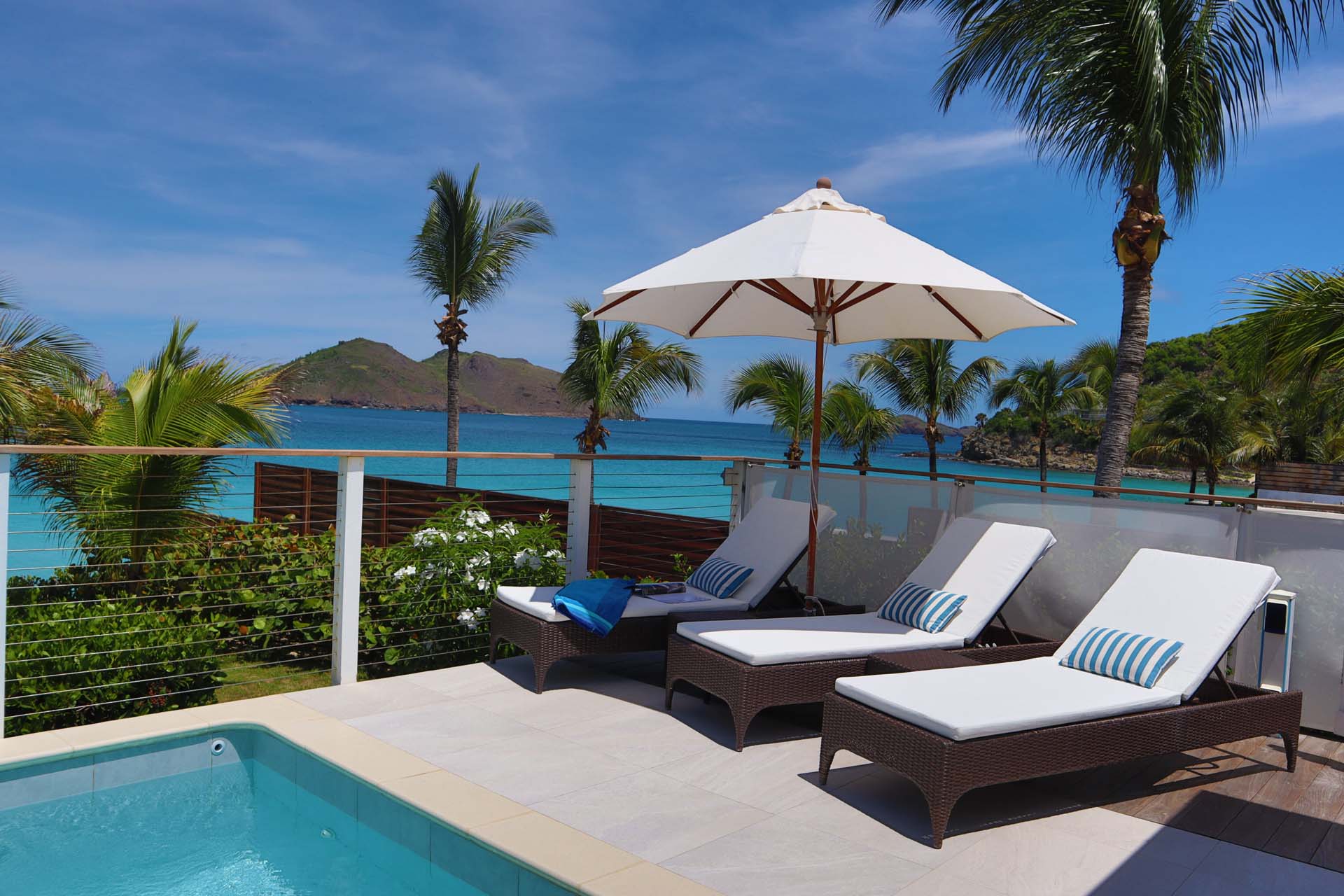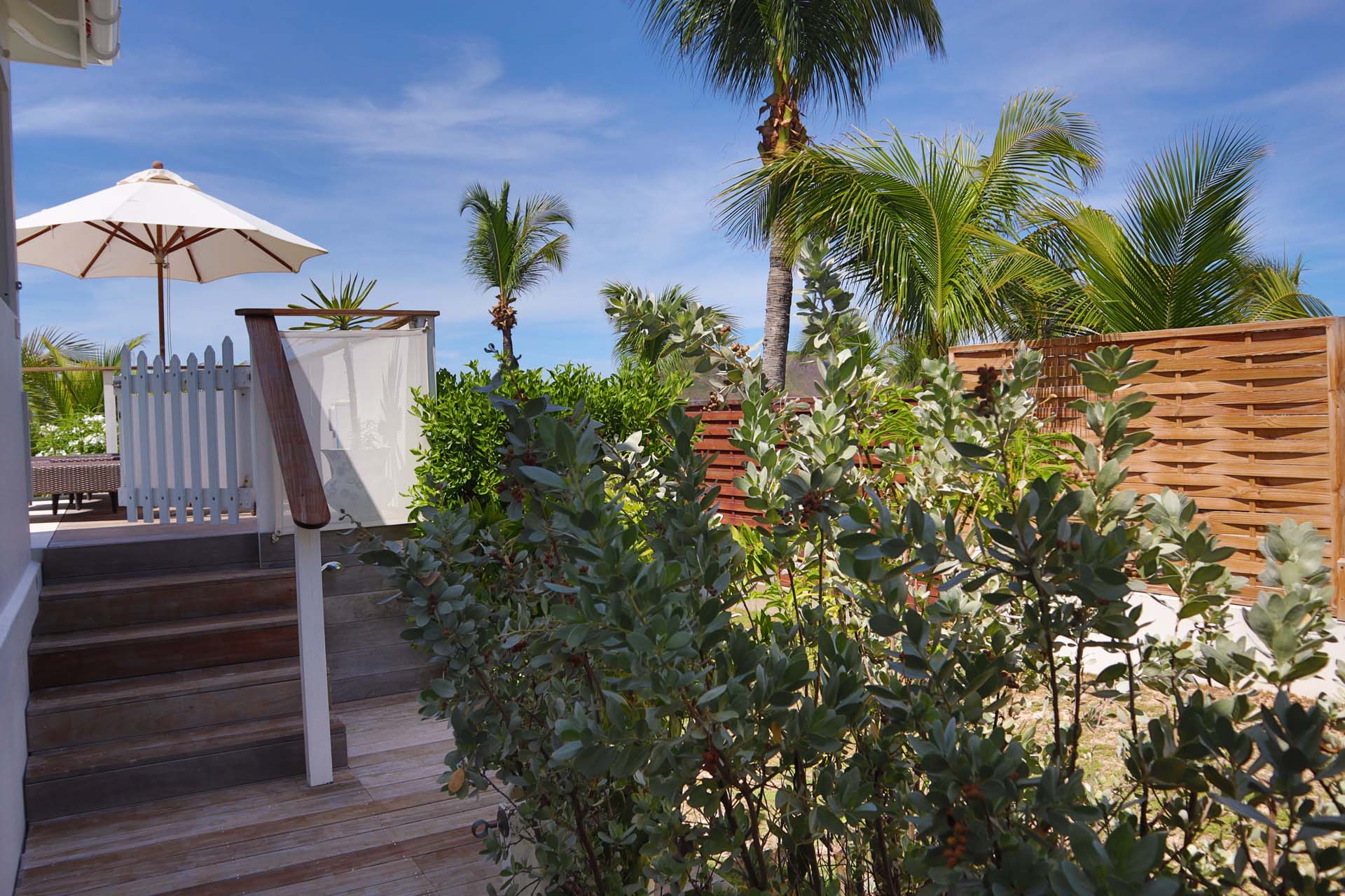 Following a sandy path from the villa delivers you directly onto Flamands Beach in seconds. A private seating area here lets you lounge about all day, enjoying the sound of the gentle tide and rustling palm trees above. As an added bonus, restaurants at Cheval Blanc and Baie des Anges are within walking distance.