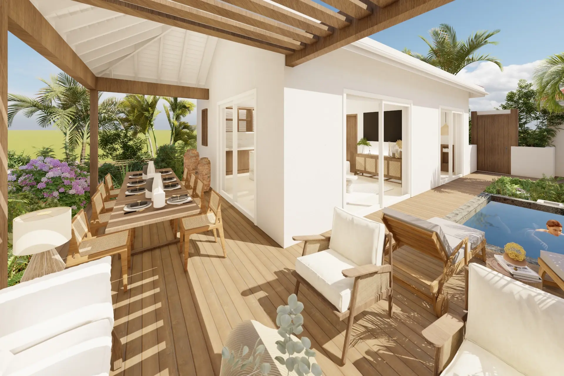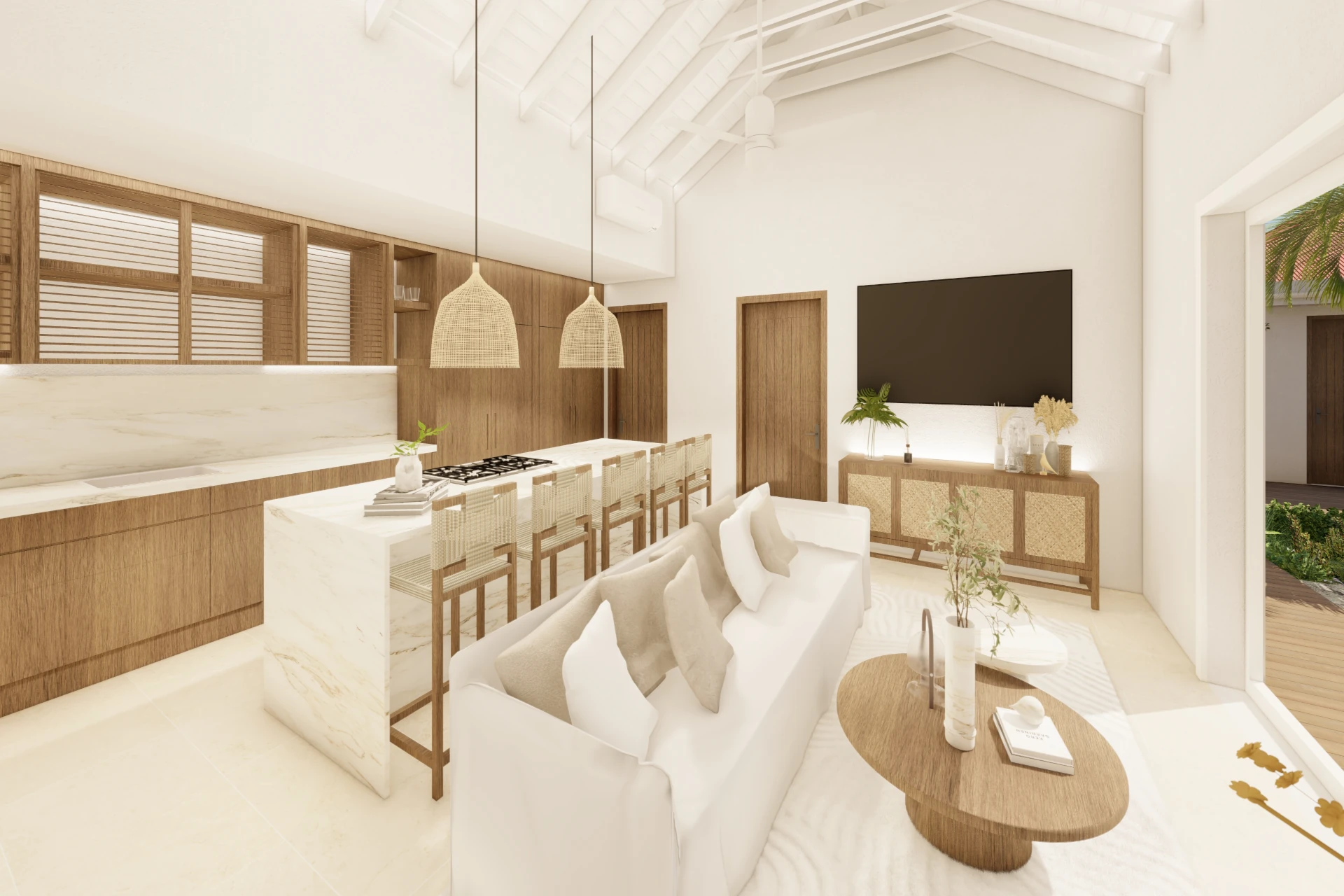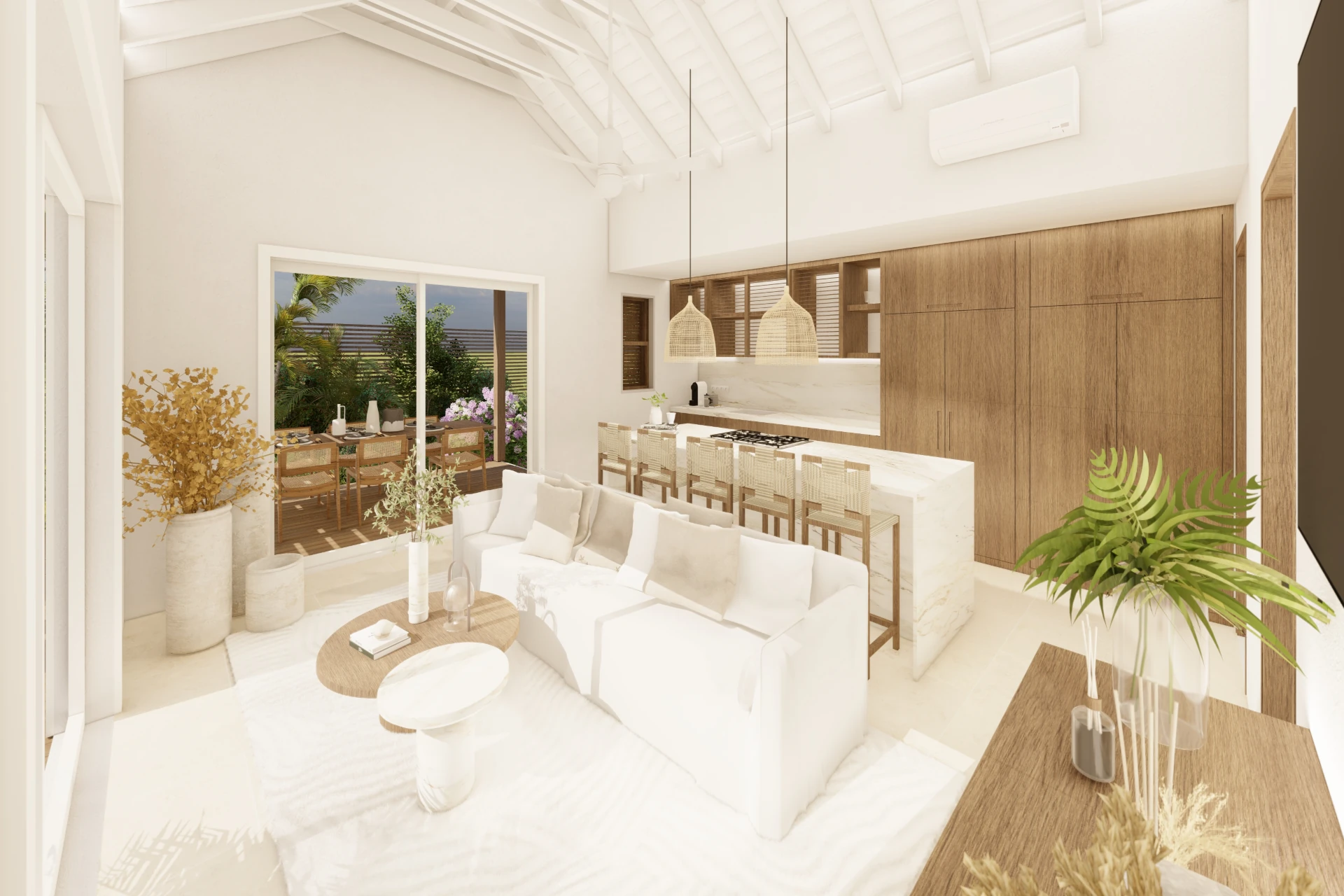 Inside, you’ll find a well-equipped kitchen and both indoor and outdoor dining areas, ideal for casual meals or relaxed evenings. For those traveling with family or friends, Villa Crystal Breez can be easily combined with the neighboring Villa Crystal Blue or the stunning 3-bedroom beachfront villa, Crystal Dream.