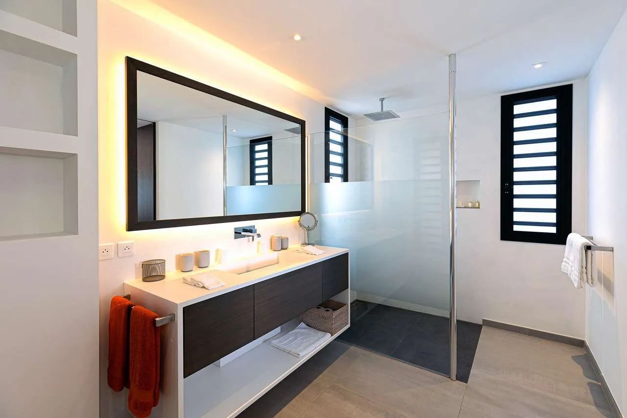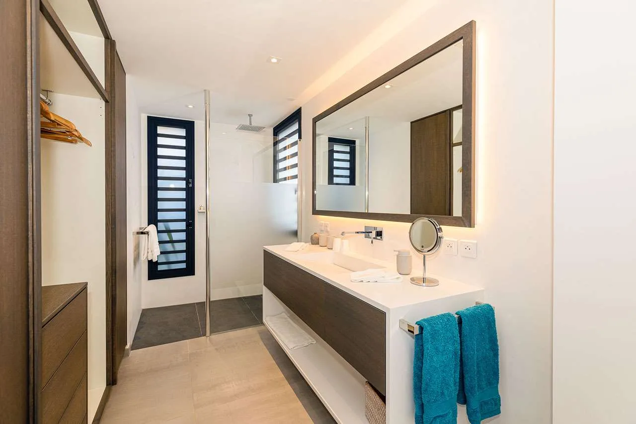 The villa is situated a short walk from the Oasis grocery store, the Choisy bakery, and of course the beach of Lorient. The villa is also just a very short drive from St. Jean and Gustavia.