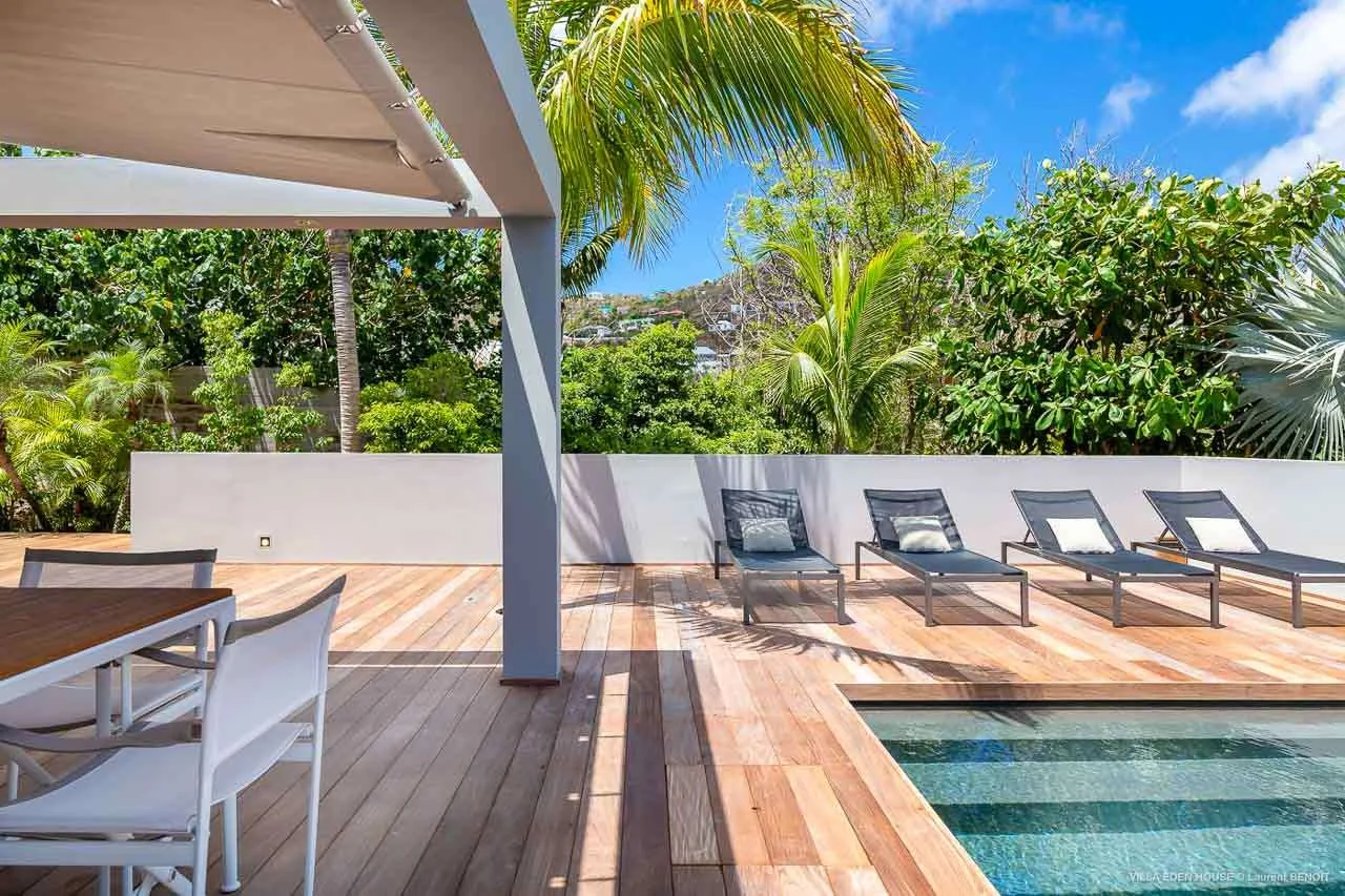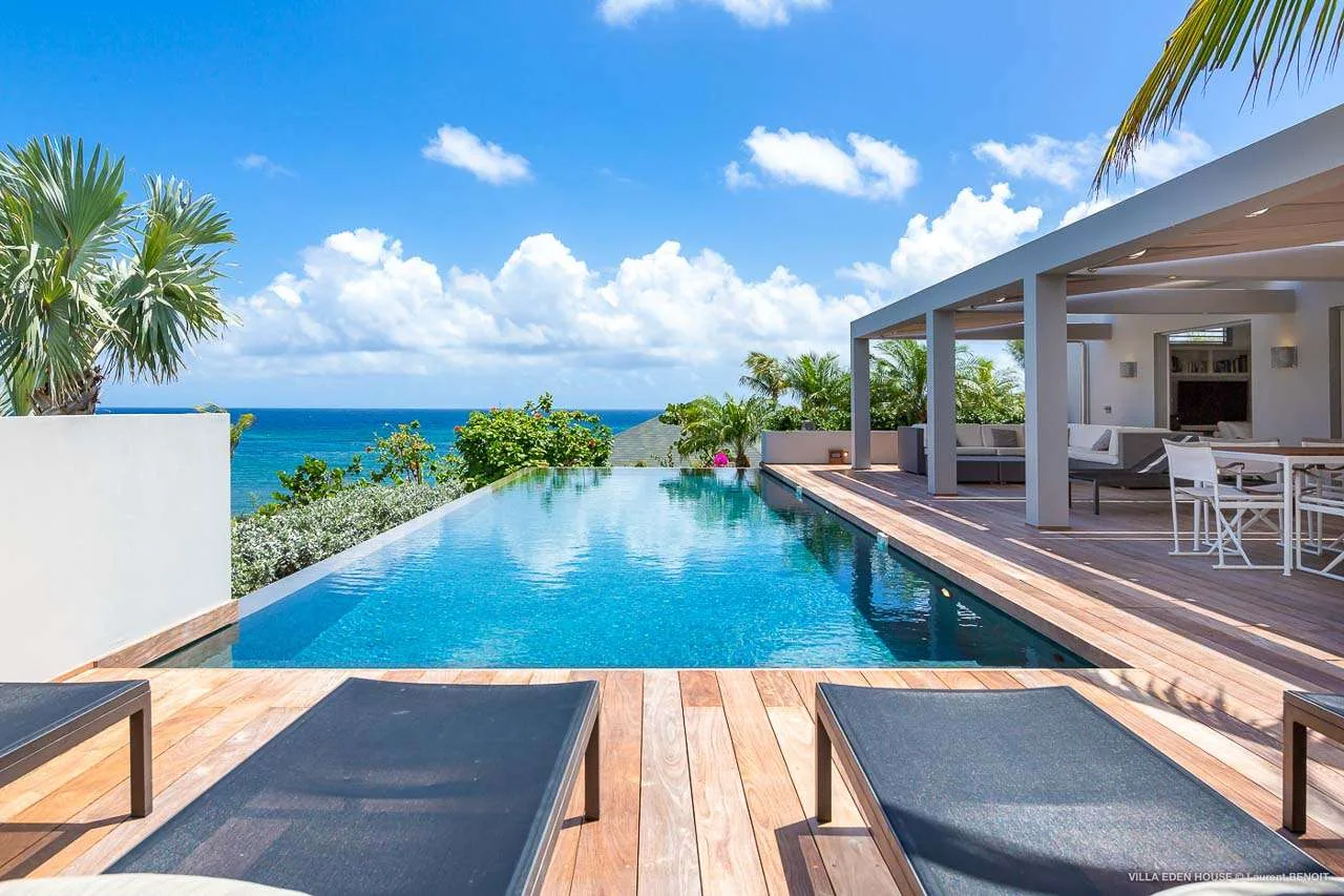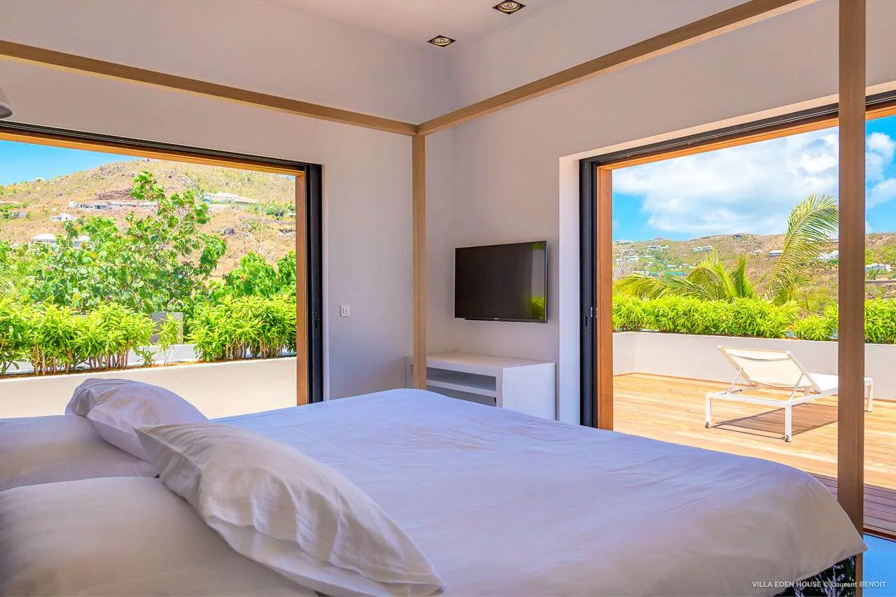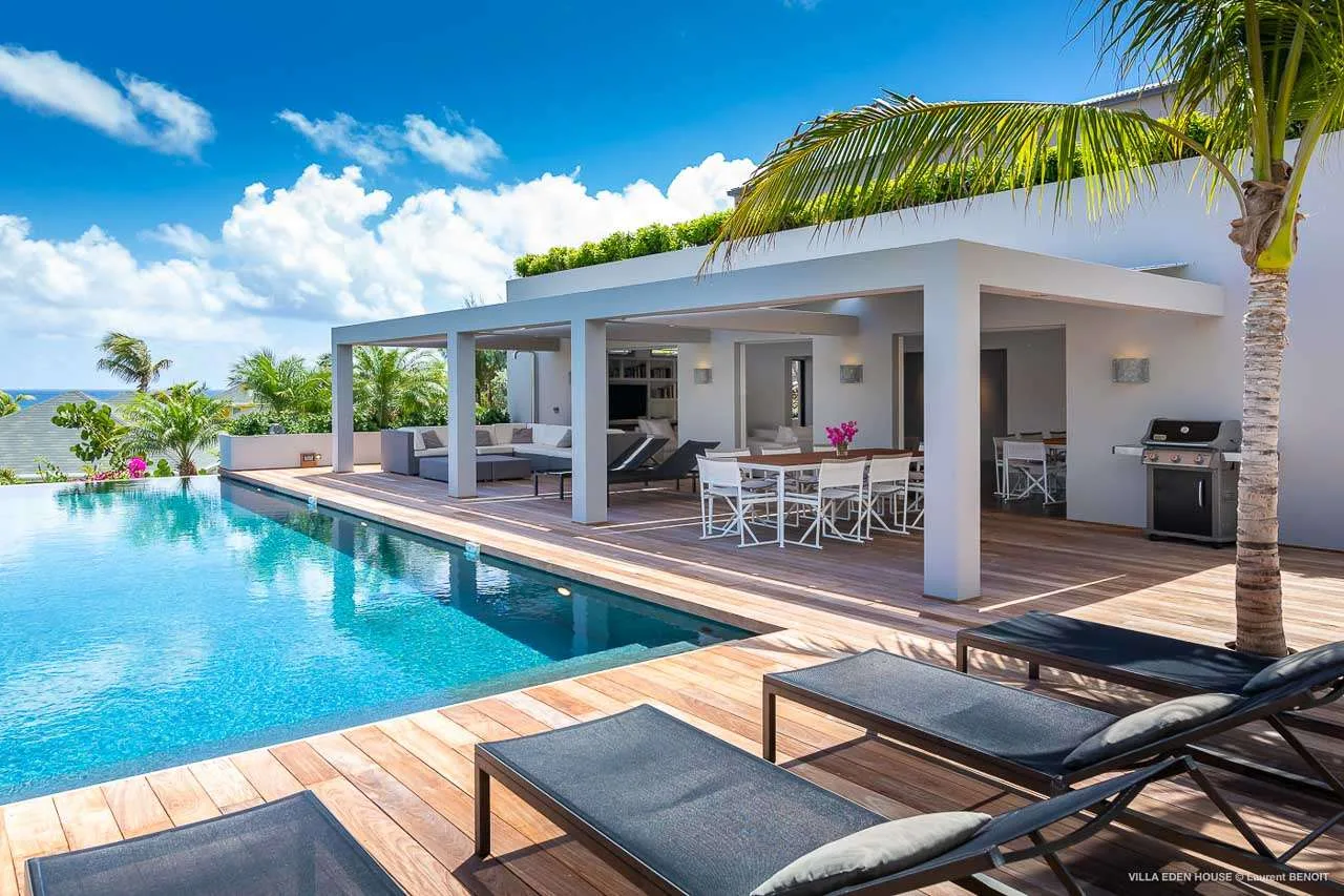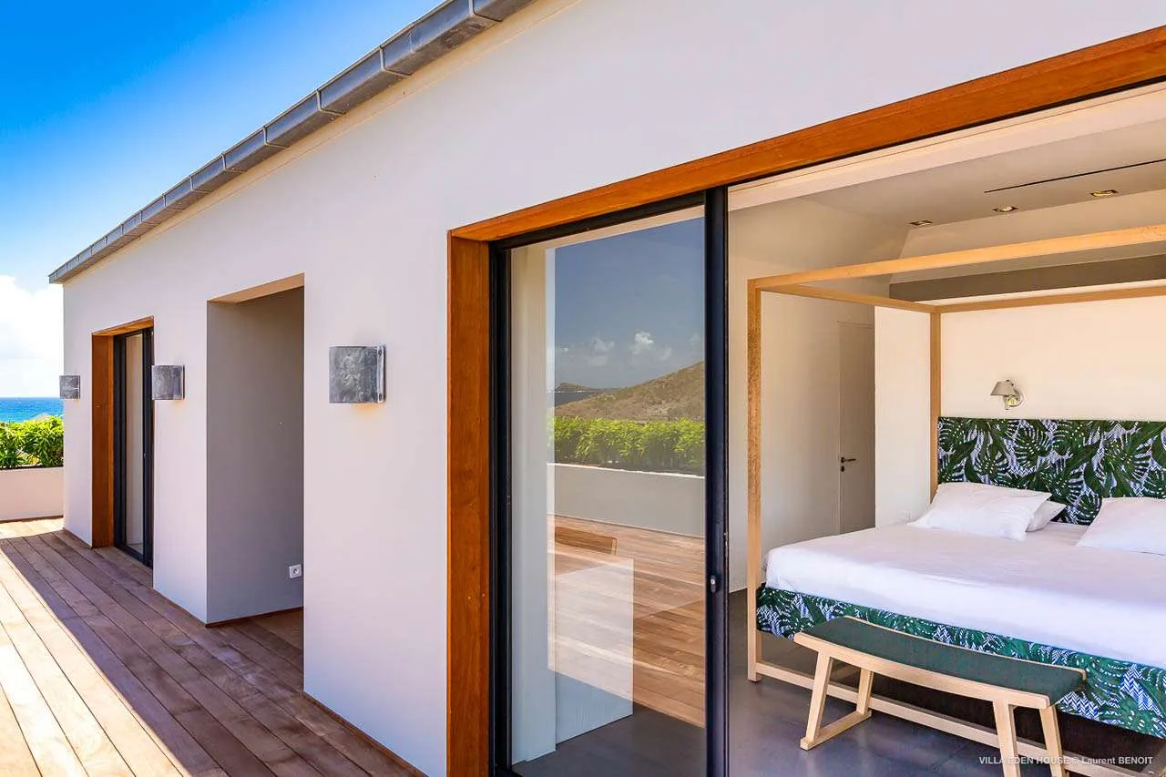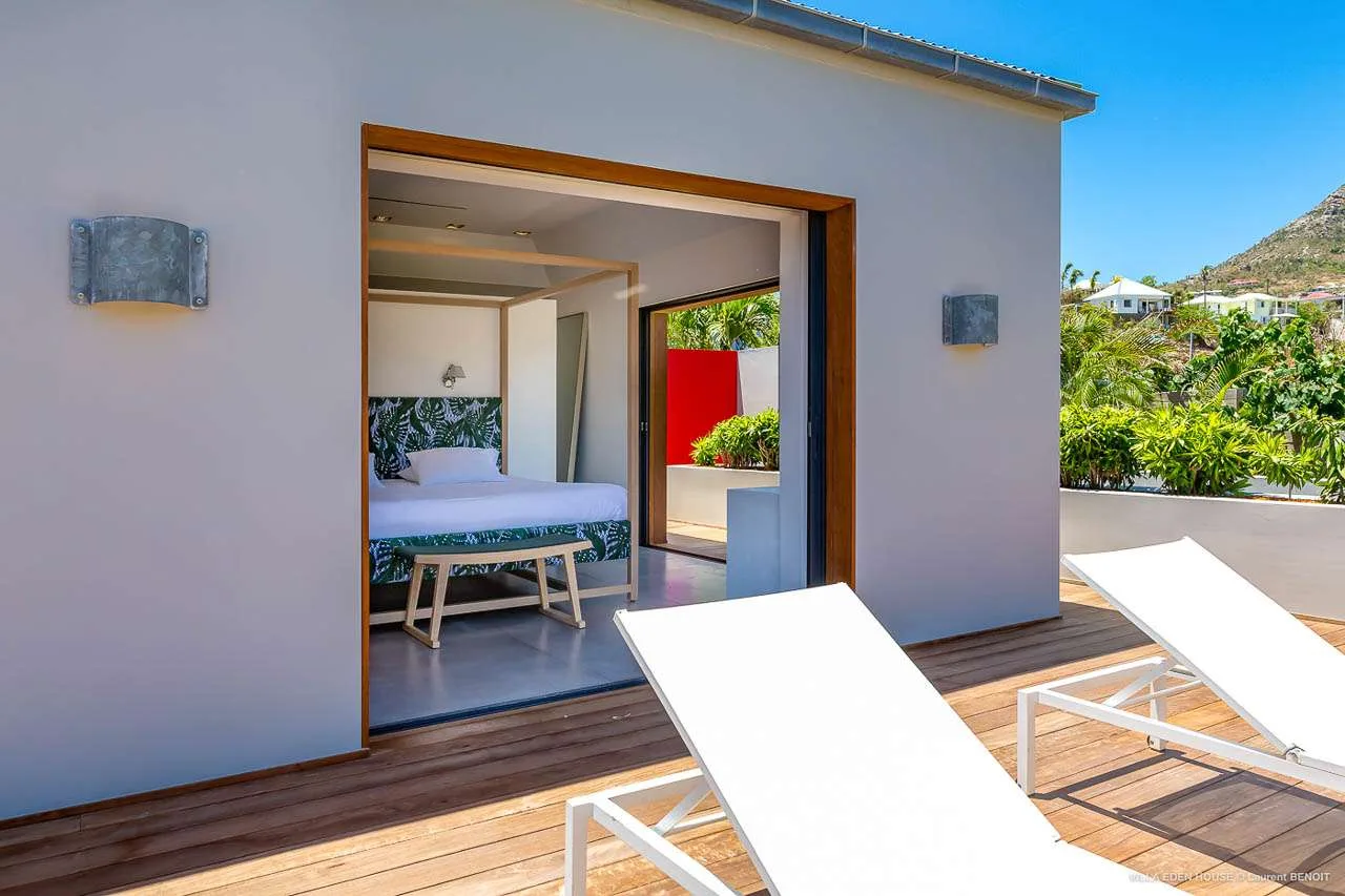 Welcome to Villa Eden House (villa code: WV GRO), an elegant 3-bedroom villa located in Marigot, St. Barts. With a minimalist style, clean-cut lines, and angles, this gorgeous island home is within a short walk to the beach and minutes from shopping.