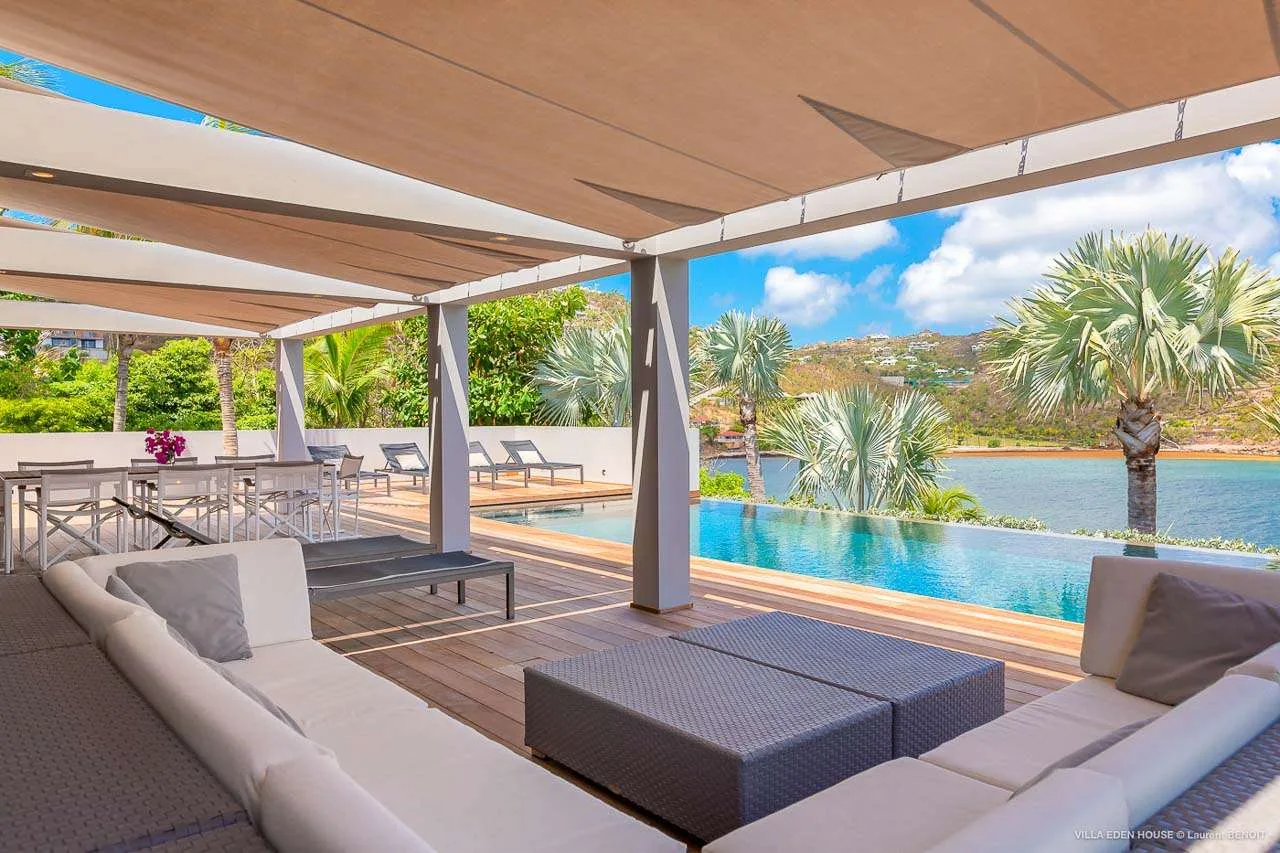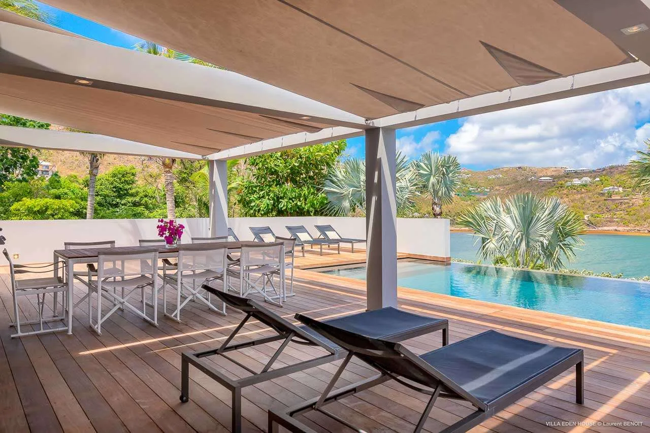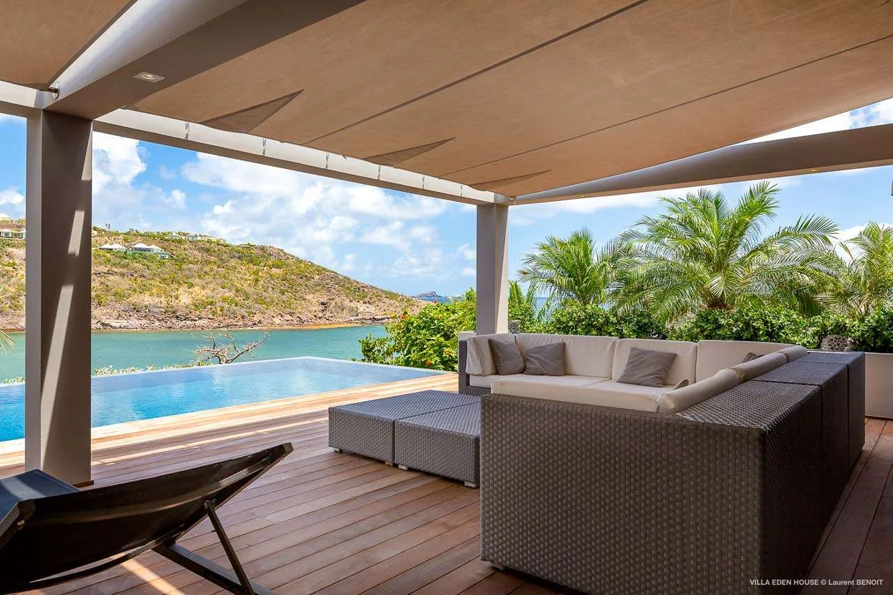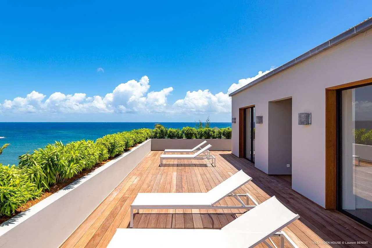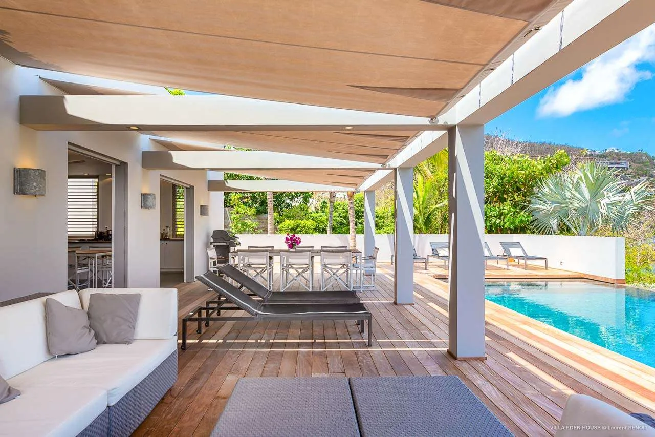 Welcome to Villa Eden House (villa code: WV GRO), an elegant 3-bedroom villa located in Marigot, St. Barts. With a minimalist style, clean-cut lines, and angles, this gorgeous island home is within a short walk to the beach and minutes from shopping.