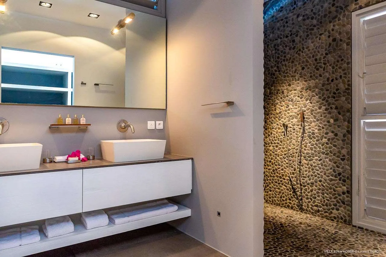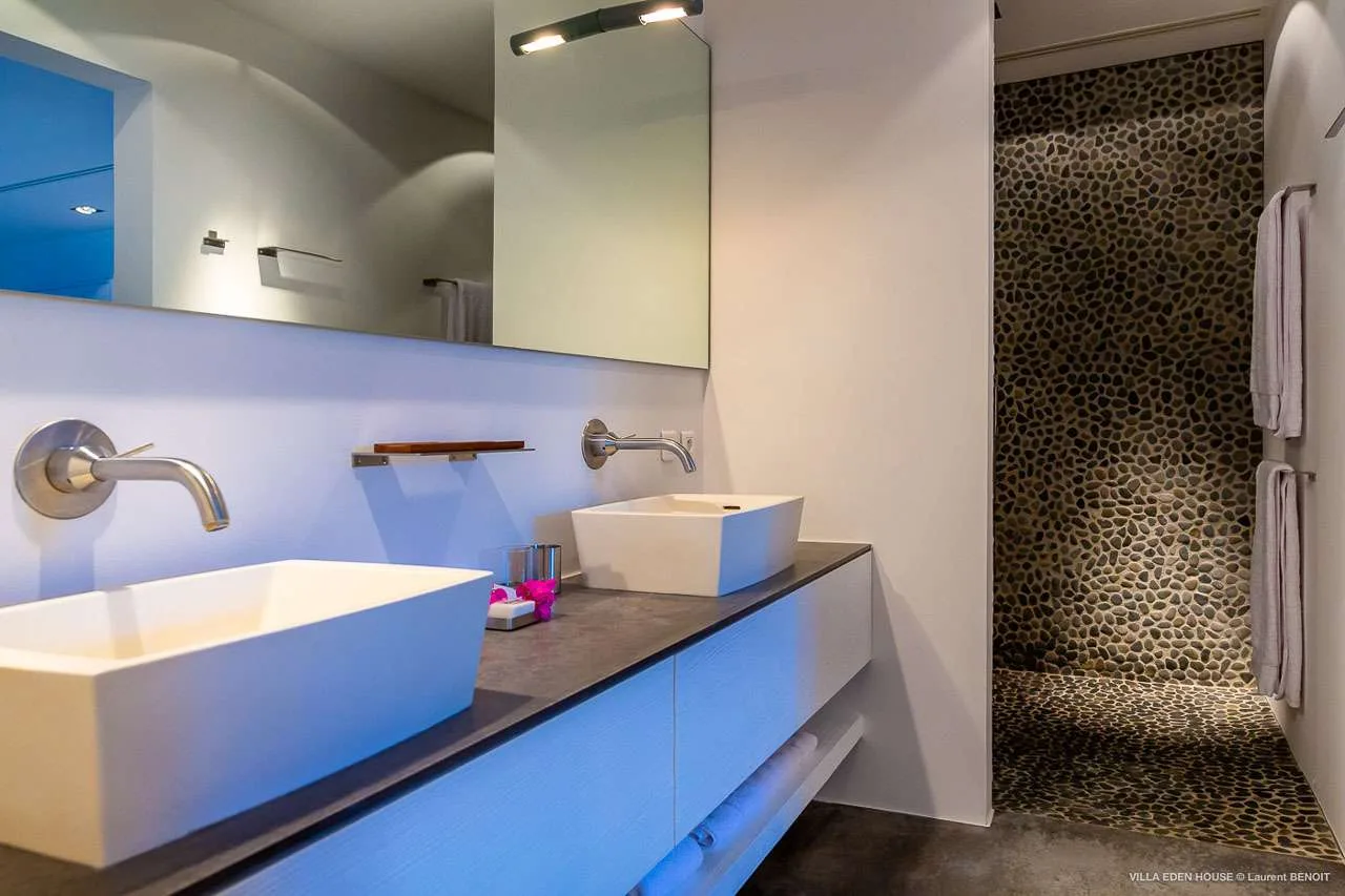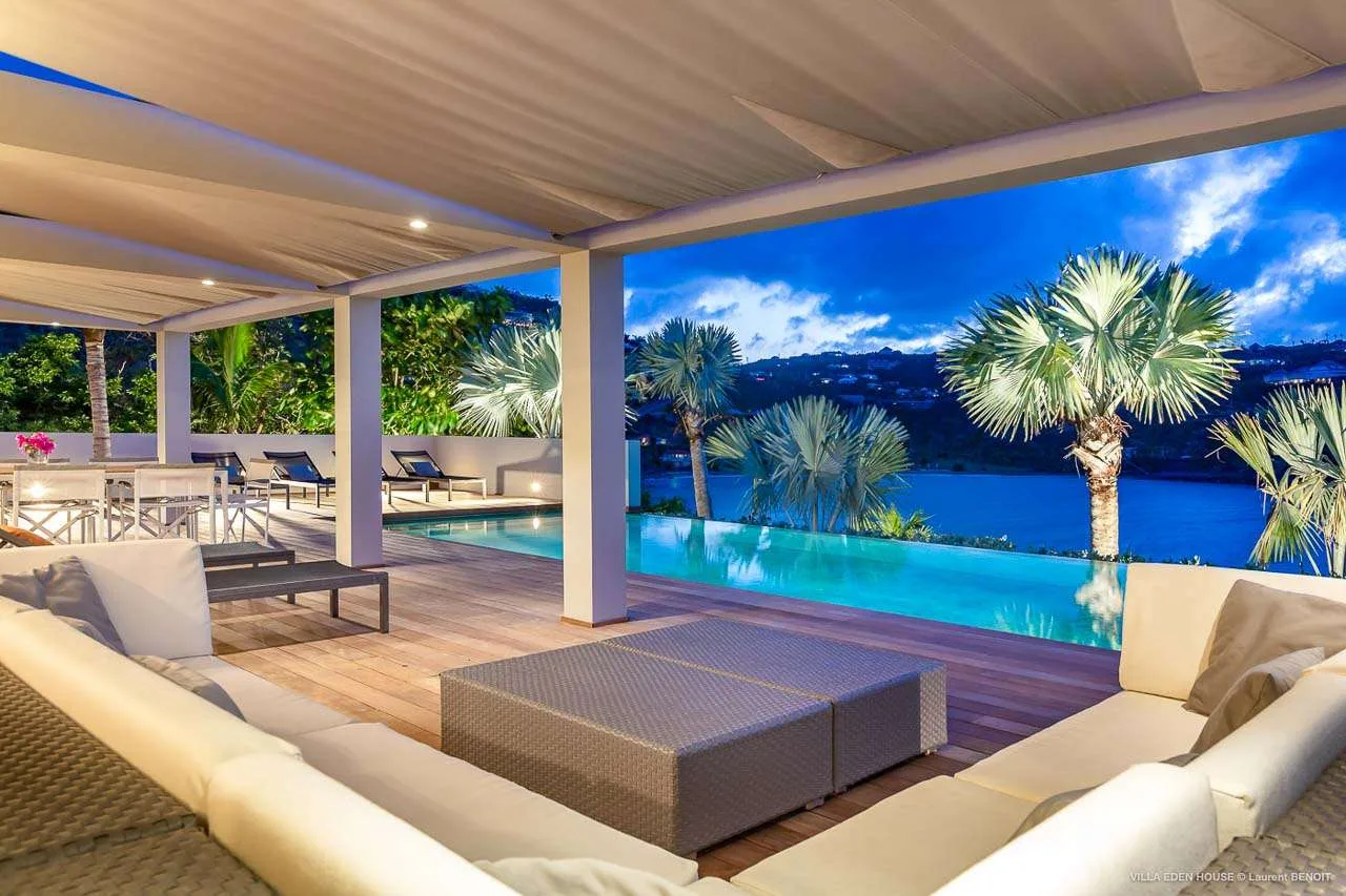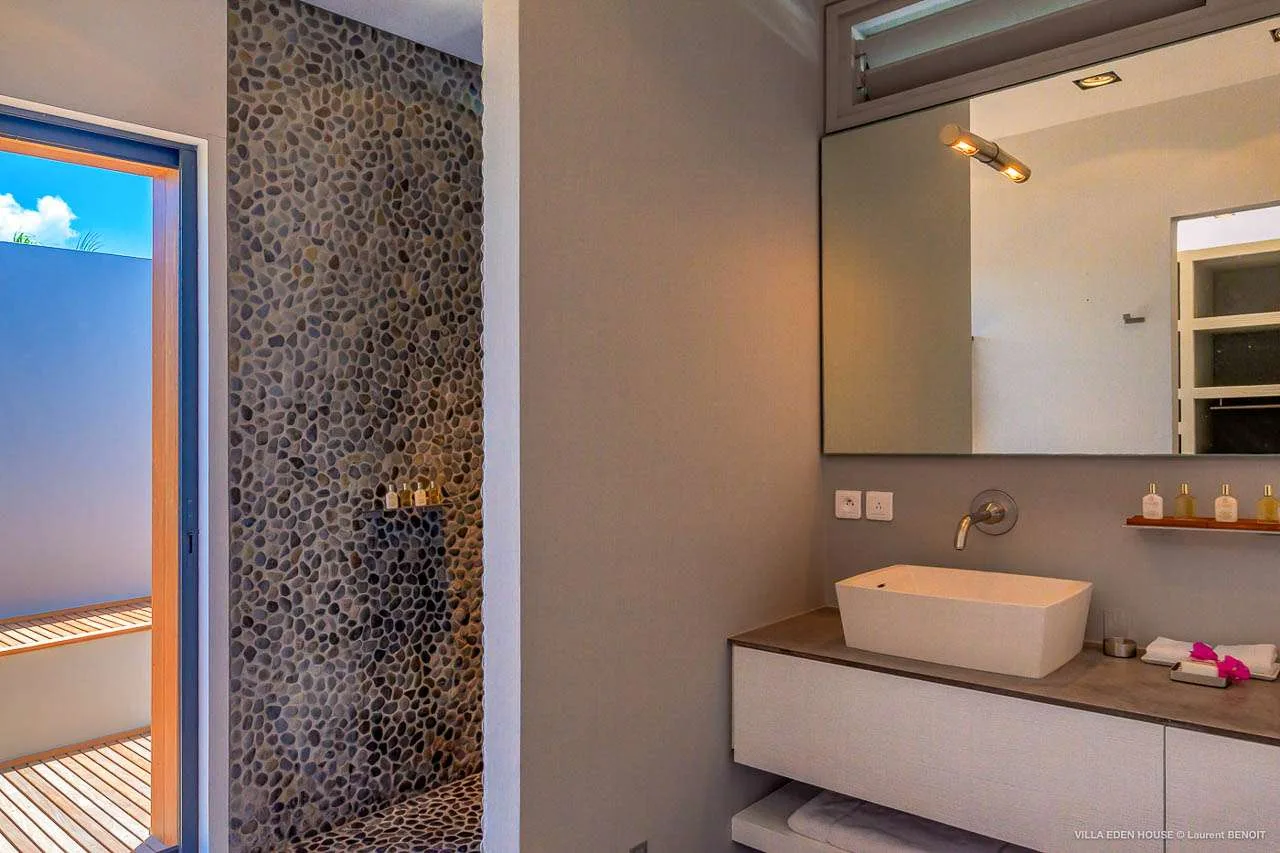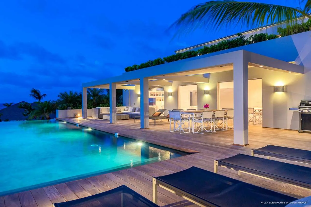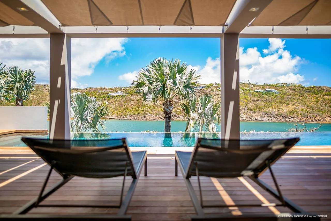 Welcome to Villa Eden House (villa code: WV GRO), an elegant 3-bedroom villa located in Marigot, St. Barts. With a minimalist style, clean-cut lines, and angles, this gorgeous island home is within a short walk to the beach and minutes from shopping.