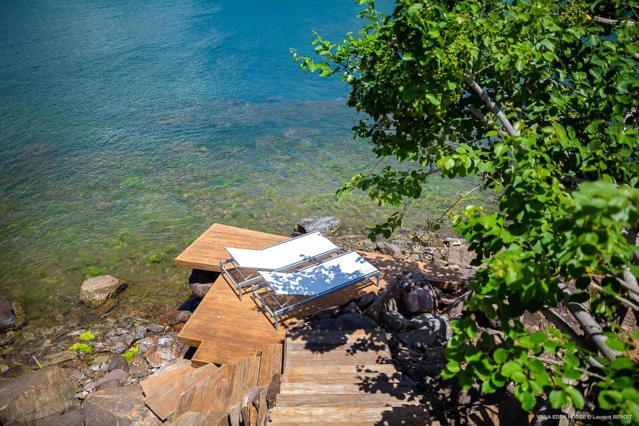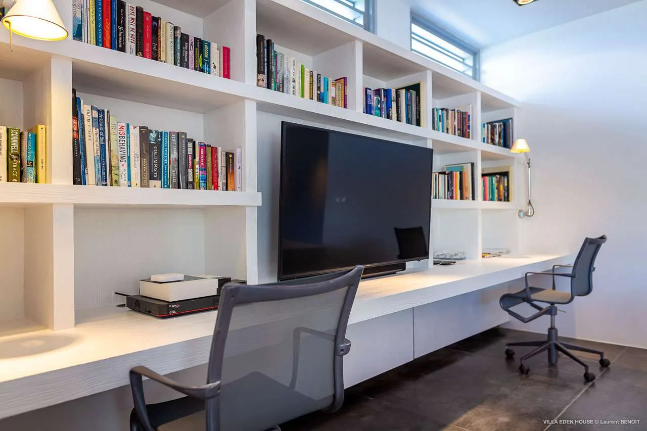 Gourmet island dinners can be hosted inside Villa Eden House, at the Italian designer table. There’s a matching table on the shaded terrace outside as well, letting you dine while appreciating how the villa’s bold design melts into the surrounding landscapes.