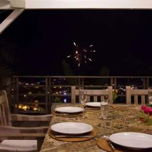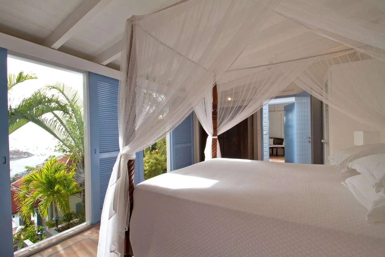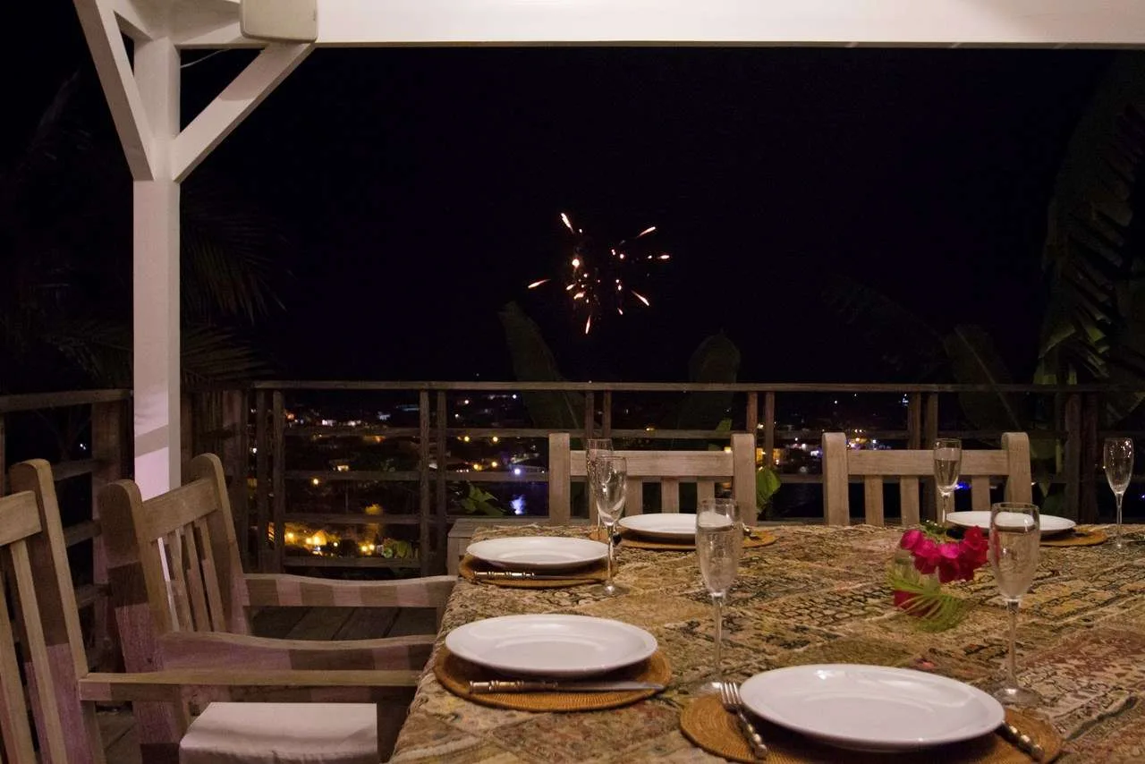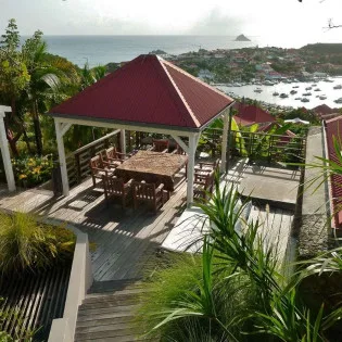 When it’s time to dine, all that’s left to do is to choose where. An indoor dining area next to the kitchen is a fantastic choice, while outside a dining gazebo offers a chance for open-air meals. Enjoying dinner with the twinkling lights of Gustavia Harbor below is a fabulous way to make the most of your vacation.