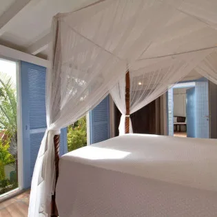 Four more bedrooms are located on the lower level (approximately 44 steps). Two bedrooms have double beds while the third has twin beds. These bedrooms feature their own furnished terrace overlooking the Caribbean. The fourth room has 6 twin beds, a great option for kids.