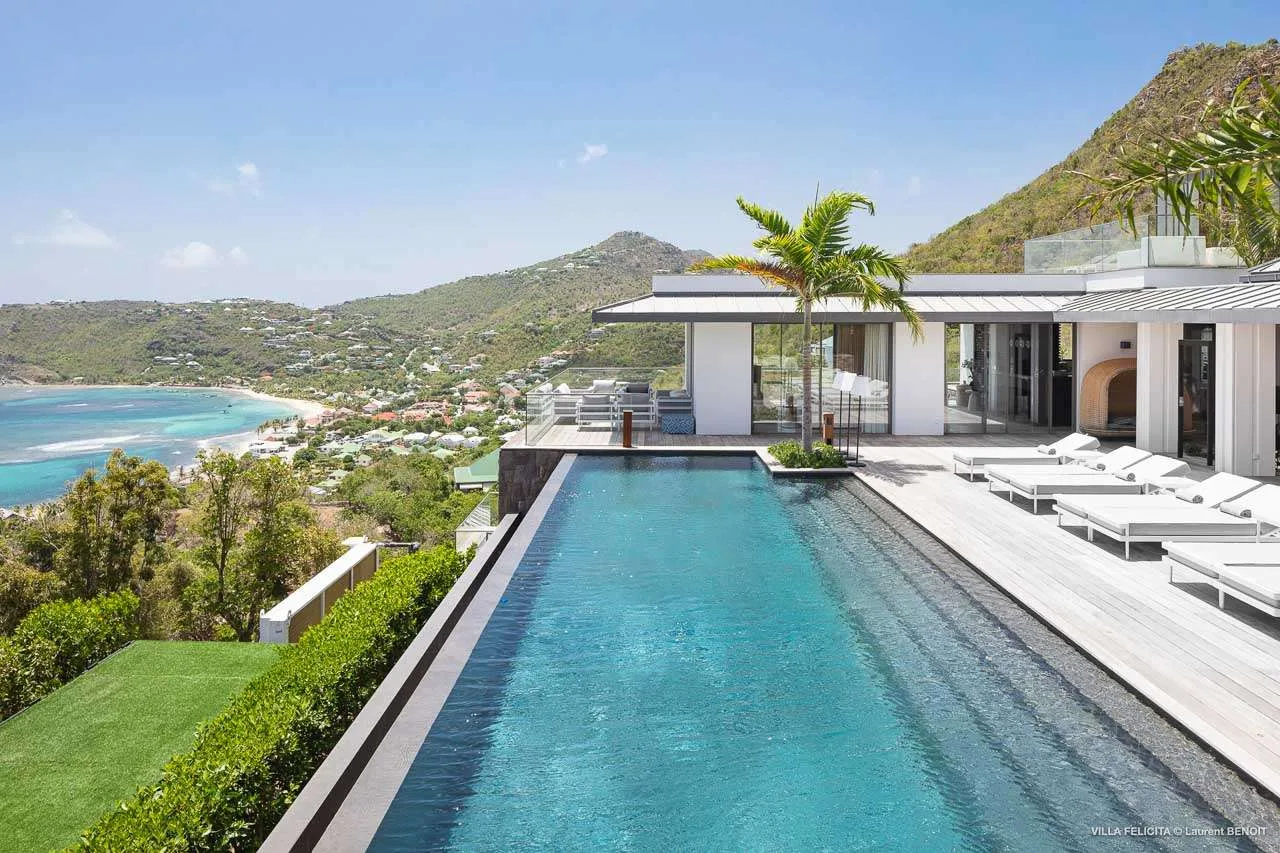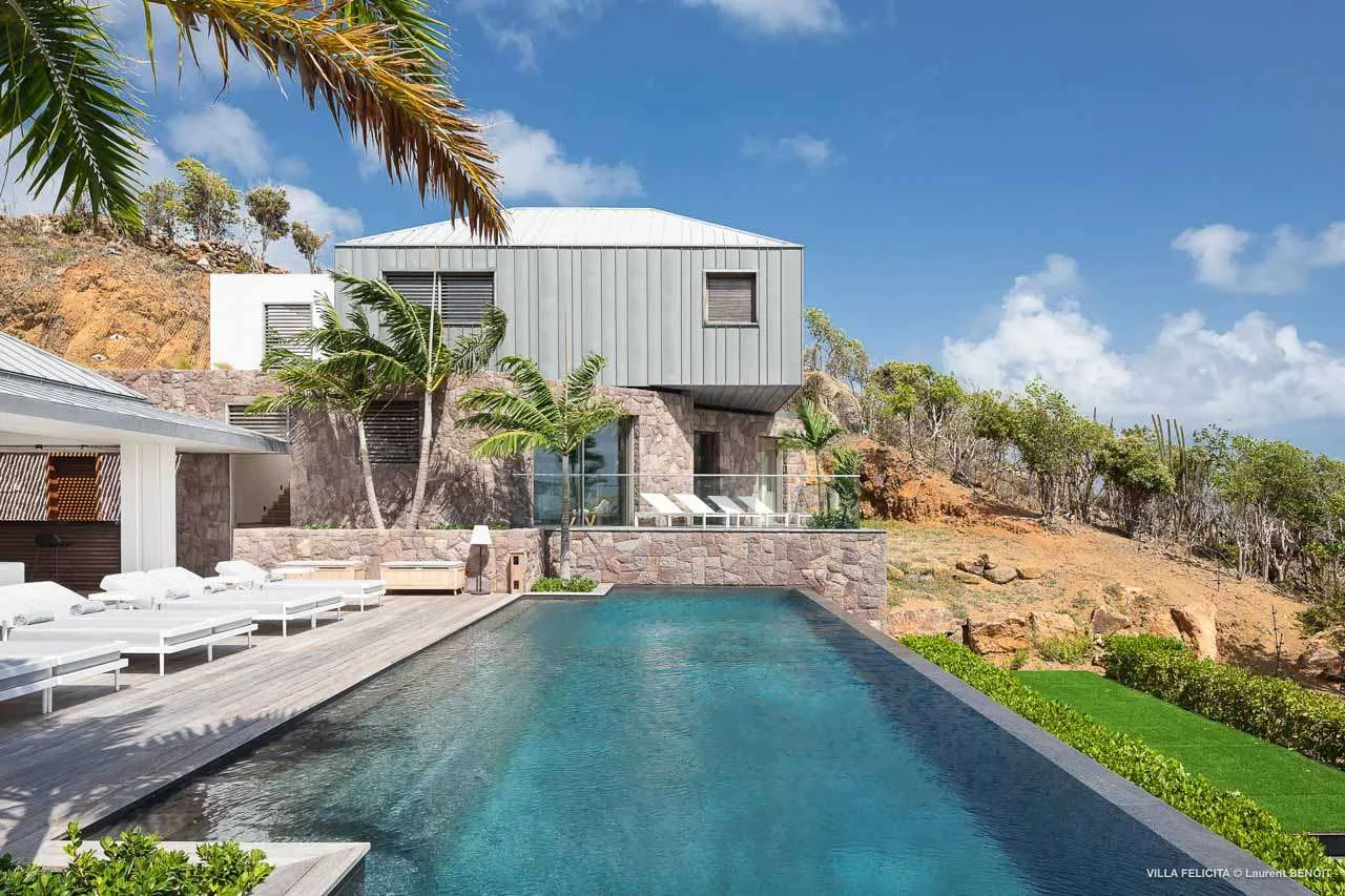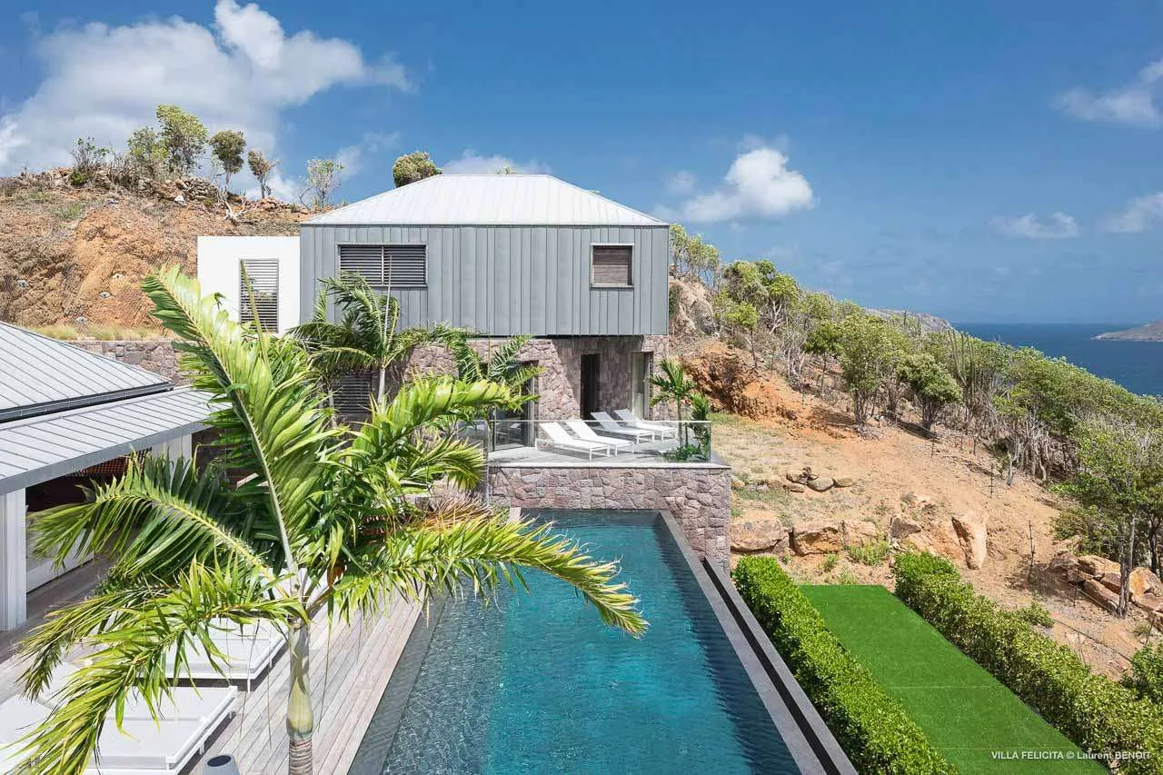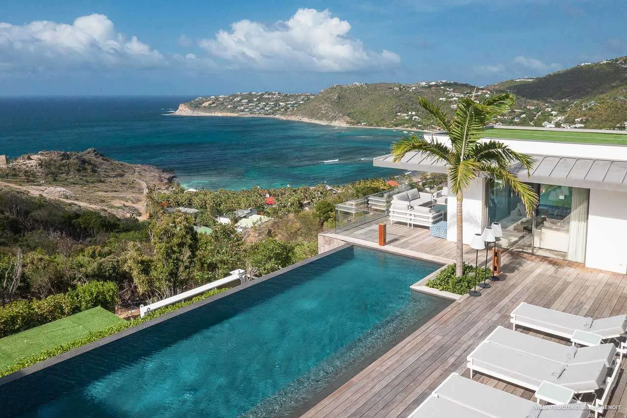 Villa Felicita, (villa code: WV FEL), is a large, newly-built 5 + 2-bedroom villa with gorgeous views of Lorient Bay and the ocean beyond.