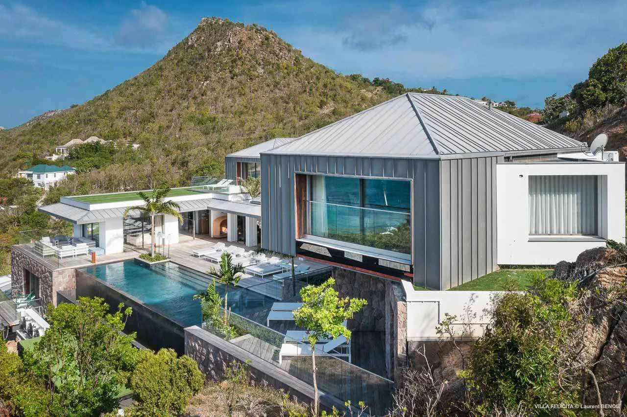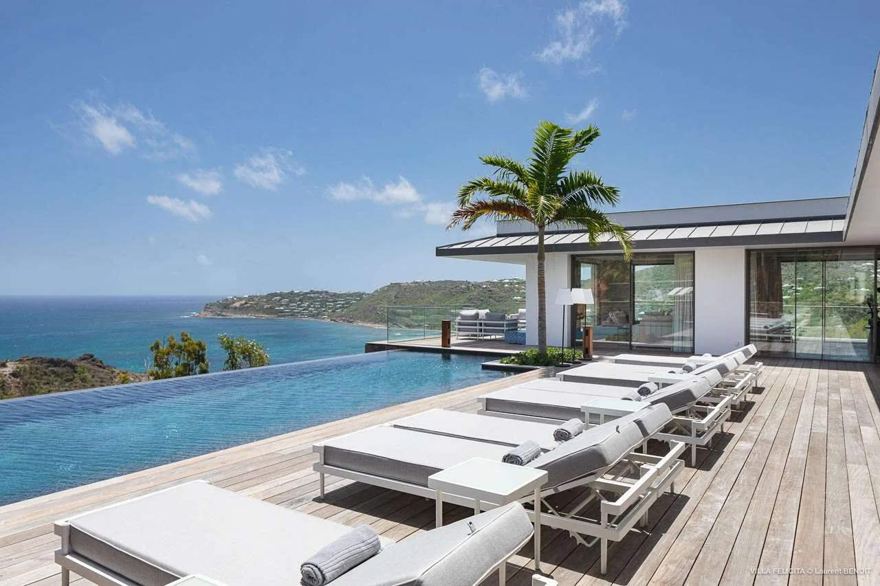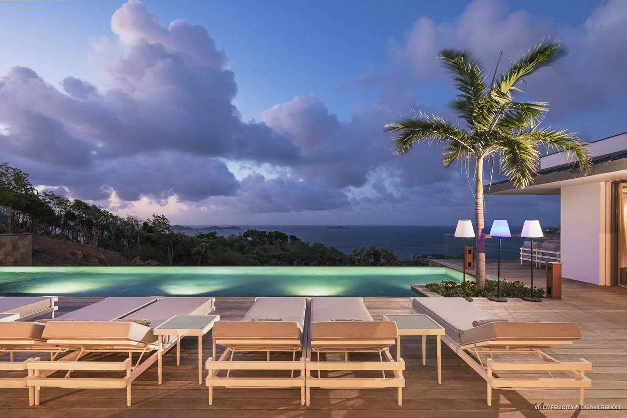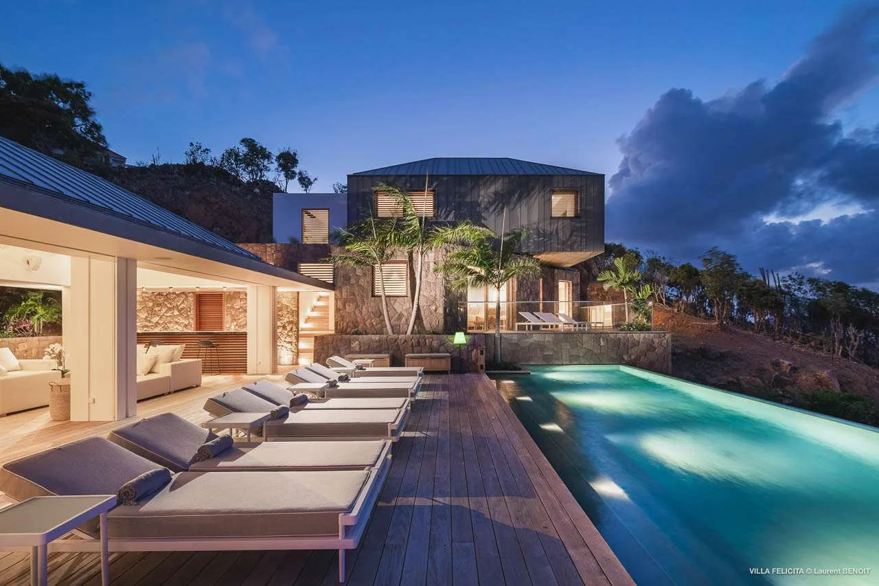 Villa Felicita, (villa code: WV FEL), is a large, newly-built 5 + 2-bedroom villa with gorgeous views of Lorient Bay and the ocean beyond.