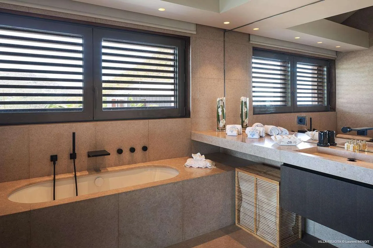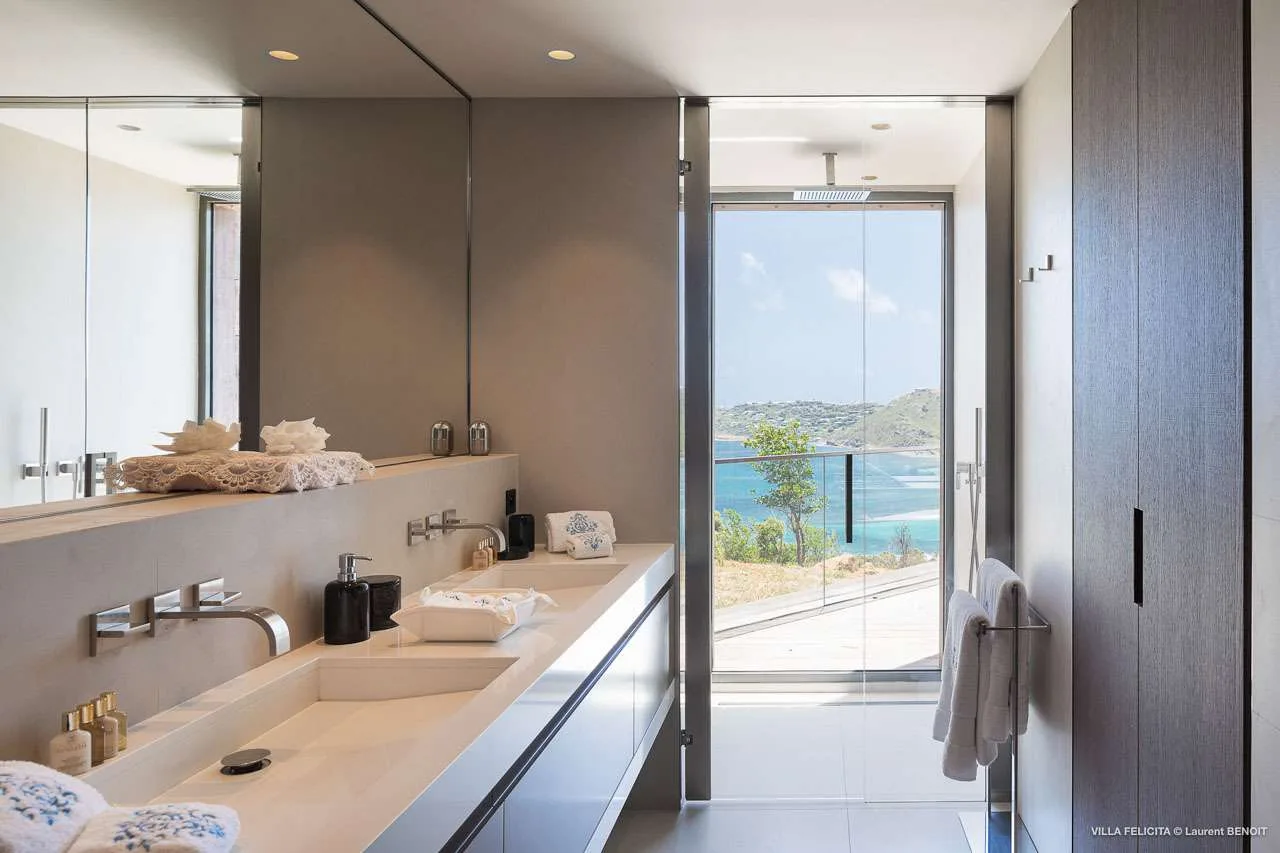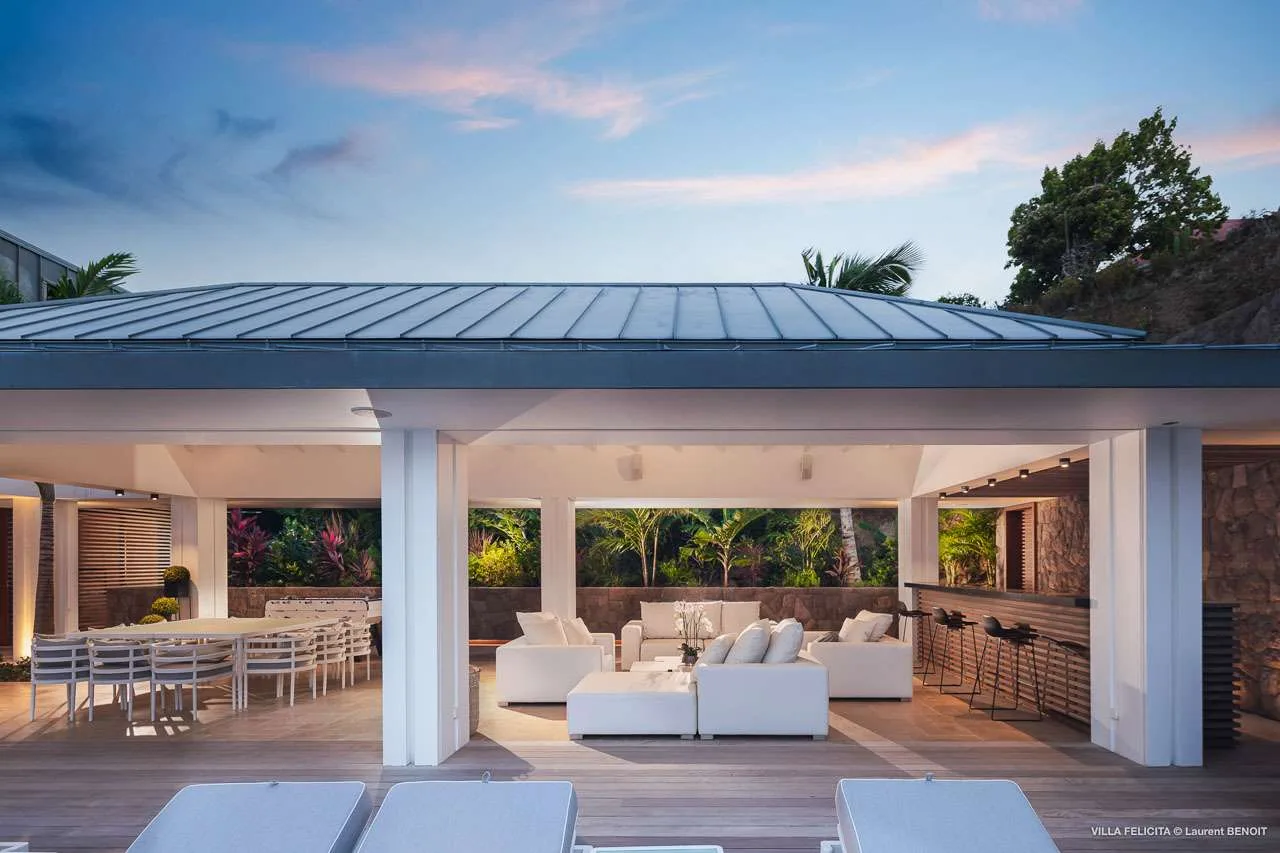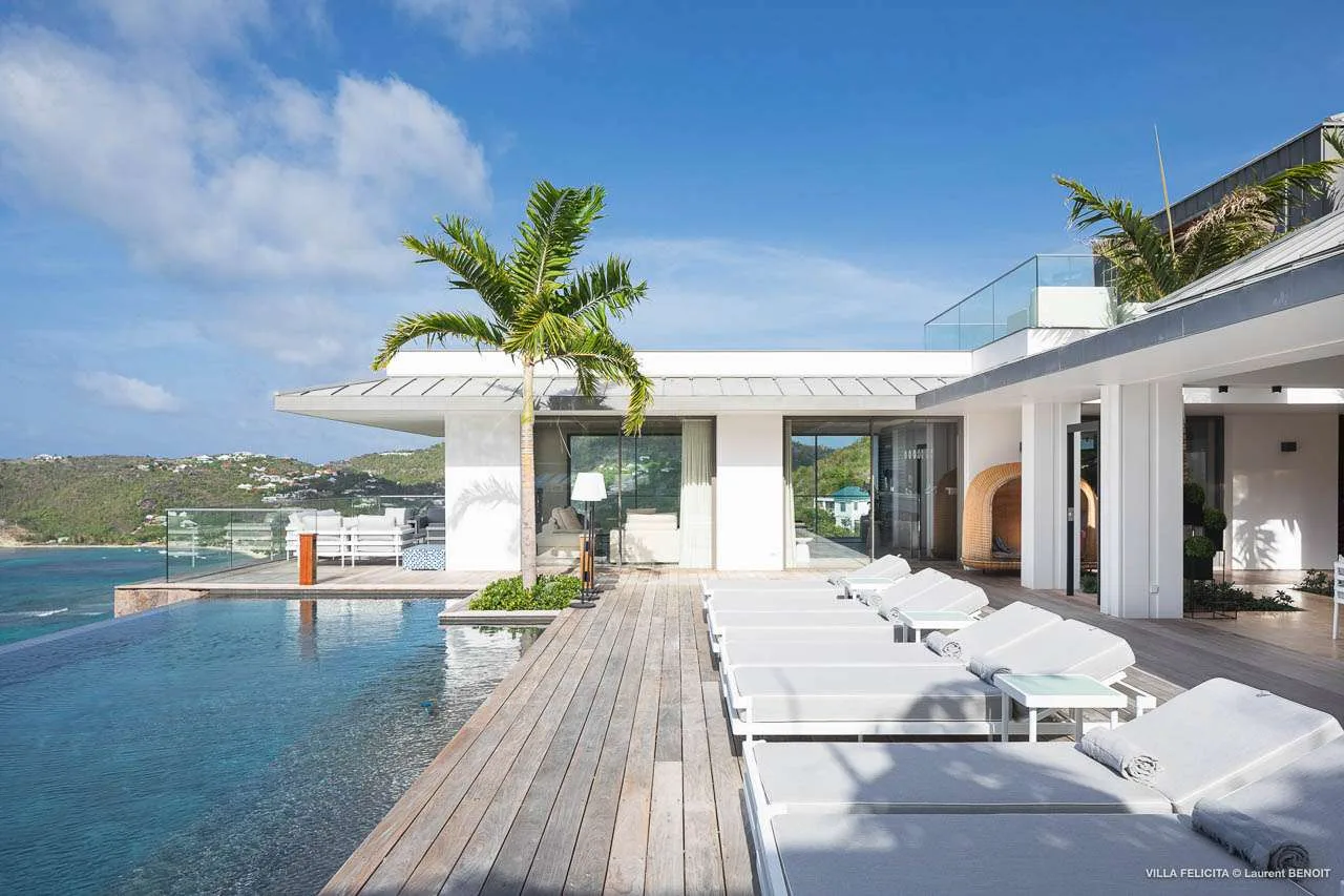 Villa Felicita, (villa code: WV FEL), is a large, newly-built 5 + 2-bedroom villa with gorgeous views of Lorient Bay and the ocean beyond.
