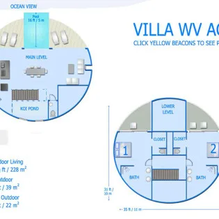 The open floor plan of the main living area blurs the line between the indoors and out, enhancing the endless sea views. Modern tropical details and natural materials throughout make these spaces ideal for relaxing and shrugging off the rushes of modern life.