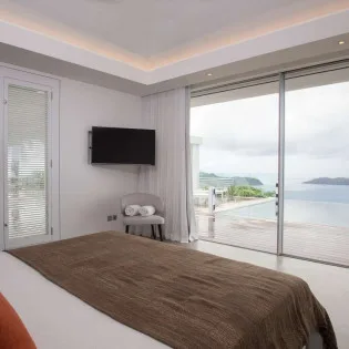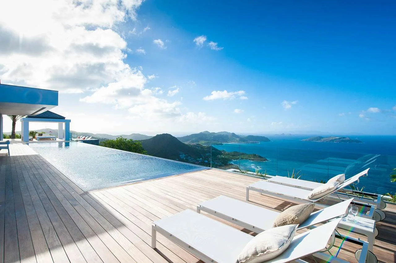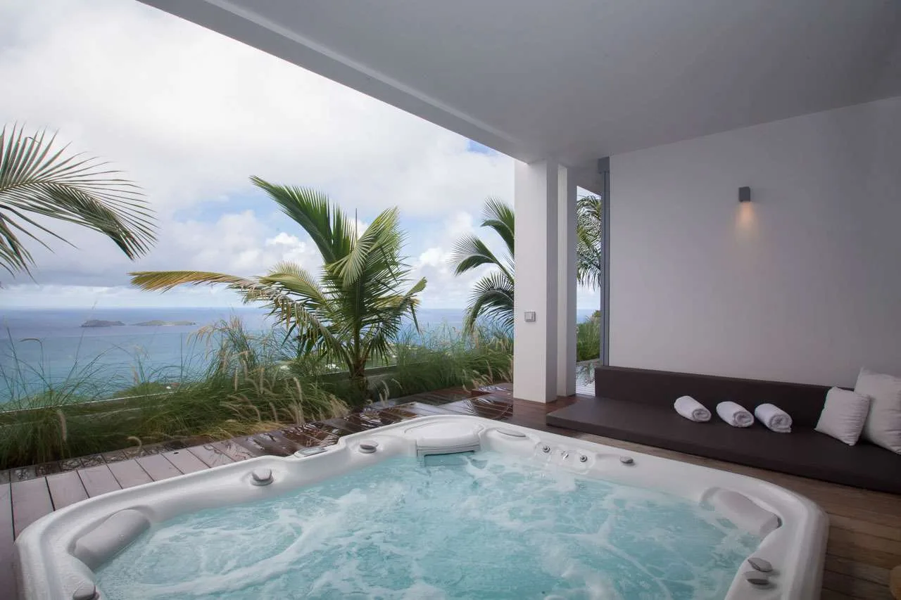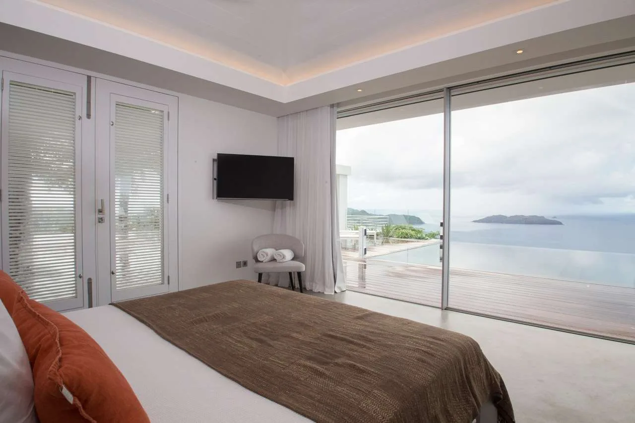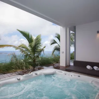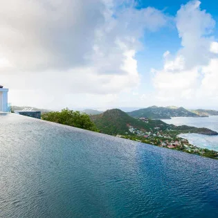 From everywhere, the unobstructed views are breathtaking. The panoramic vistas take in the islands of Île Toc Vers, Île Frégate, and Île Bonhomme, while in the distance is Saba, St. Martin, and Anguilla.