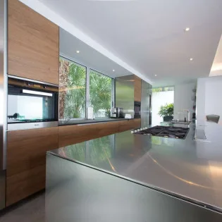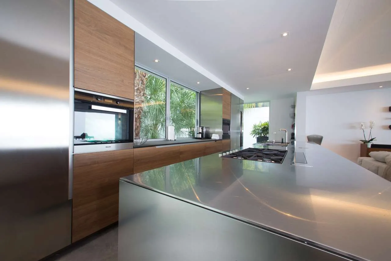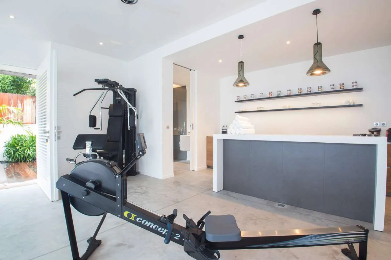 Located directly behind the living room sofa is Villa Ginger’s gourmet kitchen. Foodies will love experimenting with local ingredients and island flavors here. Our concierge can even organize grocery pre-stocking or delivery, catered meals, or arrange private chef service.