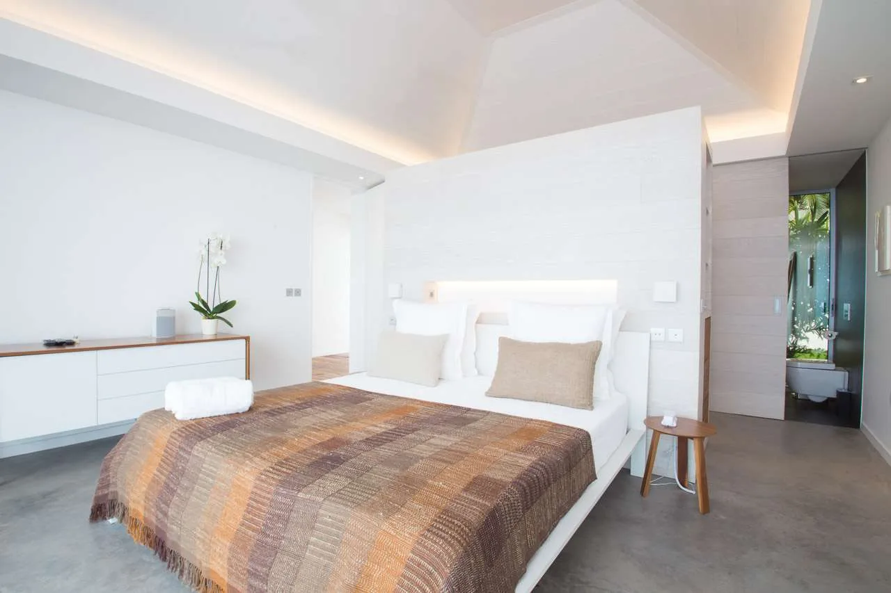 The interiors are clean, elegant, and stylish. Soothing white walls and creamy vaulted ceilings contrast with the graceful wooden furnishings, with thoughtful island-style décor on the walls. Newly-constructed, this is sophistication, luxury, and elegance all rolled into one vacation home.