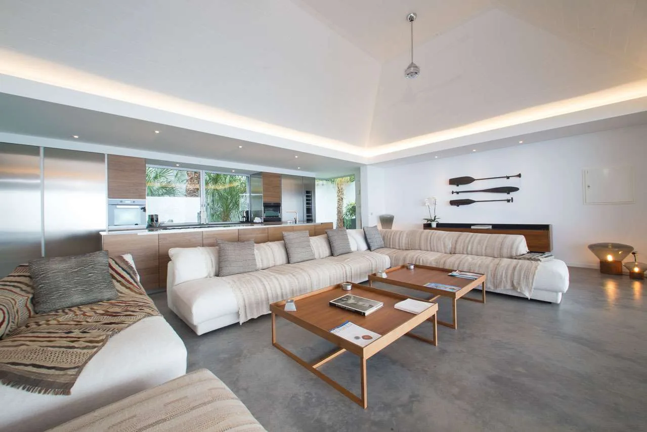 At the heart of Villa Ginger is the airy and gorgeous great room. Here you’ll find the living room and kitchen, the entire space awash with tropical breezes and stunning views.